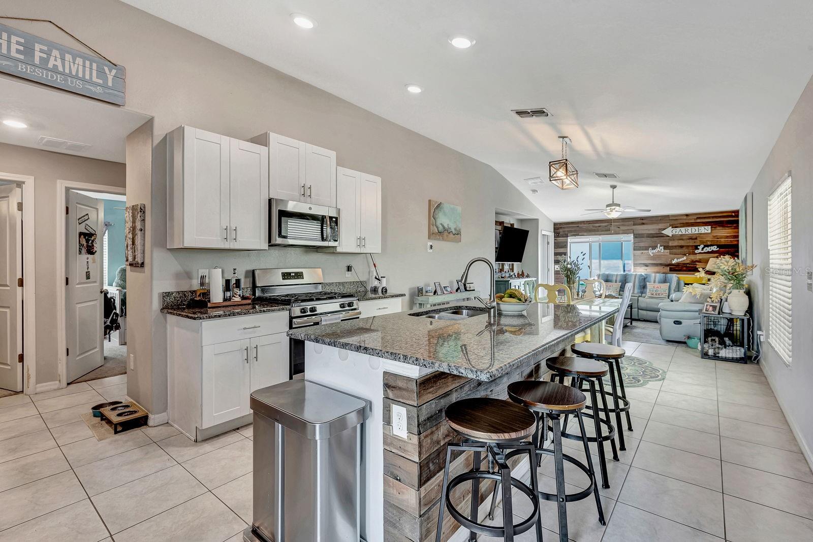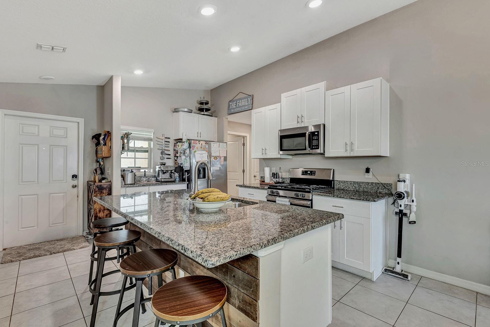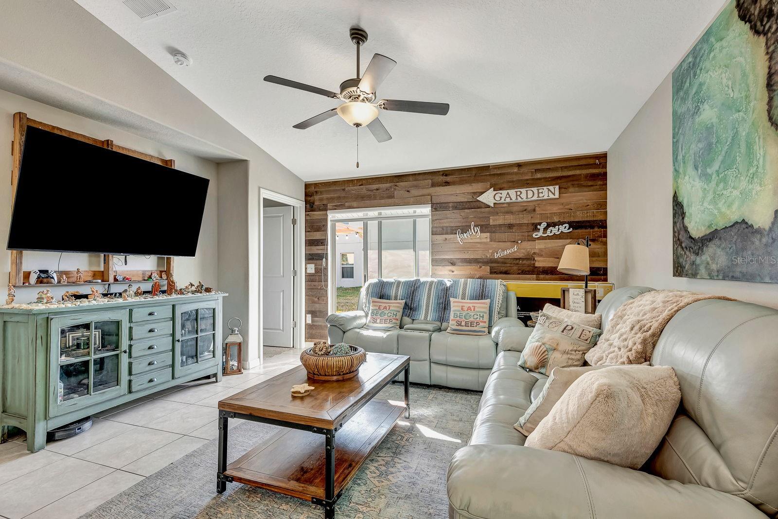 Welcome to this well-maintained, move-in-ready home built in 2020! Located in a fully developed community, this beautiful property offers a bright and open layout with high ceilings and a desirable split floor plan. The kitchen features solid countertops, stainless steel appliances, a convenient coffee bar, and opens seamlessly to the living room—perfect for entertaining. Tile flooring runs through the main hallway and living areas, adding both style and easy maintenance. This home includes 3 bedrooms and 2 bathrooms, with a private owner’s suite separated from the guest rooms for added comfort. Step outside to a peaceful backyard that backs up to a privacy area—ideal for relaxing, enjoying a fire pit, or unwinding in quiet surroundings. The home is also equipped with solar panels, helping reduce energy costs, especially during the summer months. Community amenities include a pool with cabana areas, perfect for enjoying warm Florida days. This amazing home offers comfort, efficiency, and a great lifestyle—schedule your showing today!