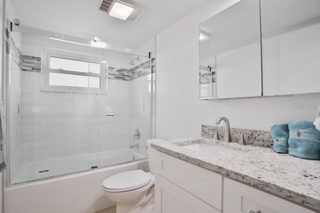 Discover your new dream home in this completely recently renovated 3 bedroom 2 bathroom home with no HOA, no CDD, and no deed restrictions is in the heart of desirable Apollo Beach. The home is in a great, safe residential neighborhood on a dead-end street with no rear neighbors and gorgeous water views. Move right into a home with a brand new roof (2023), water heater (2023), electrical panel (2023), kitchen (2023), and bathrooms (2023). The heating and cooling system was replaced in October 2020. The updated energy efficient double pane windows keep energy costs low and offers a quiet home environment. The reclaimed irrigation system keeps water utility costs extremely low. The heart of the home boasts a huge island with custom cabinetry and granite countertops. There is ample counter space for culinary creations and baking extravaganzas. There are 2 large pantries and extra storage in the island cabinets on 2 sides of the island. It is equipped with a GE stainless steel appliance package. The new, beautiful kitchen granite countertops coordinate with the new bathroom countertops and the new wet bar counter. The split floor plan offers privacy while the open floor plan is ideal for entertaining and hosting family gatherings. The living room overlooks the screened lanai. The new electric fireplace provides an intimate ambience creating a relaxing and cozy setting. The master bedroom is a sanctuary within, featuring 2 remarkable large walk-in closets, a slider to the patio, and ensuite. The innovative new barn door provides access to the brand-new master ensuite bathroom which has a separate water closet area, a linen closet, and dual vanities. The walk-in shower features coordinating porcelain tile, a glass tile band, along with a modern clear glass shower door. The brand new spa-like guest bathroom features a new soaking tub with coordinating porcelain tile, a glass tile band and modern glass tub door. This bright home features new luxury vinyl plank flooring throughout the entire house with new modern 5 1/4” baseboard. The laundry room houses the matching GE washer and dryer which provides a great separate indoor space to do laundry with a sink, an additional 3rd pantry, massive cabinet storage, access to the garage, and room for an extra refrigerator or freezer. Enjoy outdoor living in this homes large outdoor space. The back yard is a gardener’s and nature lover’s paradise. The huge 30 x 10 covered, screened back patio can be enjoyed all year with beautiful views and sounds of nature creating a serene environment. Relax and unwind around the outdoor stone fire pit. The huge, curved driveway surrounded by decorative stone complete with mature landscaping, landscape curbing and river rock makes for an inviting scene to come home to. The property has plenty of room for an RV & boat. The oversized 2 car garage has 2 overhead garage doors with openers and a service door for access to the outside with plenty of room for storage and a golf cart. The garage ceilings are extra high (9’5’) which can accommodate overhead storage systems. There is a handy pull- down stair system to the attic space. The home is complete with stylish new window treatments, ceiling fans, along with aluminum gutters and downspouts. This spectacular move in ready home is close to beaches, marinas, fine dining, shopping, hotels, and hospitals.