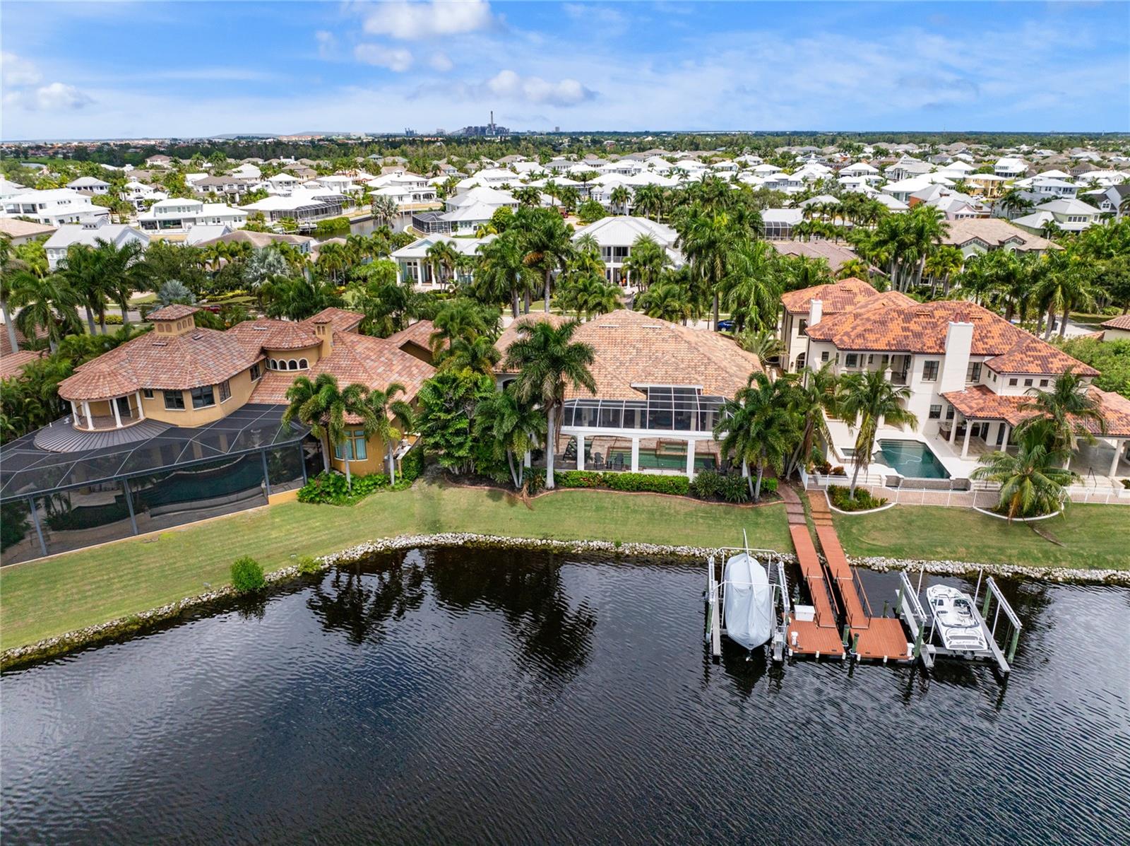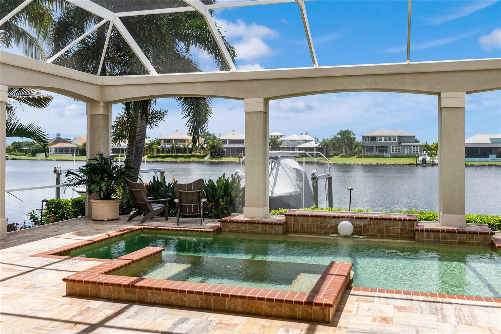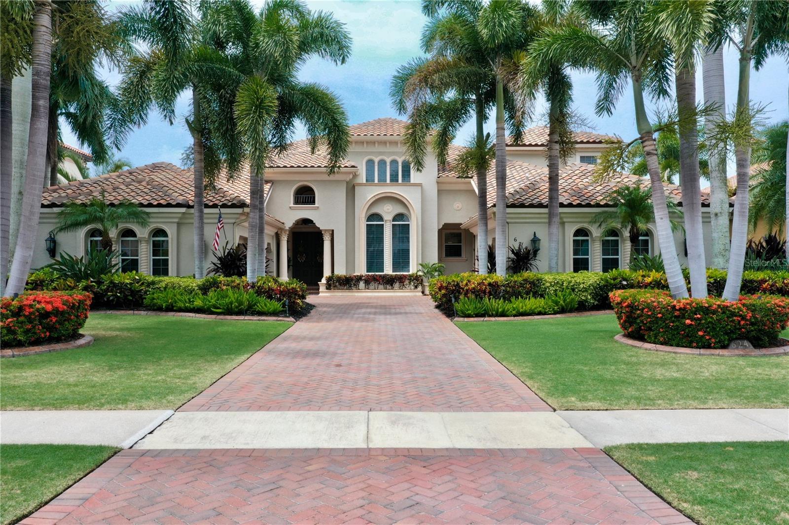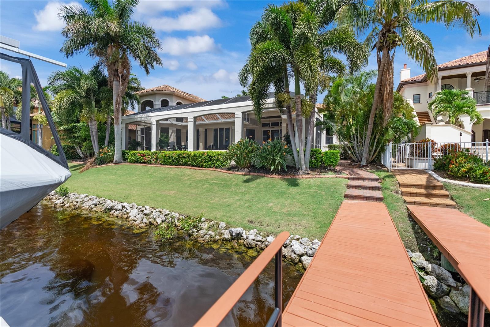 Experience resort living in this luxurious John Cannon model home, situated in the prestigious Bay Estates section of Mirabay. This coastal casual property boasts over 100 feet of waterfront, offering breathtaking views of a serene lagoon and providing a picturesque and tranquil setting. The family-friendly and active community makes it an ideal place to call home. Only minutes by boat to the Gulf of Mexico, this property features a 20,000lb lift. This meticulously kept home features an office, three-car garage, tile roof, new A/C units, and a beautiful pool and spa, perfect for relaxing and entertaining. Upstairs hosts the 4th bedroom, full bath and media/game room that can also serve as a fifth bedroom with a walkout veranda overlooking the water. The chef’s kitchen includes Wolf and Subzero appliances, a warming drawer, a new 36” oven, and a dual zone wine refrigerator. The owner’s suite is located on the main floor with California closets and access to the pool and lanai. Embrace the elegance while cooking in the custom-made outdoor kitchen and unwinding by the stone fireplace. Enjoy peace of mind with seamless gutters, a panoramic lanai screen, a whole home generator, complete water osmosis/filtration/softener system, and Hunter Douglas silhouette shades throughout. Upgrades also include a wet/wine bar renovation, brand new GE washer/dryer, enhanced LED landscape lighting, and recently replaced pool control equipment.