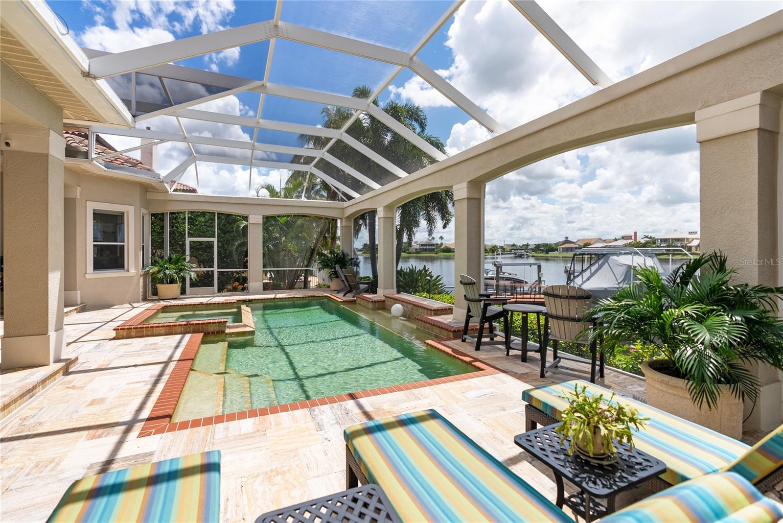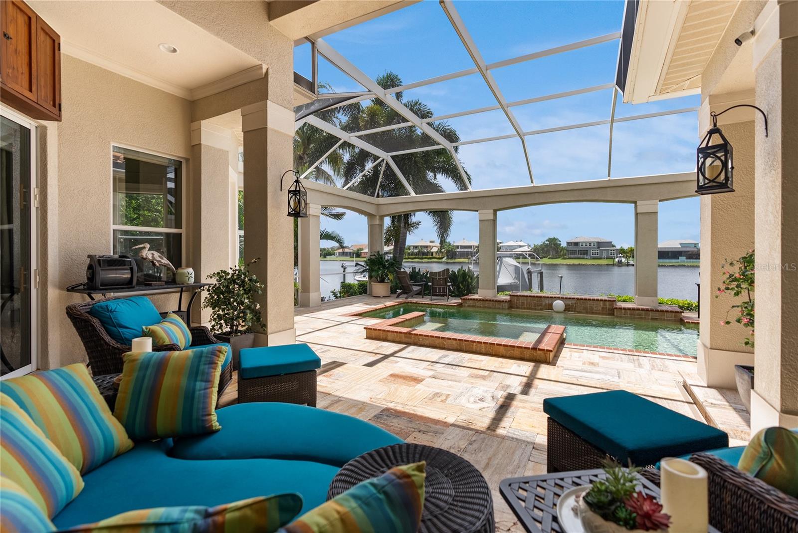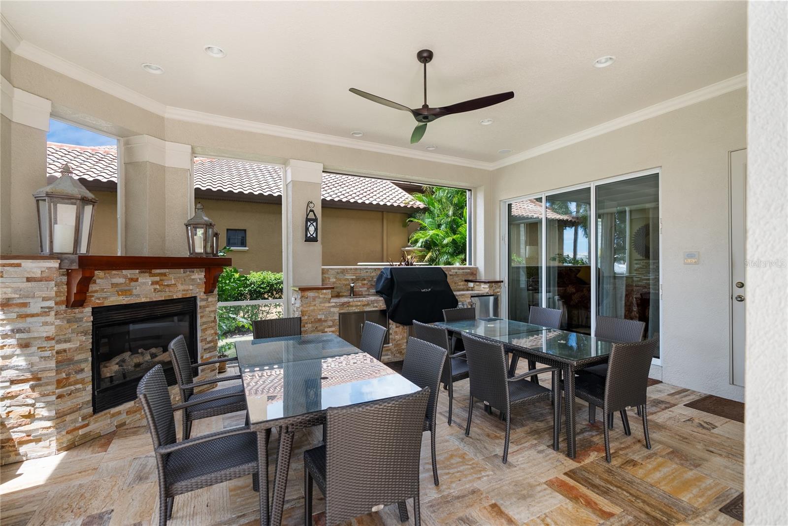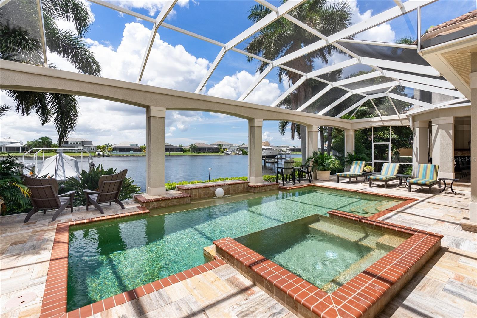 Experience resort living in this luxurious John Cannon model home, situated in the prestigious Bay Estates section of Mirabay. This coastal casual property boasts over 100 feet of waterfront, offering breathtaking views of a serene lagoon and providing a picturesque and tranquil setting. The family-friendly and active community makes it an ideal place to call home. Only minutes by boat to the Gulf of Mexico, this property features a 20,000lb lift. This meticulously kept home features an office, three-car garage, tile roof, new A/C units, and a beautiful pool and spa, perfect for relaxing and entertaining. Upstairs hosts the 4th bedroom, full bath and media/game room that can also serve as a fifth bedroom with a walkout veranda overlooking the water. The chef’s kitchen includes Wolf and Subzero appliances, a warming drawer, a new 36” oven, and a dual zone wine refrigerator. The owner’s suite is located on the main floor with California closets and access to the pool and lanai. Embrace the elegance while cooking in the custom-made outdoor kitchen and unwinding by the stone fireplace. Enjoy peace of mind with seamless gutters, a panoramic lanai screen, a whole home generator, complete water osmosis/filtration/softener system, and Hunter Douglas silhouette shades throughout. Upgrades also include a wet/wine bar renovation, brand new GE washer/dryer, enhanced LED landscape lighting, and recently replaced pool control equipment.