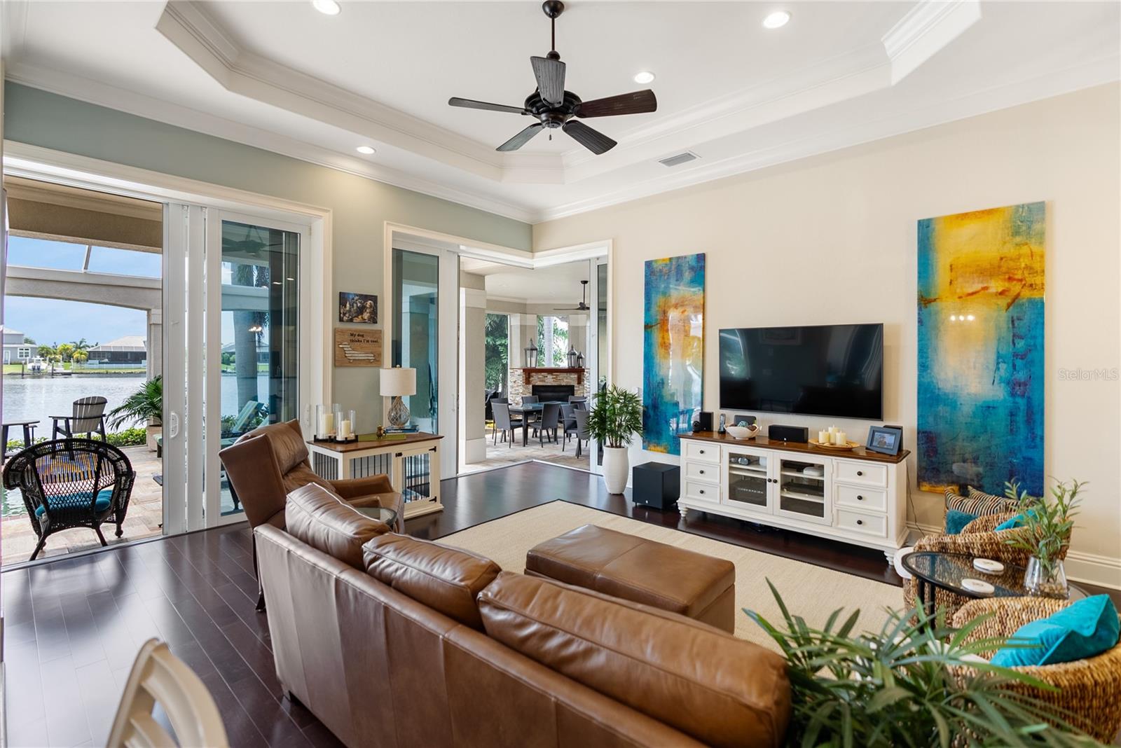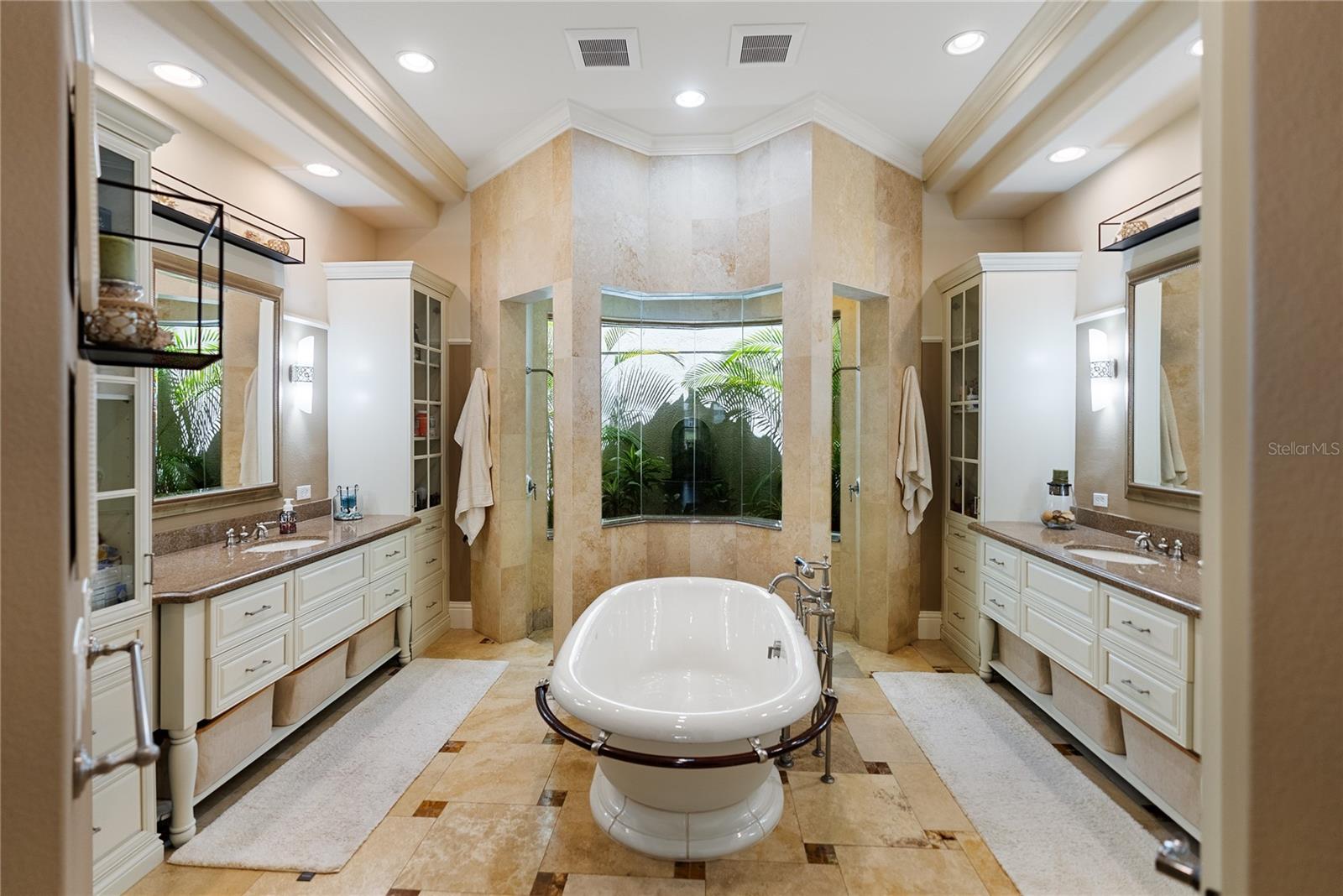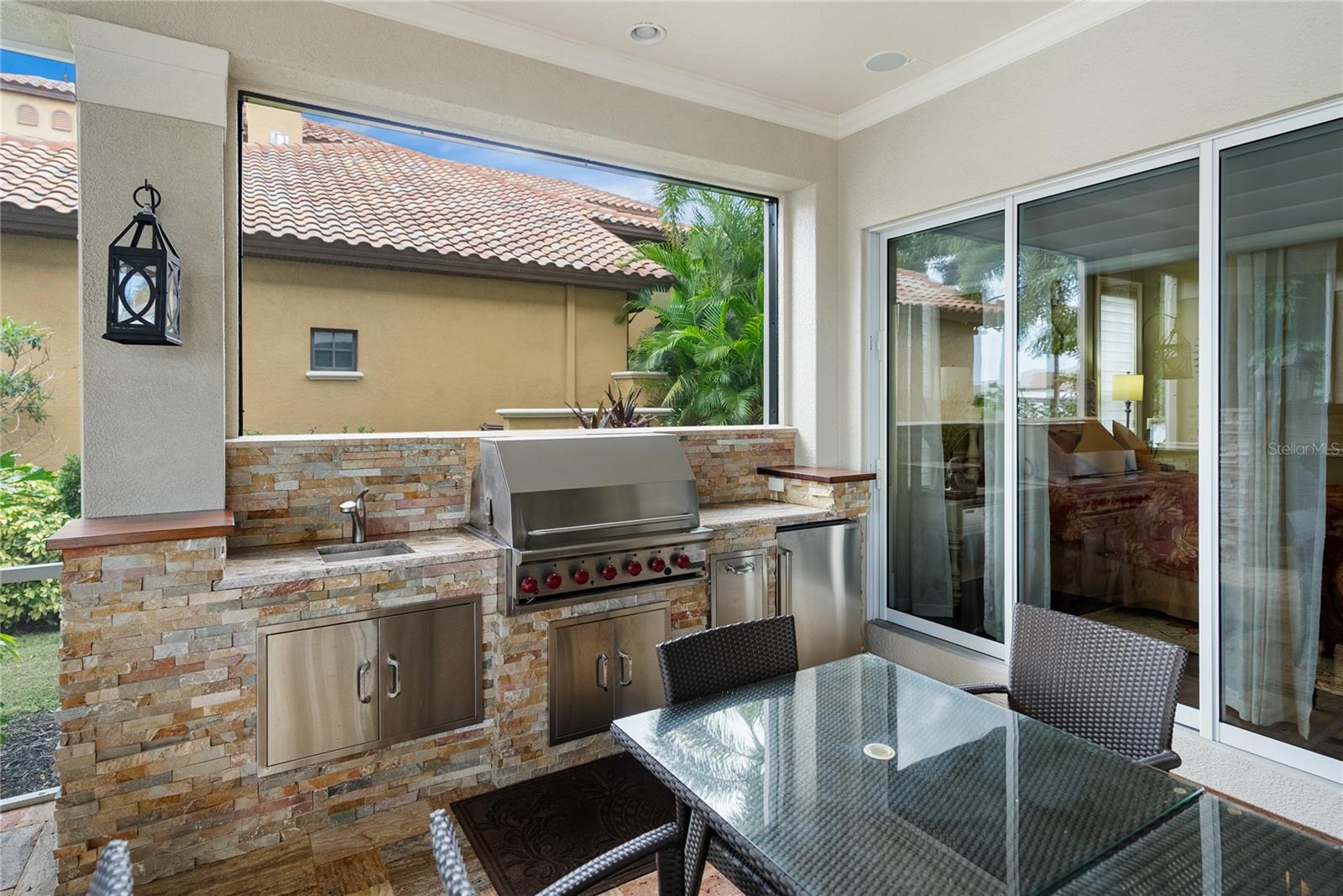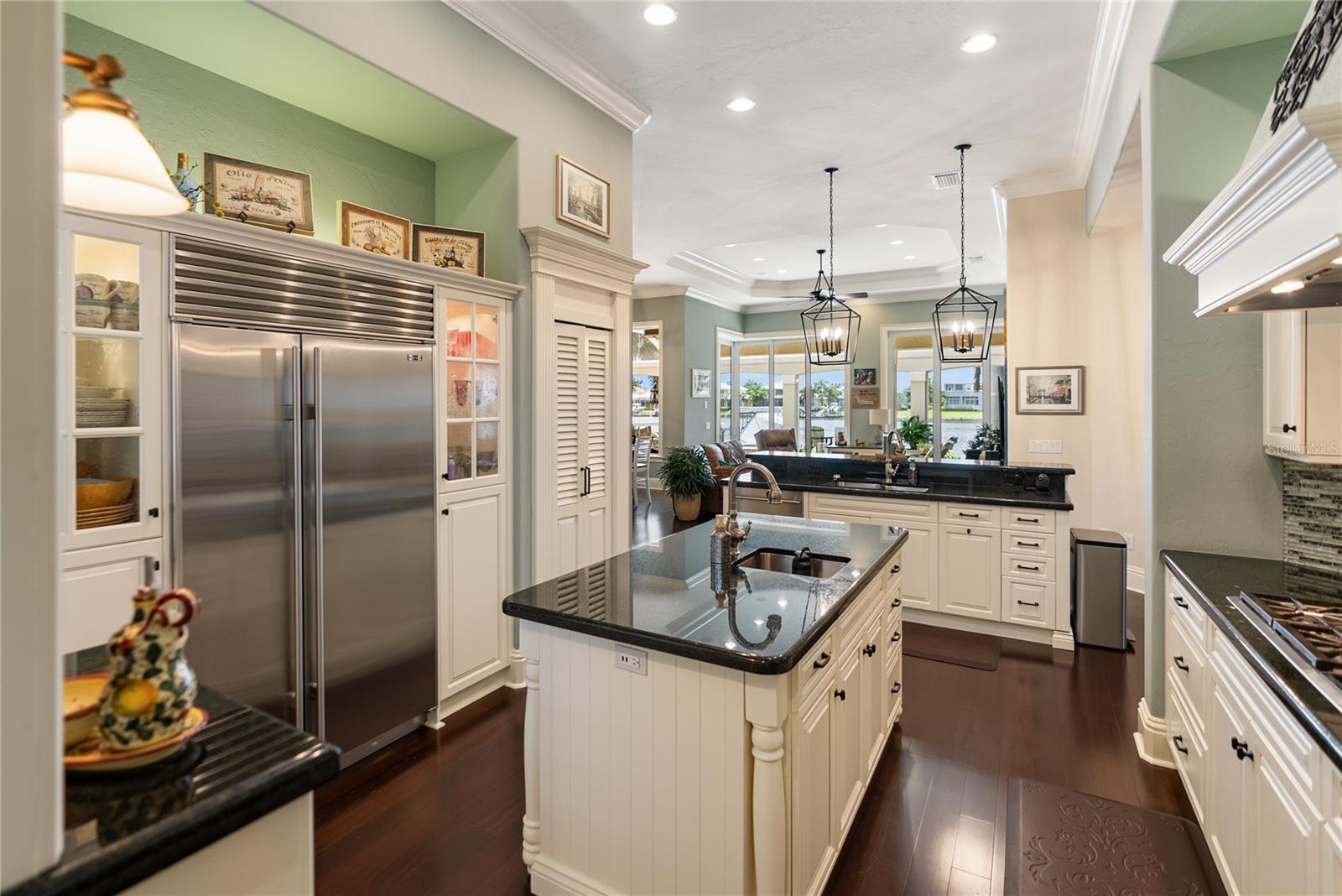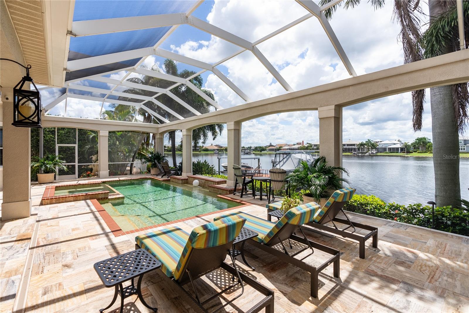 Experience resort living in this luxurious John Cannon model home, situated in the prestigious Bay Estates section of Mirabay. This coastal casual property boasts over 100 feet of waterfront, offering breathtaking views of a serene lagoon and providing a picturesque and tranquil setting. The family-friendly and active community makes it an ideal place to call home. Only minutes by boat to the Gulf of Mexico, this property features a 20,000lb lift. This meticulously kept home features an office, three-car garage, tile roof, new A/C units, and a beautiful pool and spa, perfect for relaxing and entertaining. Upstairs hosts the 4th bedroom, full bath and media/game room that can also serve as a fifth bedroom with a walkout veranda overlooking the water. The chef’s kitchen includes Wolf and Subzero appliances, a warming drawer, a new 36” oven, and a dual zone wine refrigerator. The owner’s suite is located on the main floor with California closets and access to the pool and lanai. Embrace the elegance while cooking in the custom-made outdoor kitchen and unwinding by the stone fireplace. Enjoy peace of mind with seamless gutters, a panoramic lanai screen, a whole home generator, complete water osmosis/filtration/softener system, and Hunter Douglas silhouette shades throughout. Upgrades also include a wet/wine bar renovation, brand new GE washer/dryer, enhanced LED landscape lighting, and recently replaced pool control equipment.