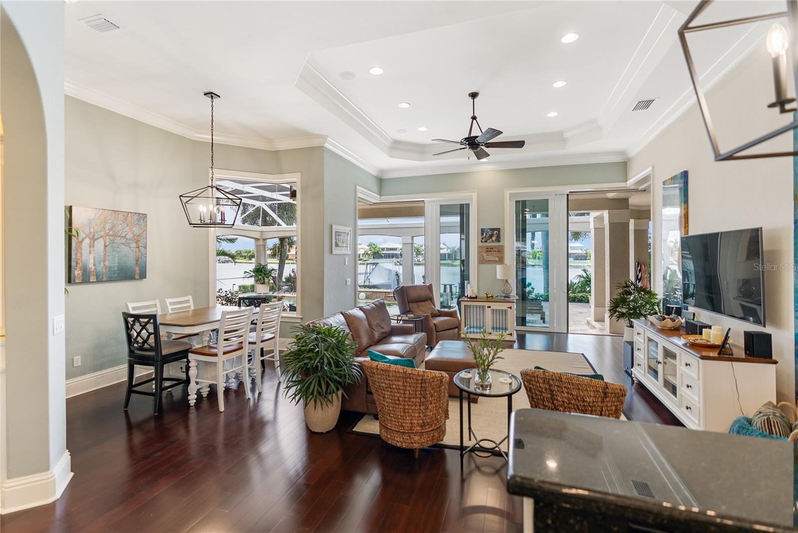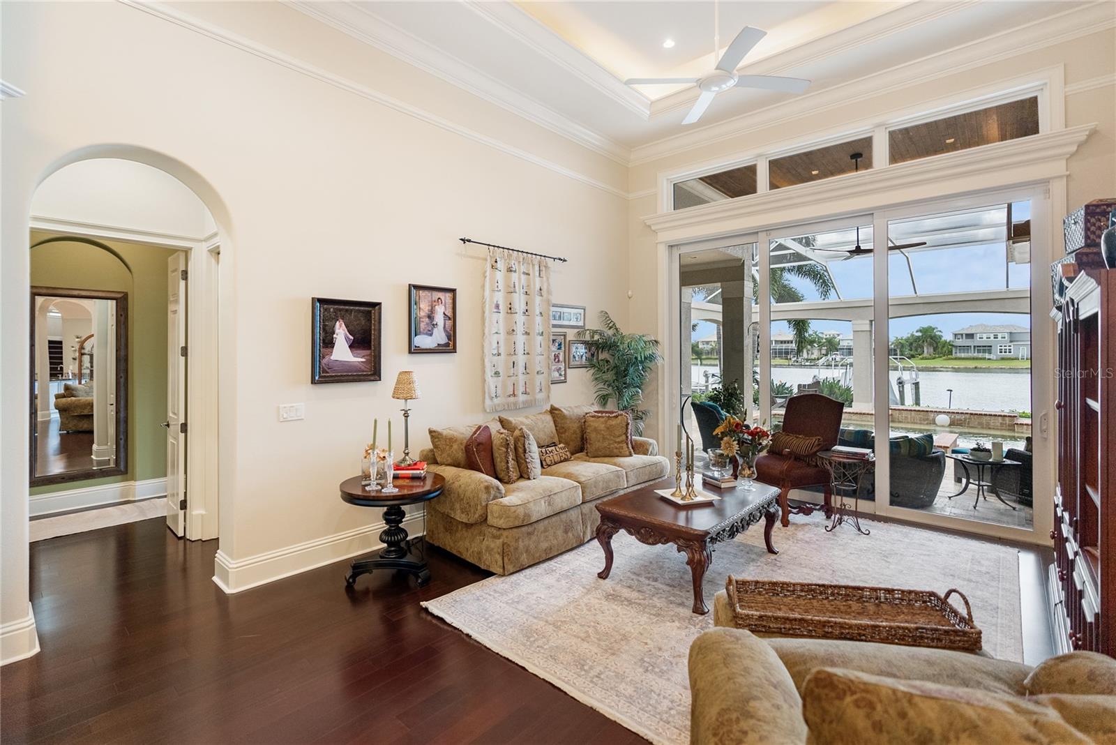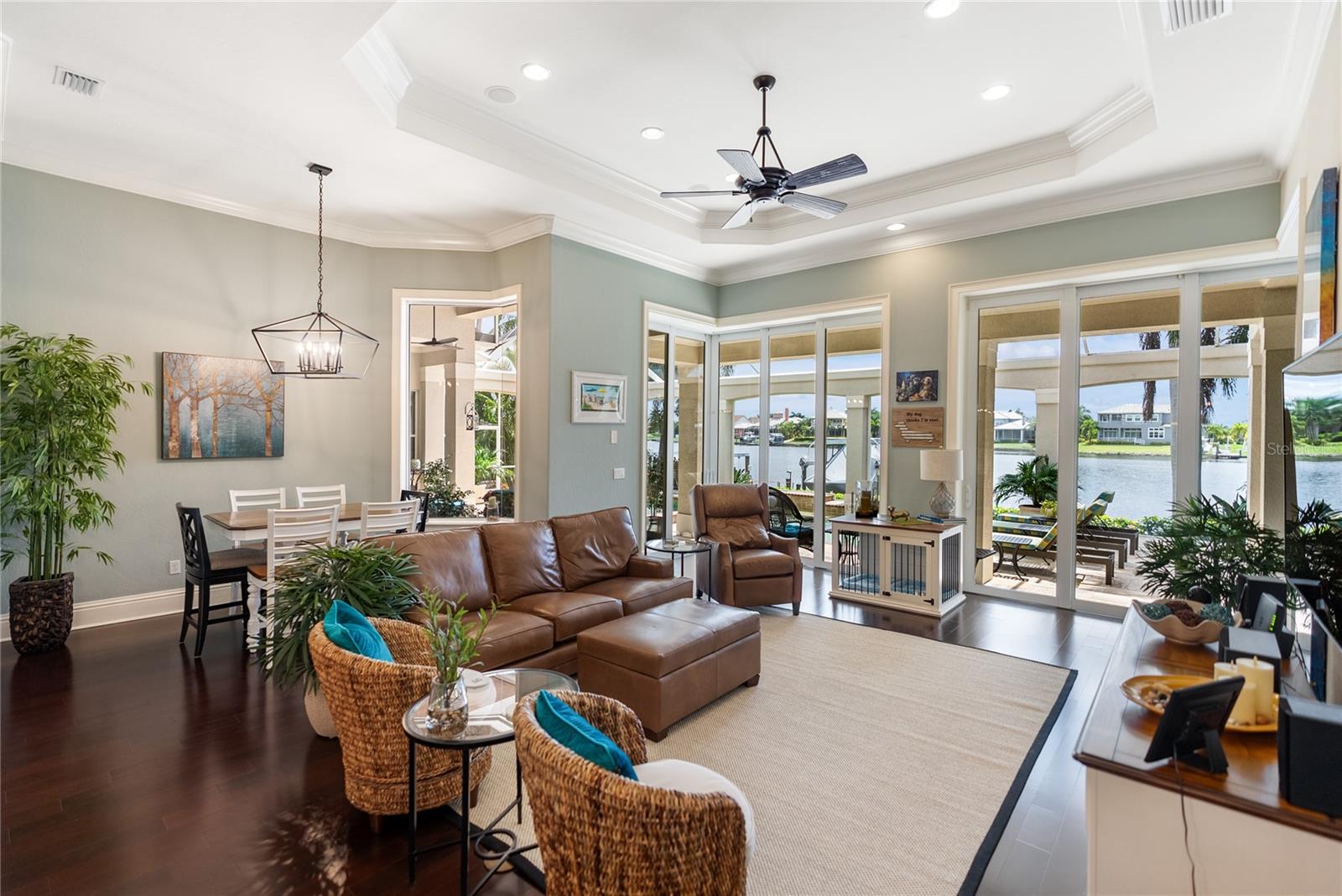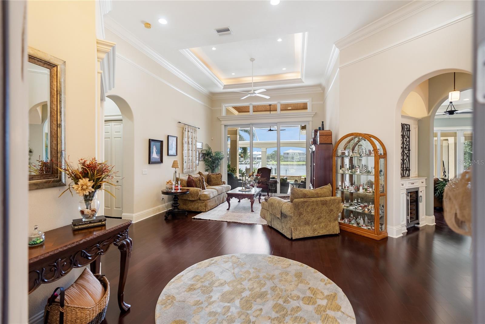Experience resort living in this luxurious John Cannon model home, situated in the prestigious Bay Estates section of Mirabay. This coastal casual property boasts over 100 feet of waterfront, offering breathtaking views of a serene lagoon and providing a picturesque and tranquil setting. The family-friendly and active community makes it an ideal place to call home. Only minutes by boat to the Gulf of Mexico, this property features a 20,000lb lift. This meticulously kept home features an office, three-car garage, tile roof, new A/C units, and a beautiful pool and spa, perfect for relaxing and entertaining. Upstairs hosts the 4th bedroom, full bath and media/game room that can also serve as a fifth bedroom with a walkout veranda overlooking the water. The chef’s kitchen includes Wolf and Subzero appliances, a warming drawer, a new 36” oven, and a dual zone wine refrigerator. The owner’s suite is located on the main floor with California closets and access to the pool and lanai. Embrace the elegance while cooking in the custom-made outdoor kitchen and unwinding by the stone fireplace. Enjoy peace of mind with seamless gutters, a panoramic lanai screen, a whole home generator, complete water osmosis/filtration/softener system, and Hunter Douglas silhouette shades throughout. Upgrades also include a wet/wine bar renovation, brand new GE washer/dryer, enhanced LED landscape lighting, and recently replaced pool control equipment.