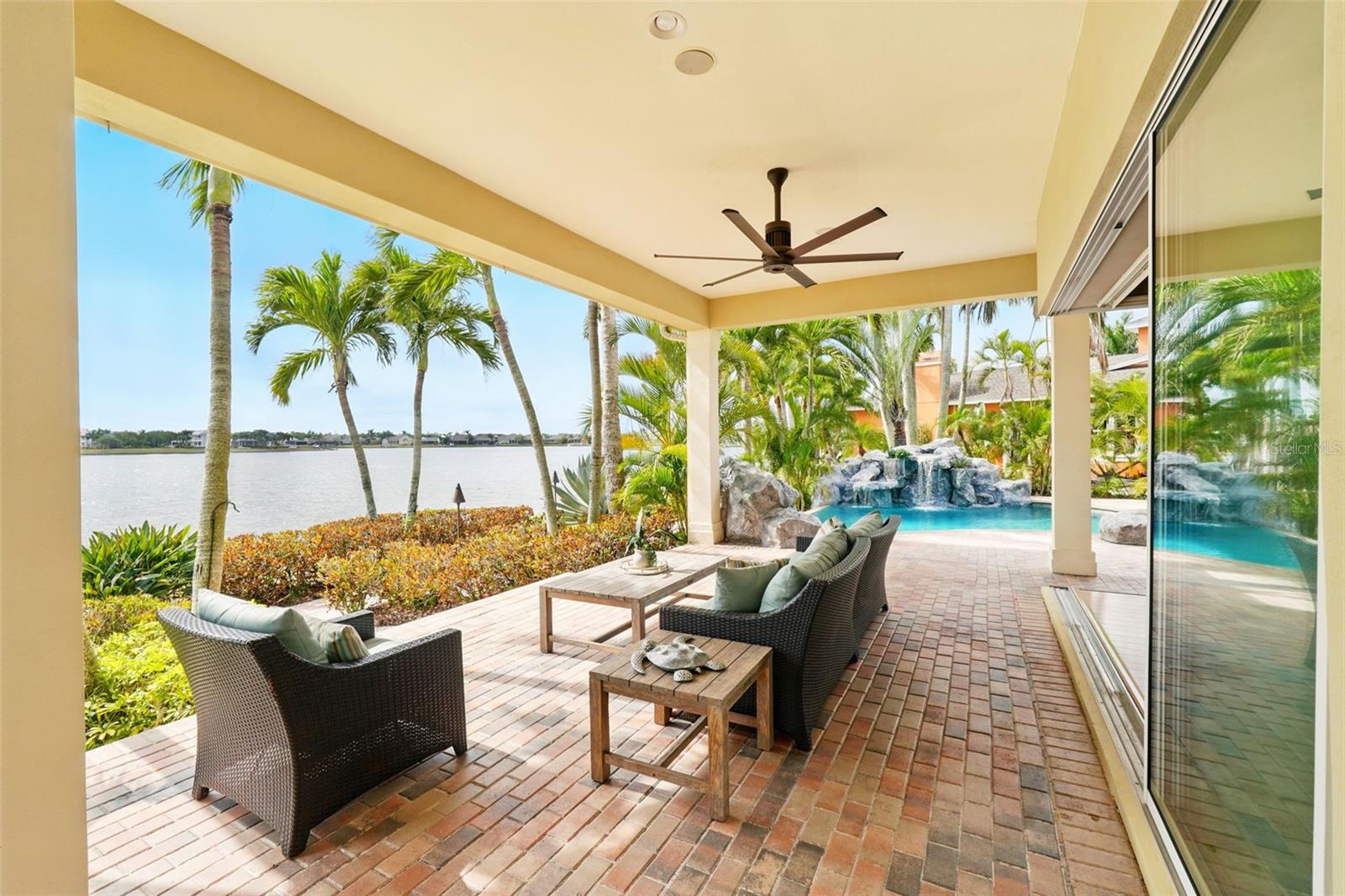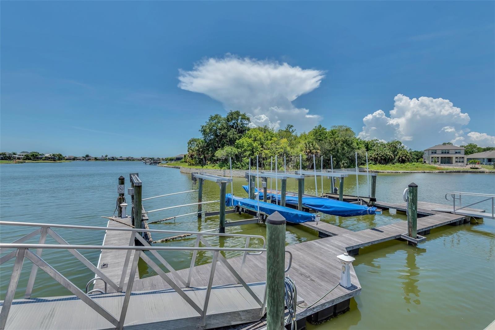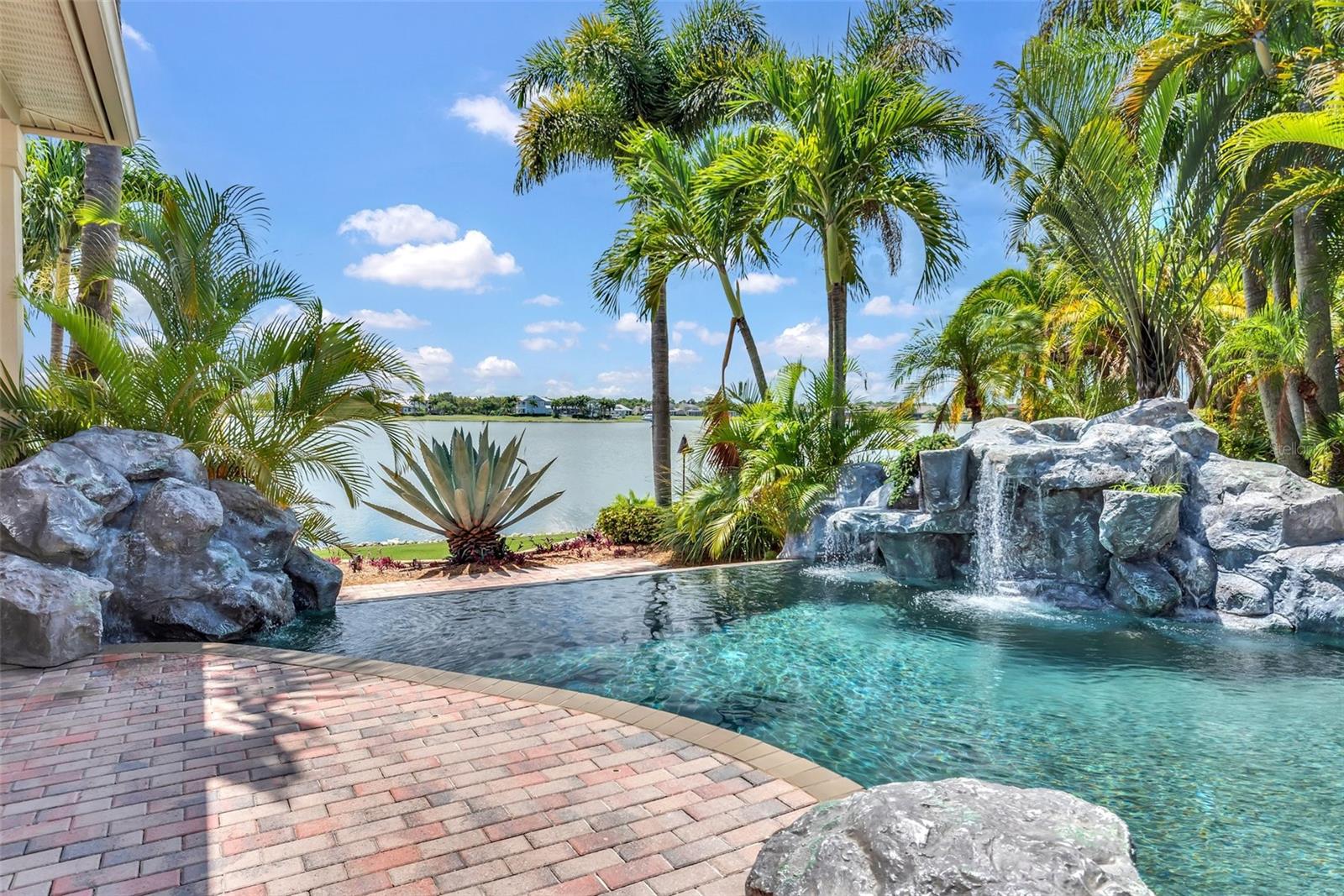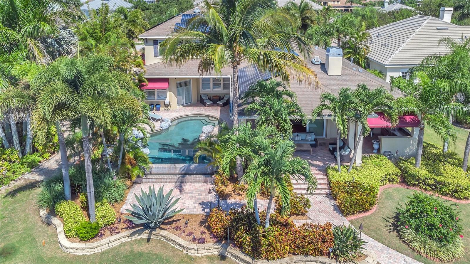 Under contract-accepting backup offers. Welcome to coastal living at its finest in the magnificent estate located in the exclusive MiraBay community! This stunning waterfront retreat boasts a private dock with a lift (20k pound lift and 15”wide will accommodate a 30’ plus boat easily), ideal for boating enthusiasts looking for direct access to the beautiful waters of Tampa Bay. Featuring: 3 Spacious Bedrooms and 3.5 Elegant Bathrooms, a Dedicated Office and a Media Room perfect for work and play, a Tandem 3-Car Garage ideal for extra storage or your weekend ride. It is equipped with a 26 KWH LG Solar Power System for an energy-efficient and eco-conscious lifestyle that will produce almost 100% of the power required to operate this home, the system is owned by the seller and payed off and will convey, it includes a 25-year transferable warranty of which it has 19 years left. The power bill is only $20/month. A New Roof was just installed updated for peace of mind. Custom Renovations have been done throughout the house including updated Kitchen cabinets and countertops, Lighting fixtures, new paint, updated bathroom faucets, cabinets and countertops, and more.. The stunning backyard features a Lush Tropical Landscaping, curated to impress with a Custom salt water Pool to create your own private oasis with wide open water views and an expansive outdoor lanai with a full-service summer kitchen. Whether you're entertaining on the water or enjoying a quiet night in, this home offers the perfect blend of luxury, comfort, and convenience. Additional features: The is located within the community lagoon which is connected to the Gulf of Mexico via a 1/2-mile canal, Lagoon water levels are not impacted by tide ensuring full access to open water 100% of the time and protected from mayor weather events. A Mosquito Mist System for the whole house virtually eliminates mosquitos around the perimeter of the lanais and poolThe MiraBay community is a gated, resort-style community with clubhouse, pool, fitness center, tennis courts, and more! Makes you feel you’re living in your own privet resort. Schedule your private showing today — waterfront homes like this don’t last long!