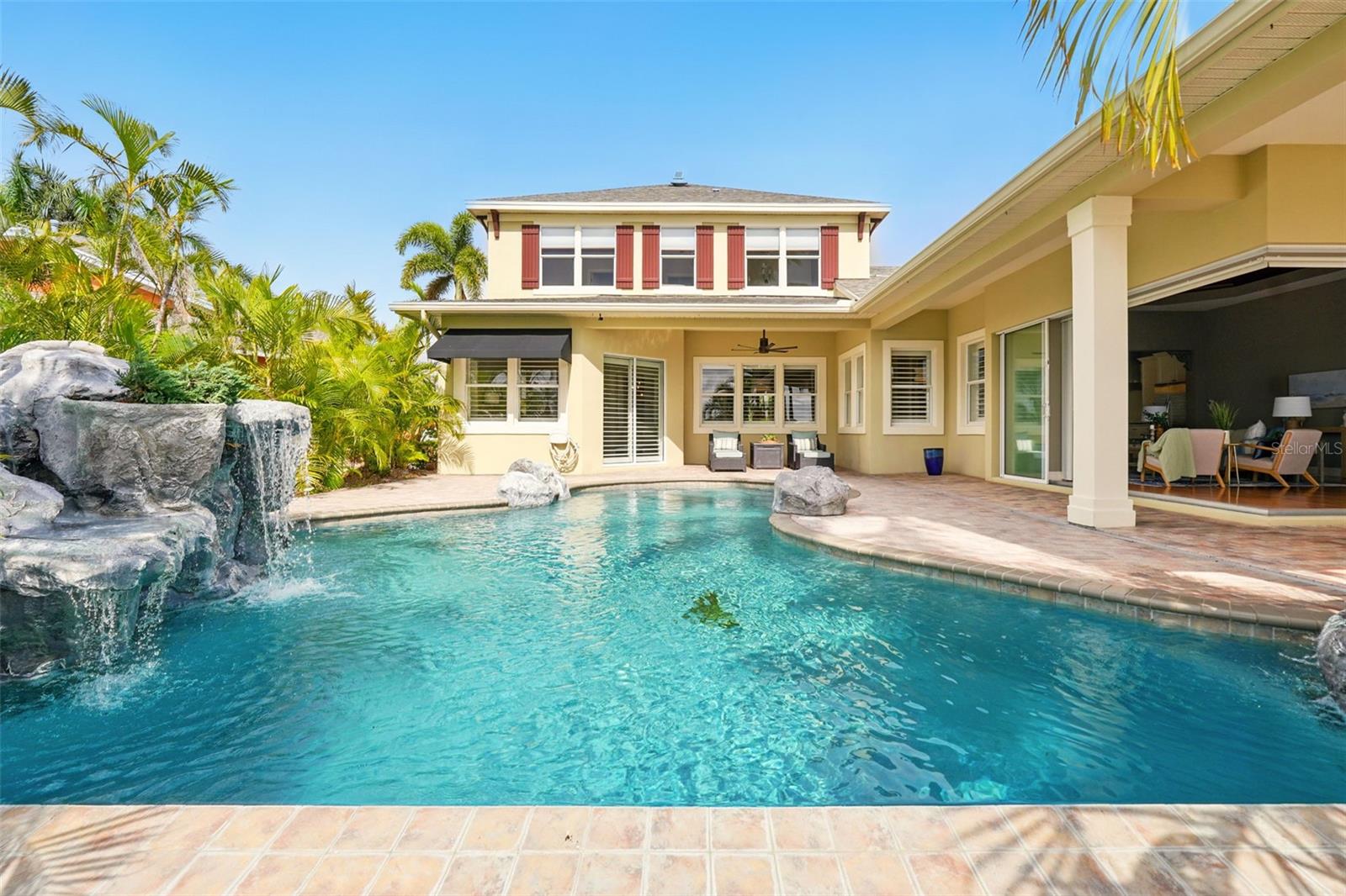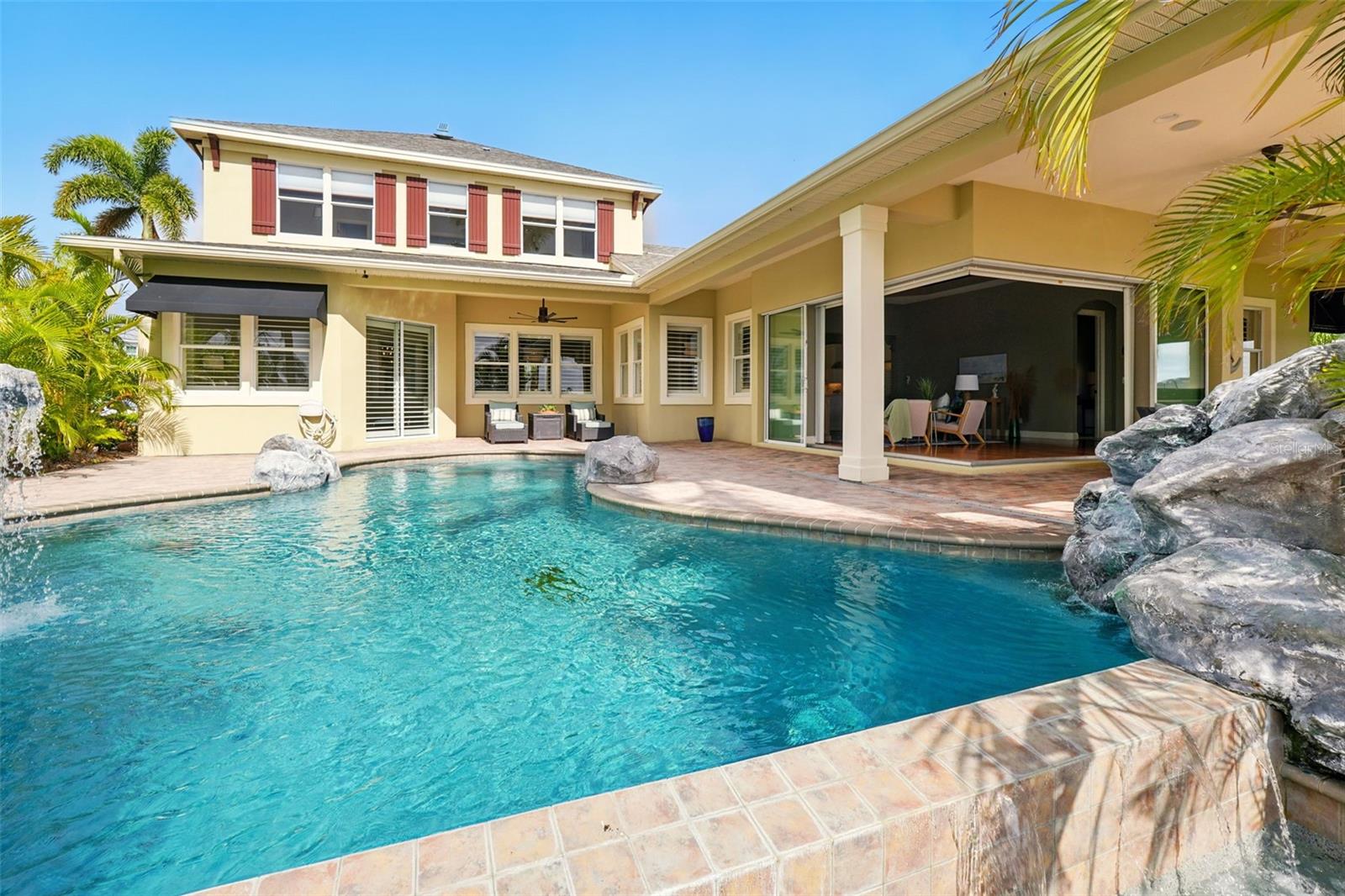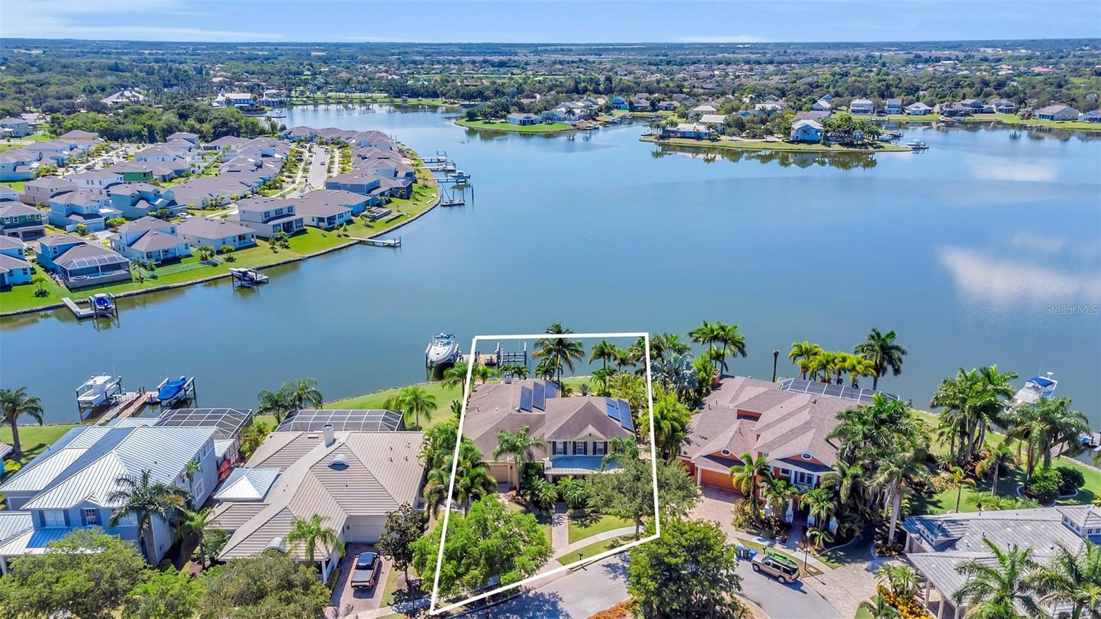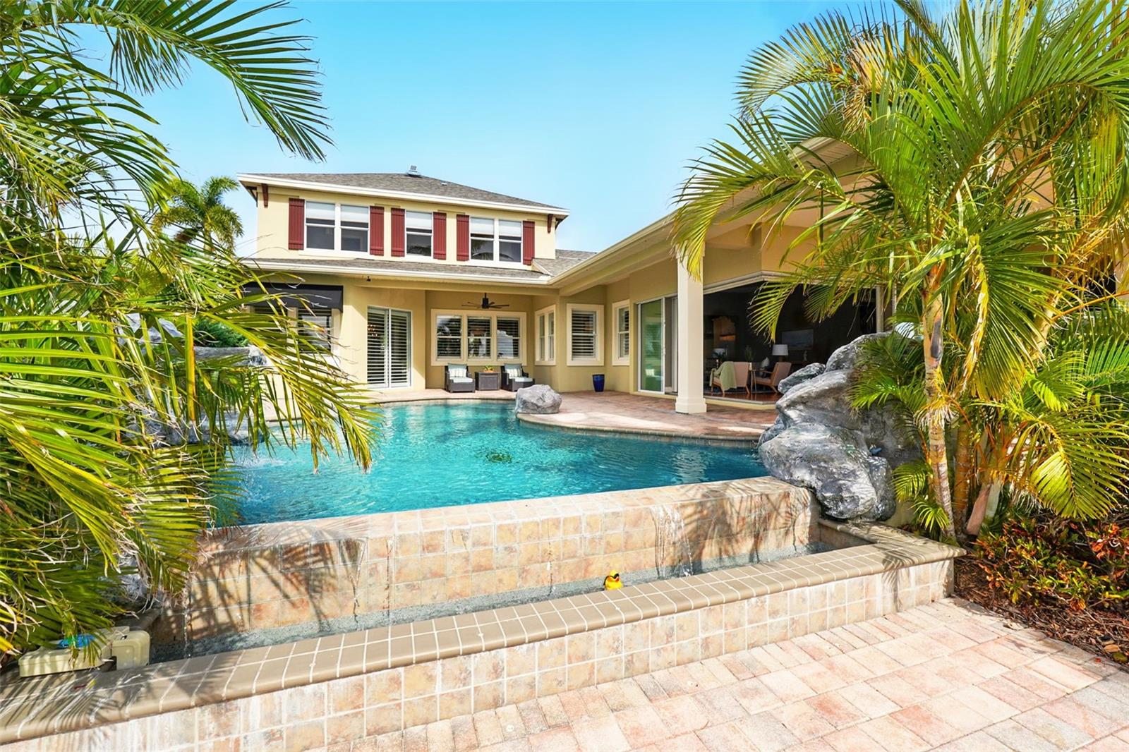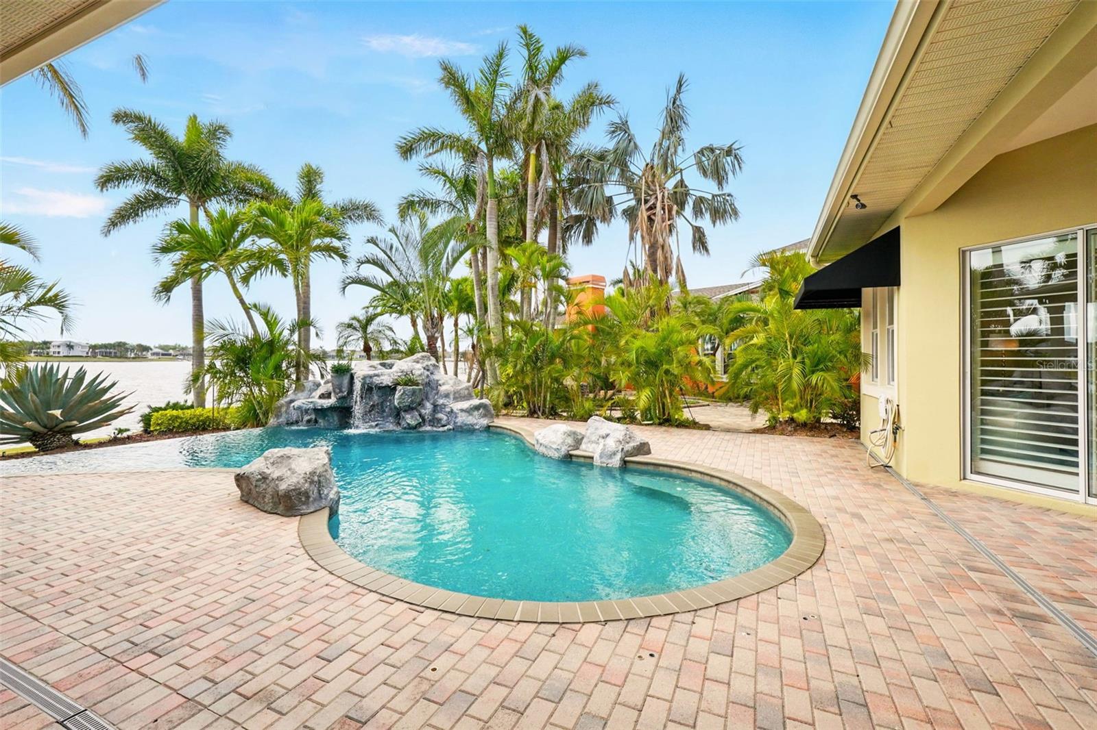 Under contract-accepting backup offers. Welcome to coastal living at its finest in the magnificent estate located in the exclusive MiraBay community! This stunning waterfront retreat boasts a private dock with a lift (20k pound lift and 15”wide will accommodate a 30’ plus boat easily), ideal for boating enthusiasts looking for direct access to the beautiful waters of Tampa Bay. Featuring: 3 Spacious Bedrooms and 3.5 Elegant Bathrooms, a Dedicated Office and a Media Room perfect for work and play, a Tandem 3-Car Garage ideal for extra storage or your weekend ride. It is equipped with a 26 KWH LG Solar Power System for an energy-efficient and eco-conscious lifestyle that will produce almost 100% of the power required to operate this home, the system is owned by the seller and payed off and will convey, it includes a 25-year transferable warranty of which it has 19 years left. The power bill is only $20/month. A New Roof was just installed updated for peace of mind. Custom Renovations have been done throughout the house including updated Kitchen cabinets and countertops, Lighting fixtures, new paint, updated bathroom faucets, cabinets and countertops, and more.. The stunning backyard features a Lush Tropical Landscaping, curated to impress with a Custom salt water Pool to create your own private oasis with wide open water views and an expansive outdoor lanai with a full-service summer kitchen. Whether you're entertaining on the water or enjoying a quiet night in, this home offers the perfect blend of luxury, comfort, and convenience. Additional features: The is located within the community lagoon which is connected to the Gulf of Mexico via a 1/2-mile canal, Lagoon water levels are not impacted by tide ensuring full access to open water 100% of the time and protected from mayor weather events. A Mosquito Mist System for the whole house virtually eliminates mosquitos around the perimeter of the lanais and poolThe MiraBay community is a gated, resort-style community with clubhouse, pool, fitness center, tennis courts, and more! Makes you feel you’re living in your own privet resort. Schedule your private showing today — waterfront homes like this don’t last long!