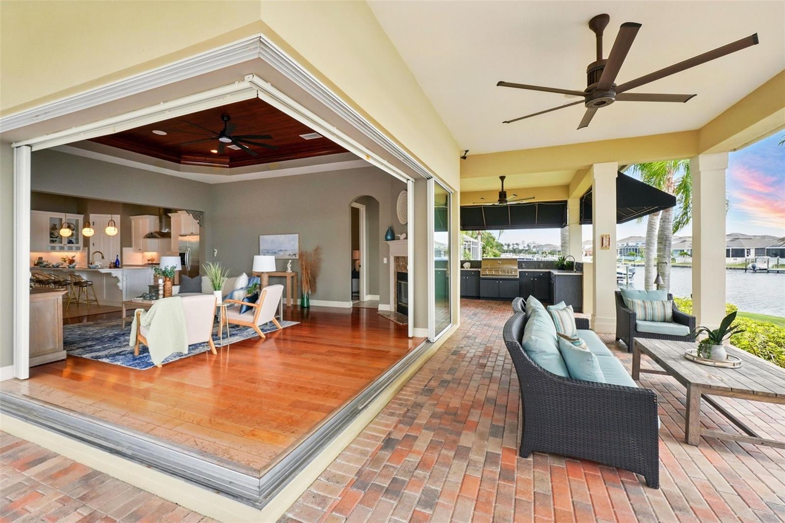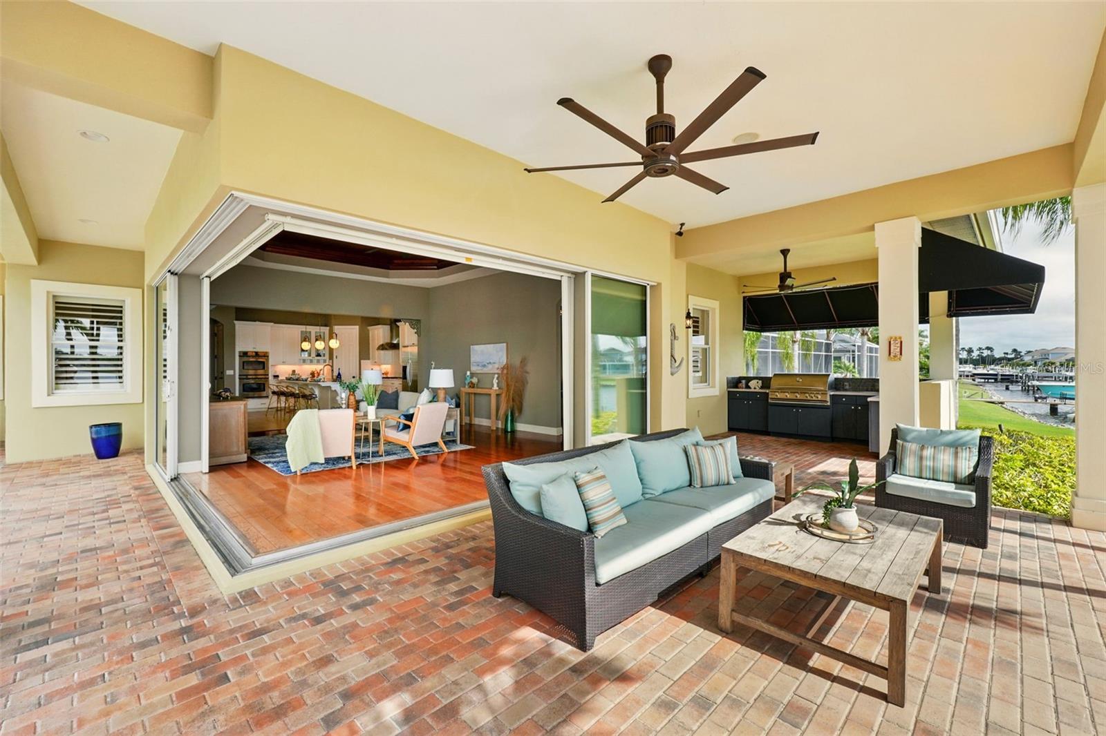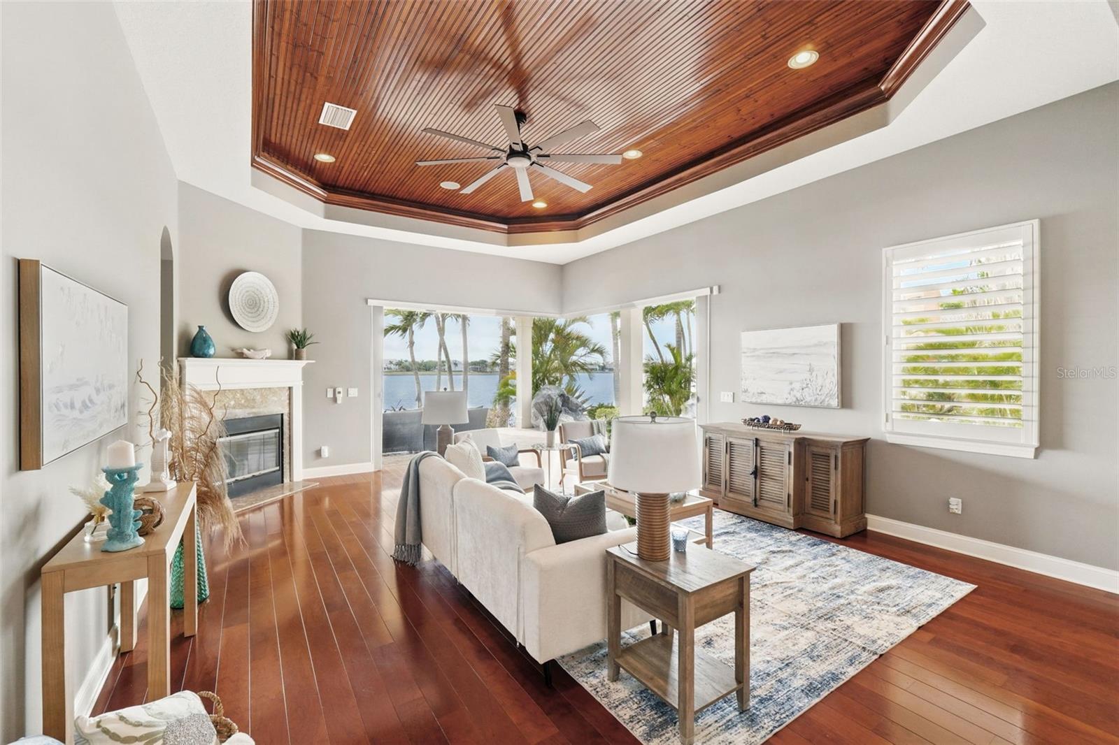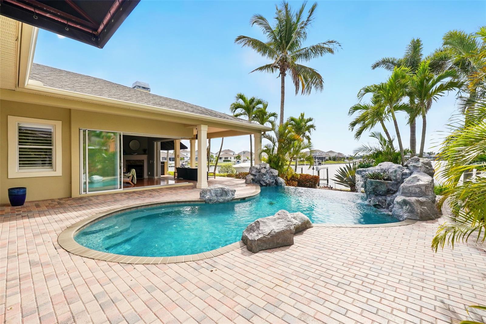Under contract-accepting backup offers. Welcome to coastal living at its finest in the magnificent estate located in the exclusive MiraBay community! This stunning waterfront retreat boasts a private dock with a lift (20k pound lift and 15”wide will accommodate a 30’ plus boat easily), ideal for boating enthusiasts looking for direct access to the beautiful waters of Tampa Bay. Featuring: 3 Spacious Bedrooms and 3.5 Elegant Bathrooms, a Dedicated Office and a Media Room perfect for work and play, a Tandem 3-Car Garage ideal for extra storage or your weekend ride. It is equipped with a 26 KWH LG Solar Power System for an energy-efficient and eco-conscious lifestyle that will produce almost 100% of the power required to operate this home, the system is owned by the seller and payed off and will convey, it includes a 25-year transferable warranty of which it has 19 years left. The power bill is only $20/month. A New Roof was just installed updated for peace of mind. Custom Renovations have been done throughout the house including updated Kitchen cabinets and countertops, Lighting fixtures, new paint, updated bathroom faucets, cabinets and countertops, and more.. The stunning backyard features a Lush Tropical Landscaping, curated to impress with a Custom salt water Pool to create your own private oasis with wide open water views and an expansive outdoor lanai with a full-service summer kitchen. Whether you're entertaining on the water or enjoying a quiet night in, this home offers the perfect blend of luxury, comfort, and convenience. Additional features: The is located within the community lagoon which is connected to the Gulf of Mexico via a 1/2-mile canal, Lagoon water levels are not impacted by tide ensuring full access to open water 100% of the time and protected from mayor weather events. A Mosquito Mist System for the whole house virtually eliminates mosquitos around the perimeter of the lanais and poolThe MiraBay community is a gated, resort-style community with clubhouse, pool, fitness center, tennis courts, and more! Makes you feel you’re living in your own privet resort. Schedule your private showing today — waterfront homes like this don’t last long!