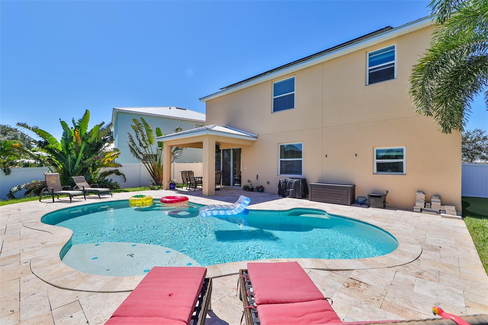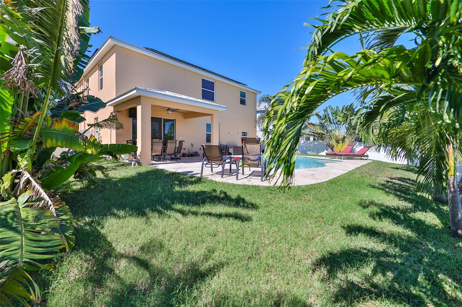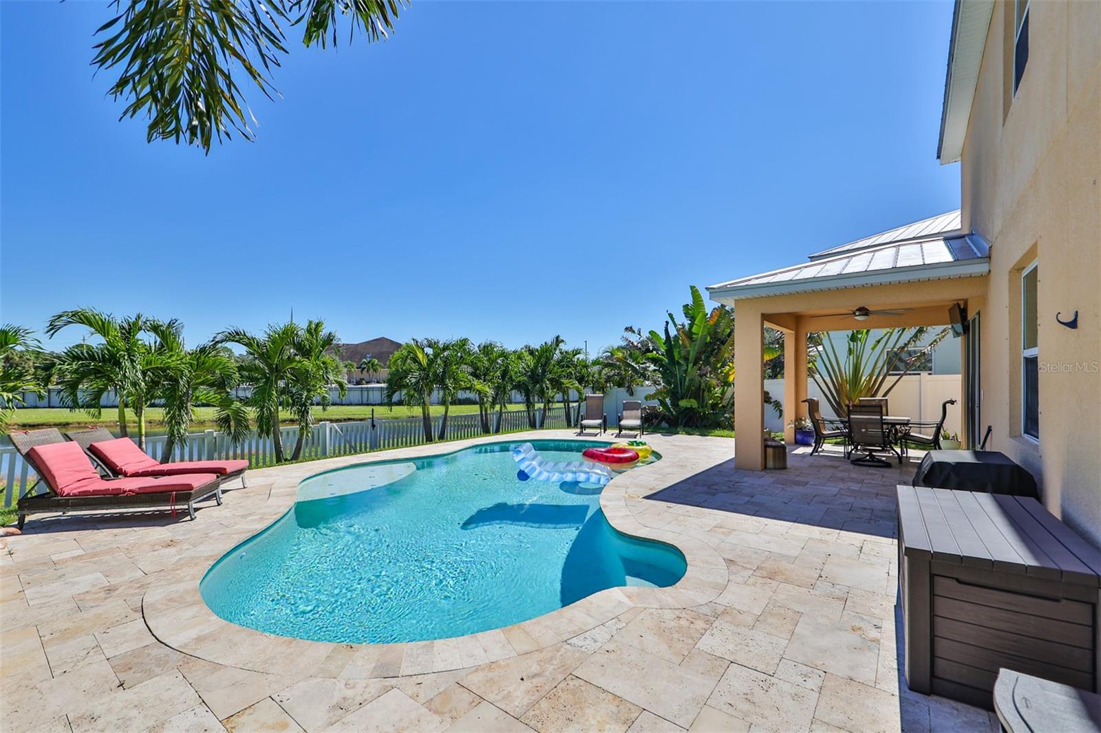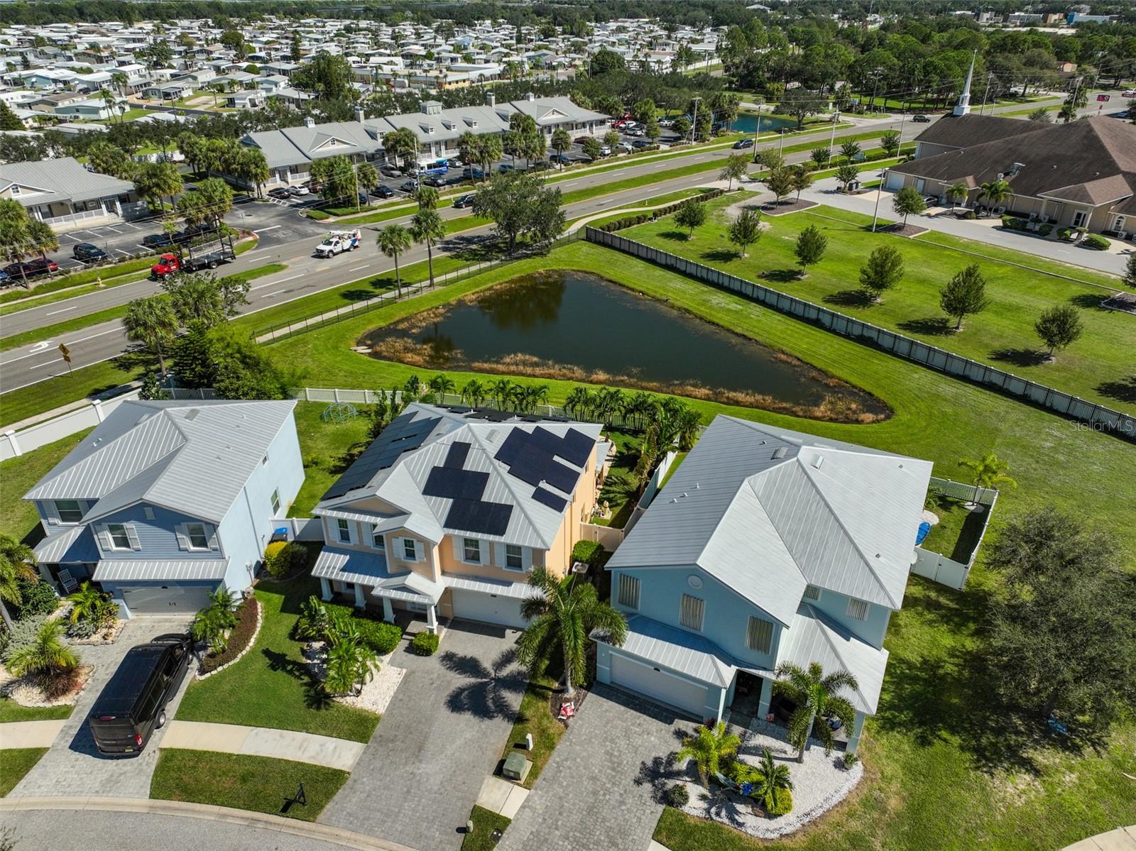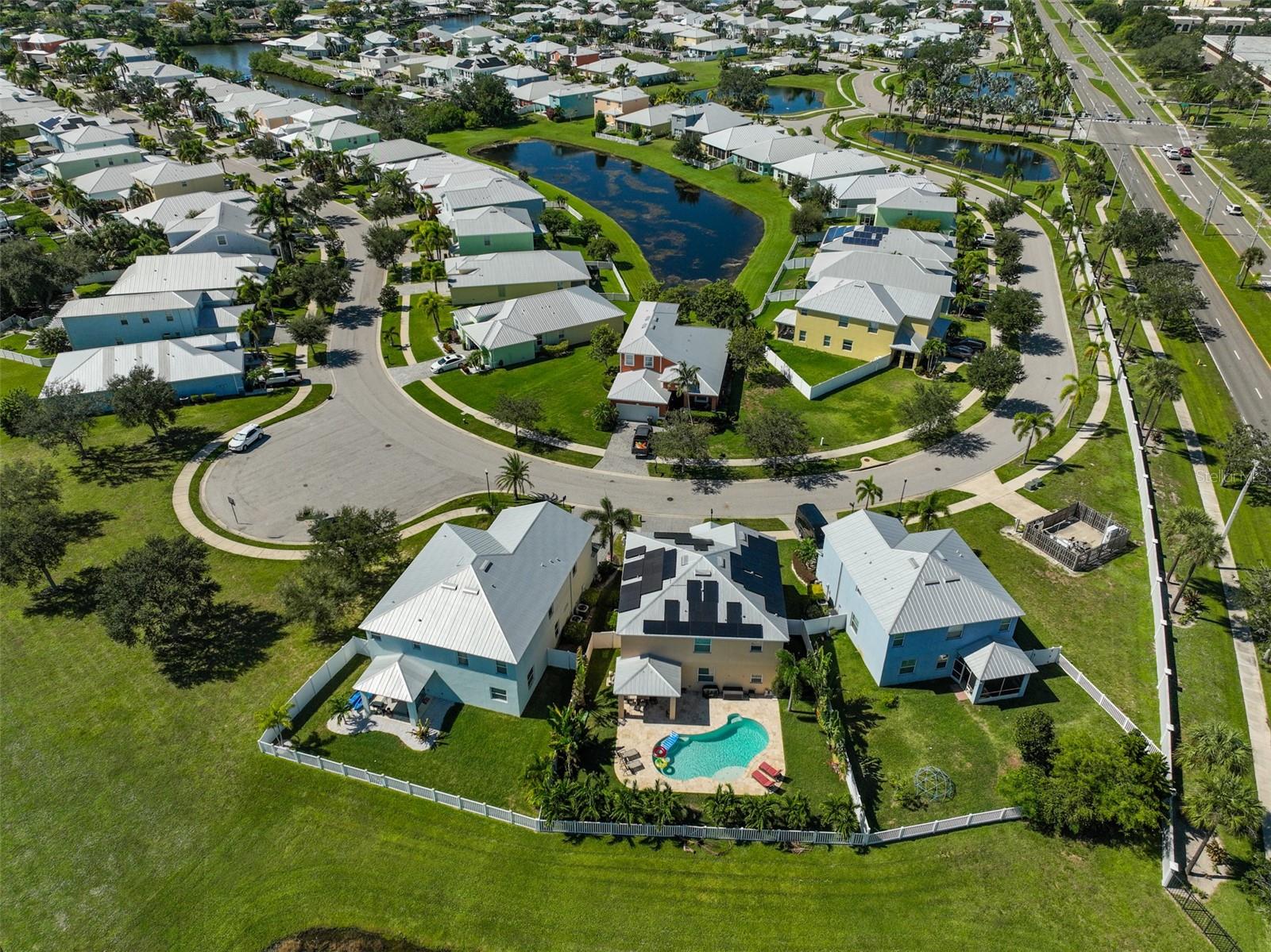 Seller may consider buyer concessions if made in an offer. Come live in Paradise with the charming eco-friendly home that feature state-of-the -art solar panels that significantly reduce energy cost and your carbon footprint. This gorgeous two-story home is nestled in a tranquil gated, waterfront community of Bimini Bay which is situated in the heart of Apollo Beach. Welcome to your very own coastal oasis offering a captivating blend of enchanting natural beauty and tranquil views. When walking through the front entry way you will be greeted by an open floor plan with immediate views of the private pool. This amazing home offers 4 upstairs bedrooms along with 2 full bathrooms and downstairs there is a half bath. The kitchen is seasoned with love and is perfect for entertaining your guests featuring lots of cabinets, stainless steel appliances, large pantry and extended counterspace. Enjoy hosting elegant dinners in the formal dining room or enjoy a quick meal in the breakfast nook. This home is full of endless possibilities. Upstairs primary suite offers a large walk-in closet, ensuite bathroom complete with a garden tub, walk-in shower, and dual vanity sinks. The laundry room is conveniently located upstairs with all the bedrooms and offers extra storage space. The 2-car garage has plenty of room so bring your toys, bikes and extra vehicles. Enjoy sunny Florida living at its best!!! Flip flops are highly recommended, wear lots of sunscreen, relax, hang up your towel, soak up the sun and swim in your inviting private pool or enjoy sipping, grilling and chilling on your amazing extended lanai overlooking the peaceful pond! Come plant your wishes, play in the dirt, spend time with the family and pets, have a TEE-RIFIC time with your own personal putting green in this amazing, fenced backyard! This home offers a metal roof. Private gated community with low HOA & NO CDD. Conveniently located near restaurants, shopping, schools, Downtown Tampa, Busch Gardens, MacDill Airforce, Selmon Expressway, I75, I4, US41 & US301. Call today!