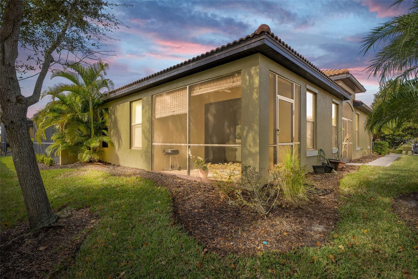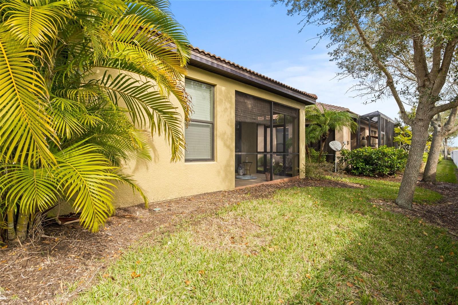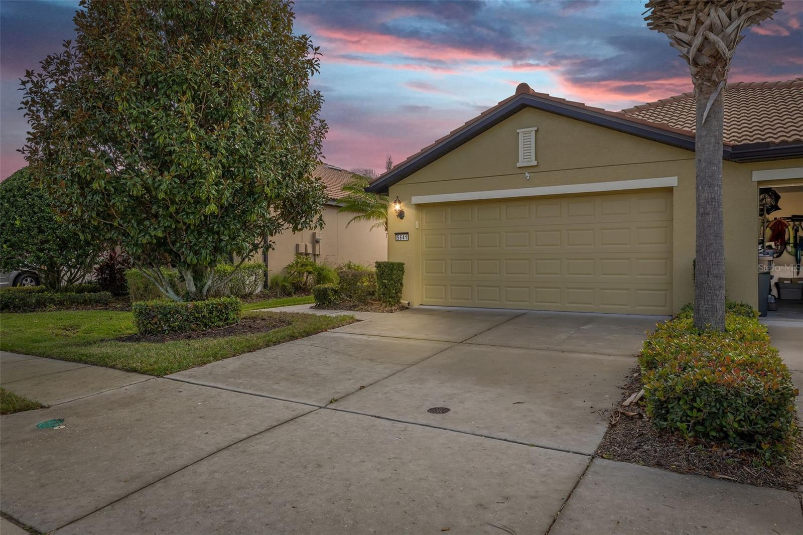 Charming villa with 2 bedrooms, 2 baths, and a 2-car garage nestled in the serene, gated community of SouthShore Falls by Del Webb! This inviting Everglades model features an airy open floor plan, adorned with tile flooring throughout most areas except the bedrooms, allowing ample natural light and ensuring privacy with no rear neighbors. Recently refreshed inside and out, it boasts window treatments, blinds, and elegant crown molding enhancing the great room, kitchen, and dining spaces. The well-appointed kitchen showcases a breakfast bar, 42" wood cabinets, stainless steel appliances, a closet pantry, and sleek granite countertops. Ideal for hosting gatherings, the spacious great room seamlessly connects to the screened lanai through sliding doors. The primary suite indulges with his/her closets and a primary bath featuring dual sinks and a roomy walk-in shower. Guests enjoy privacy with the split bedroom layout, while the inside utility room, complete with washer and dryer, adds convenience to laundry days. SouthShore Falls offers a wealth of amenities for residents. Outdoor enthusiasts can delight in tennis courts, pickleball, pools, and a fitness room. Conveniently situated off US41 near I75, it provides easy access to Tampa, Sarasota, gulf beaches, major attractions, cultural venues, medical facilities, shopping, and dining options. Don't miss the opportunity to make this exceptional home yours—call today to begin the journey!