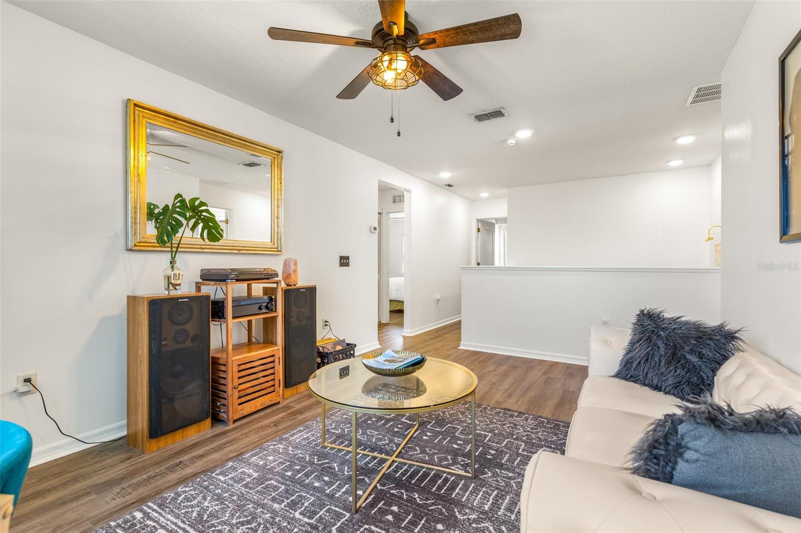 Beautiful spacious home in a great neighborhood! Come and check out this Florida oasis in growing Apollo Beach. Enjoy evenings on your screened lanai overlooking a peaceful pond. Inside, you will find NO CARPET throughout this large 3 bedroom 3 bath home with THREE additional family spaces and 3 bathrooms. Not only does the home feature one of the largest master bedrooms you will find upstairs, it also boasts a downstairs bedroom WITH AN ON-SUITE for those looking for accommodations that don't need to navigate stairs. There is fresh paint both inside and outside giving it a clean and updated look. The owners have taken meticulous care. In the last year alone, the owners installed a new sprinkler system, water softener, water heater, refrigerator, screen for the patio and a microwave. The community includes access to a resort style pool and community center. BUT WAIT THEIR'S MORE!!! The sellers have an assumable VA mortgage at a rate of 3.75% for 30 year fixed!!!! With all the extras, this home won't last long! Schedule a showing now before it's too late.