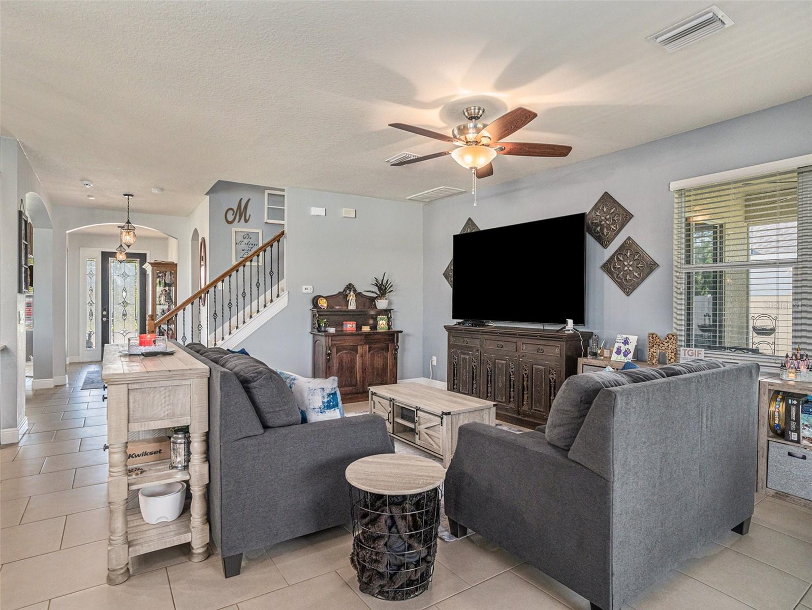 Welcome to this stunning 5 bed, 3 bath single-family home in Apollo Beach, FL. Step inside to find beautiful ceramic tile flooring throughout the first floor, enhancing the spacious open living room/dining area. The kitchen features granite countertops, stainless steel appliances, and a large closet pantry, perfect for culinary enthusiasts. Upstairs, a generous loft area awaits for relaxation or movie nights. The oversized primary room boasts a tray ceiling, his/hers walk-in closets, and an en suite bathroom with quartz countertops, dual sinks, separate shower and tub, and a water closet. Outside, a wrap-around screened porch offers serene views of the nature preserve, which is protected, so no construction will ever be built behind the home. Plus, the home is already hooked up to install a pool in the backyard. Don't miss the opportunity to make this Apollo Beach home yours – schedule your showing today! Bedroom Closet Type: Walk-in Closet (Primary Bedroom). Pending complete re-stucco of the exterior and repainting of the exterior.