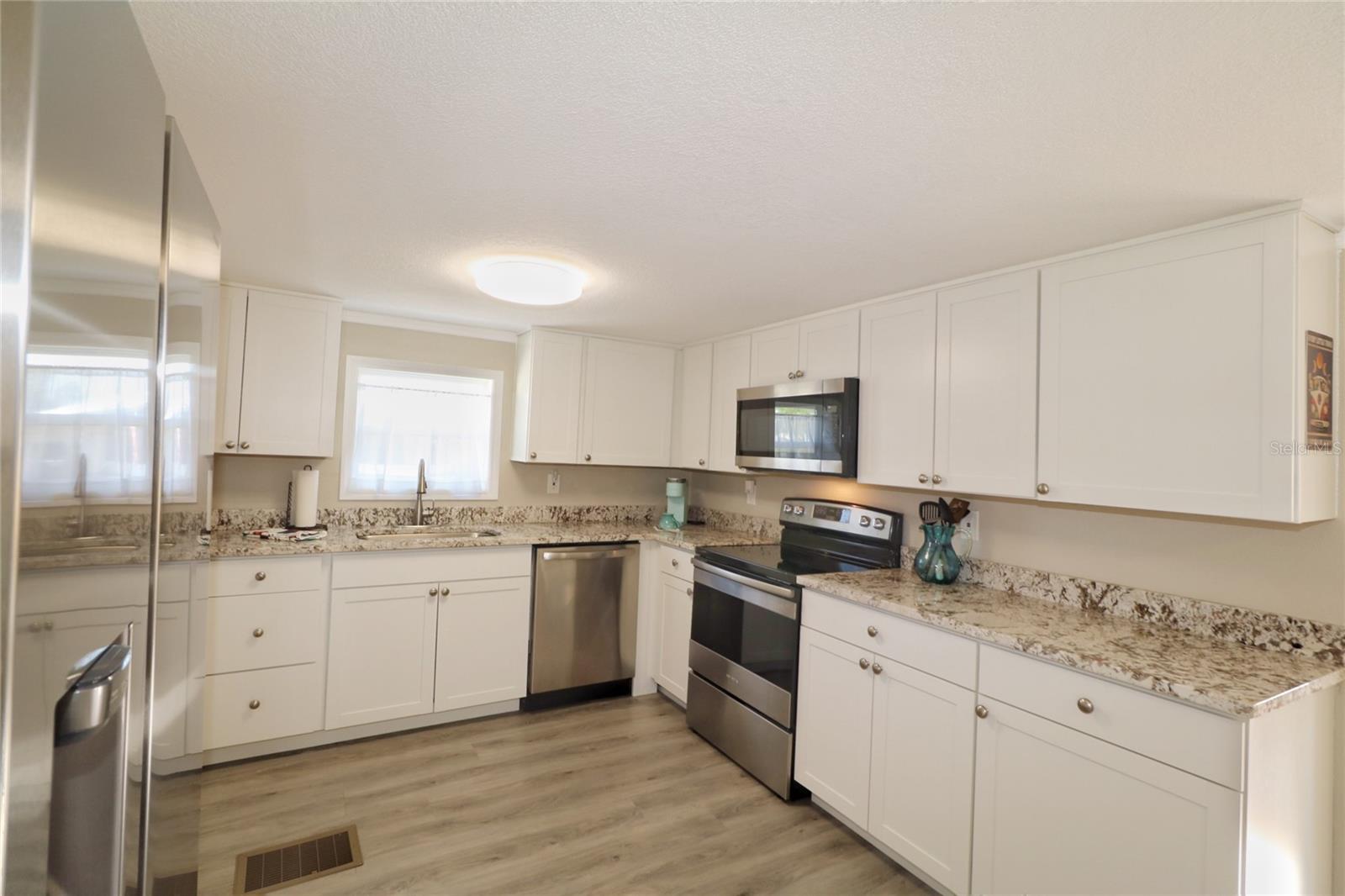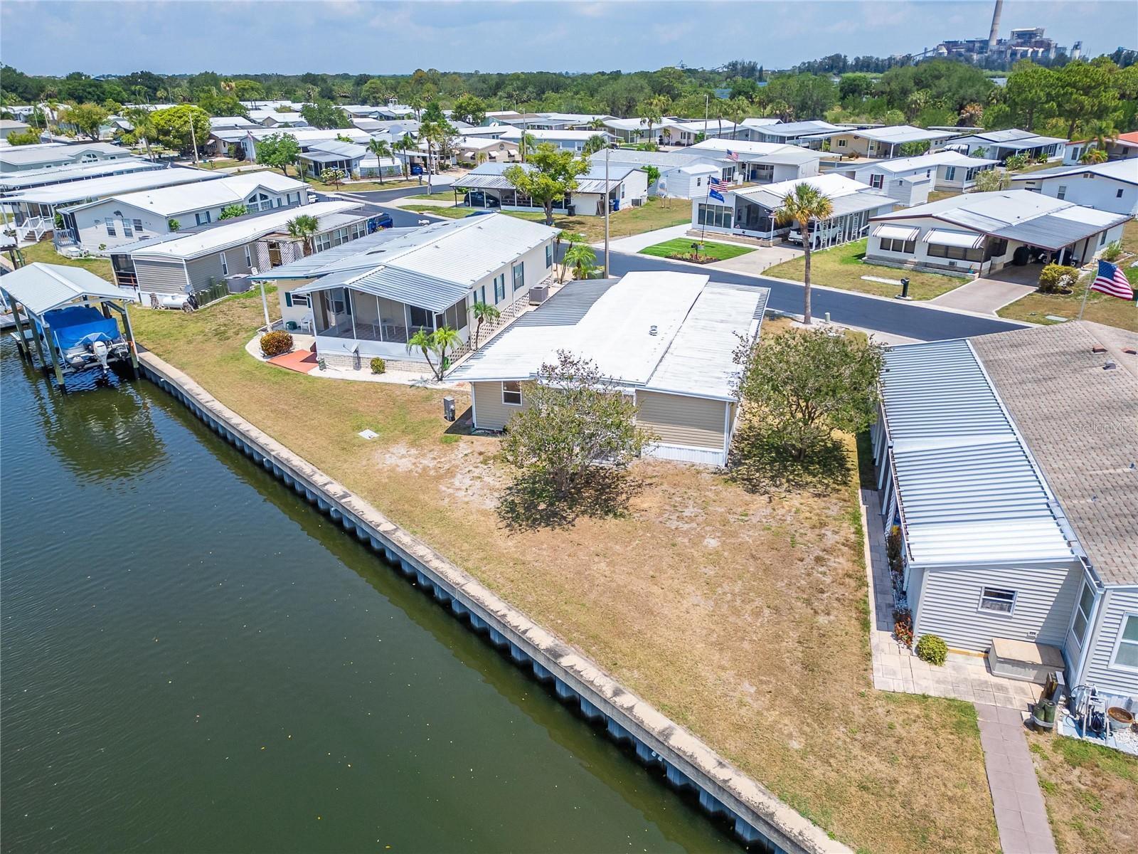 You'll love the NEW PRICE! for this affordable home on a WATERFRONT LOT in a 55+ resort style community. This adorable two bedroom, two bath home was completely renovated two years ago with a spacious kitchen, two bathrooms, beautiful laminate floors throughout, energy efficient windows, tankless water heater, new siding, skirting, and front porch. You'll love the WALK IN CLOSETS in each of the bedrooms, and the kitchen is perfect for the cook who needs expanded counter space to work. All appliances are beautiful stainless steel. Work from home? The bedroom that fronts onto the CANAL is perfect for your office. Glance out the windows to see the boats go by on their way to Tampa Bay. Dolphin and Manatee are often seen swimming by as well. Need STORAGE? Bedroom walk-in closets are 5X11, and 5X9! Outside you will find another large, drywalled, storage area - which you could consider converting into a Man Cave or She Shed. You can add a dock to your own slice of paradise, if it's your dream. With NO LOT RENT and NO CDD, your monthly maintenance fee ($242 monthly) covers a myriad of social activities, professional management, maintenance of the private roads, a boat and kayak launch, and dog park. There are four miles of roads to travel on with your golf cart or bike. The pool is heated all year around, and the clubhouse has a library, game and craft rooms, and a full kitchen where community meals for events are often served. Regular events include Bingo, the annual Talent Show, Penny Social, themed dinners and dances during, and on, the holidays...this community will keep you active all year.