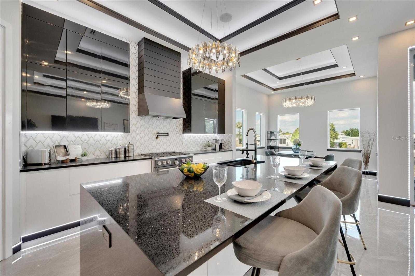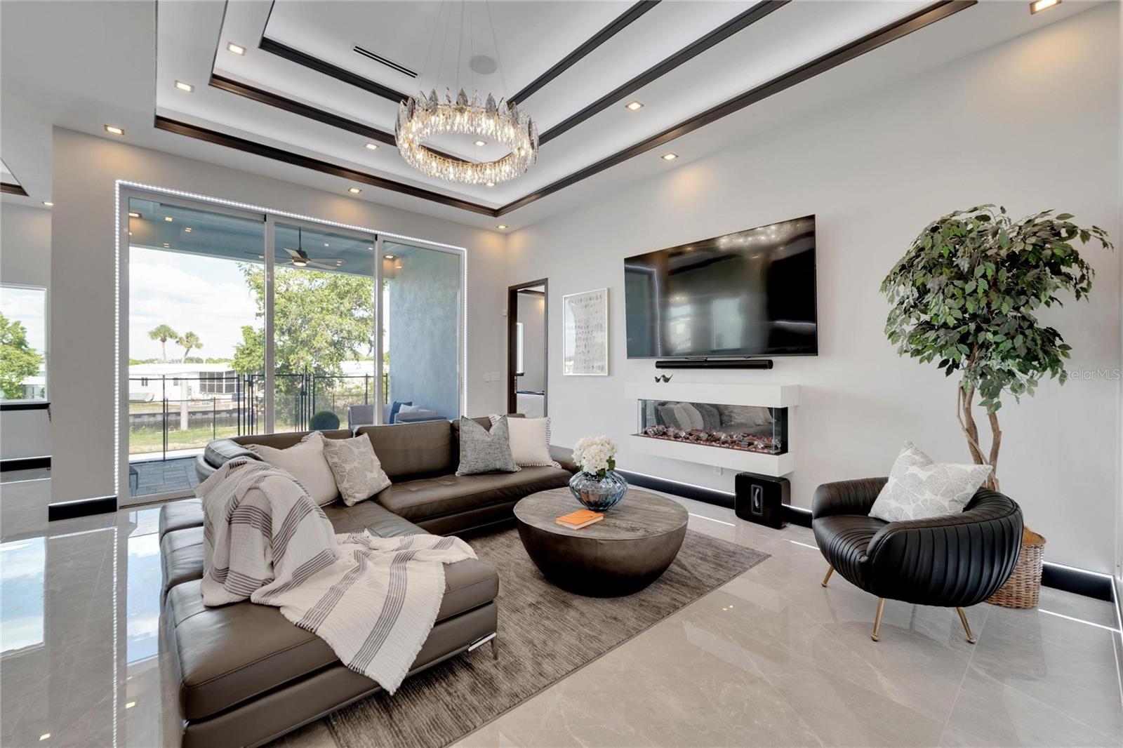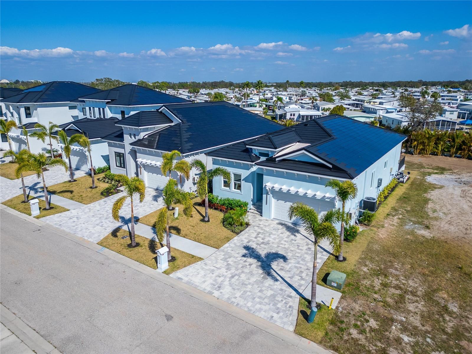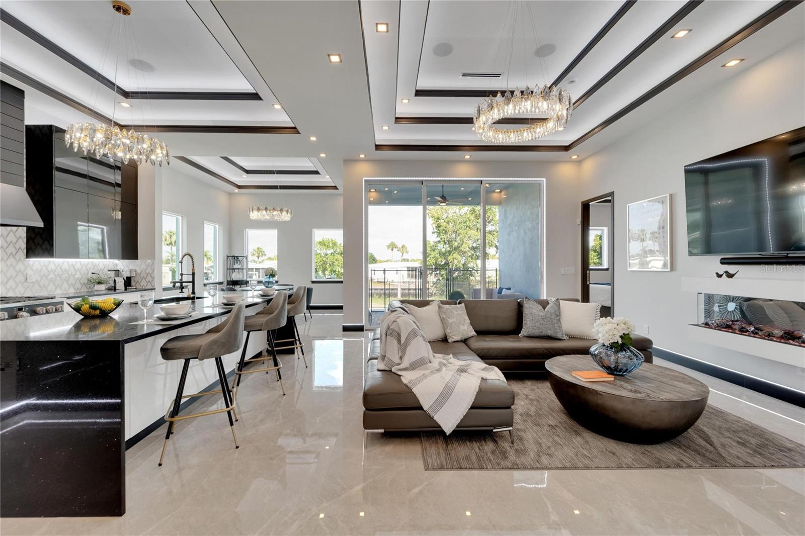 6542 Simone Shore Circle | The Marlin Floorplan 4 Beds | 3 Baths | 2-Car Garage | 2,139 Living Sq. Ft. | 12 ft Elevation Be the first to own this 2024 custom-built home by Bistro Builders in the waterfront community of Hemingway Estates. This single-story Marlin floorplan offers 4 bedrooms, 3 full baths, and a 2-car garage with unmatched upgrades inside and out. Enjoy modern smart home living, solar energy, and a private dock with quick access to the bay. Built with solid block construction and a stem wall foundation, this home stands at a 12 ft elevation. High-efficiency hurricane-rated windows, and fire-resistant, seamless hardware doors add safety and durability. The hurricane-rated, insulated garage doors, along with icynene spray foam insulation, help keep the home quiet and energy efficient. The home also features a hardwired internal and external security system with fingerprint and facial recognition entry. Inside, triple tray ceilings with custom lighting, and smooth-finish walls create a clean, modern look. The great room includes an electric fireplace, triple sliding glass doors, surround sound throughout, and built-in TV and sound system. Imported tile floors flow throughout the main living spaces. The kitchen is built for real cooks, with quartz countertops, a waterfall island, high-end gas appliances, a pot filler, a wine cooler, and two-tone custom cabinetry with organizational pull-down shelving. The dining room is filled with natural light and opens to the lanai. The private primary suite offers pool and canal views, custom lighting, and a large walk-in closet with a European organization system. The bathroom includes dual sinks, a jetted soaking tub, and a floor-to-ceiling tiled shower with multiple shower heads that adjust pressure, color, and temperature. Secondary bedrooms are oversized with tray ceilings and built-in custom closets. The split bedroom layout allows for privacy. The laundry room includes storage cabinets and countertop workspace. Smart home technology runs throughout the house—control solar, lights, thermostat, security, garage, and pool from your phone or the mounted iPads. Other standout features include floor-to-ceiling shower tile, tall bidet toilets with heating, and custom soffit, window, and baseboard lighting. The garage features epoxy flooring and a dedicated AC unit. Outside, heated saltwater pool and spa, and new seawall. The private dock with a 10,000 lb lift makes boating easy. Solar roof tiles with battery wall storage provide energy independence. The HOA includes lawncare, irrigation and landscaping. Located in Apollo Beach across from the Tampa Aquarium Turtle Rescue Center and near the Manatee Viewing Center, this home is close to shopping, dining, hospitals, highways, and schools.