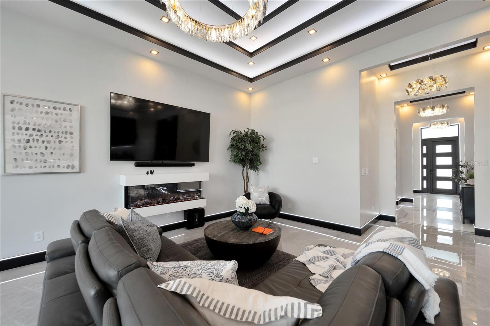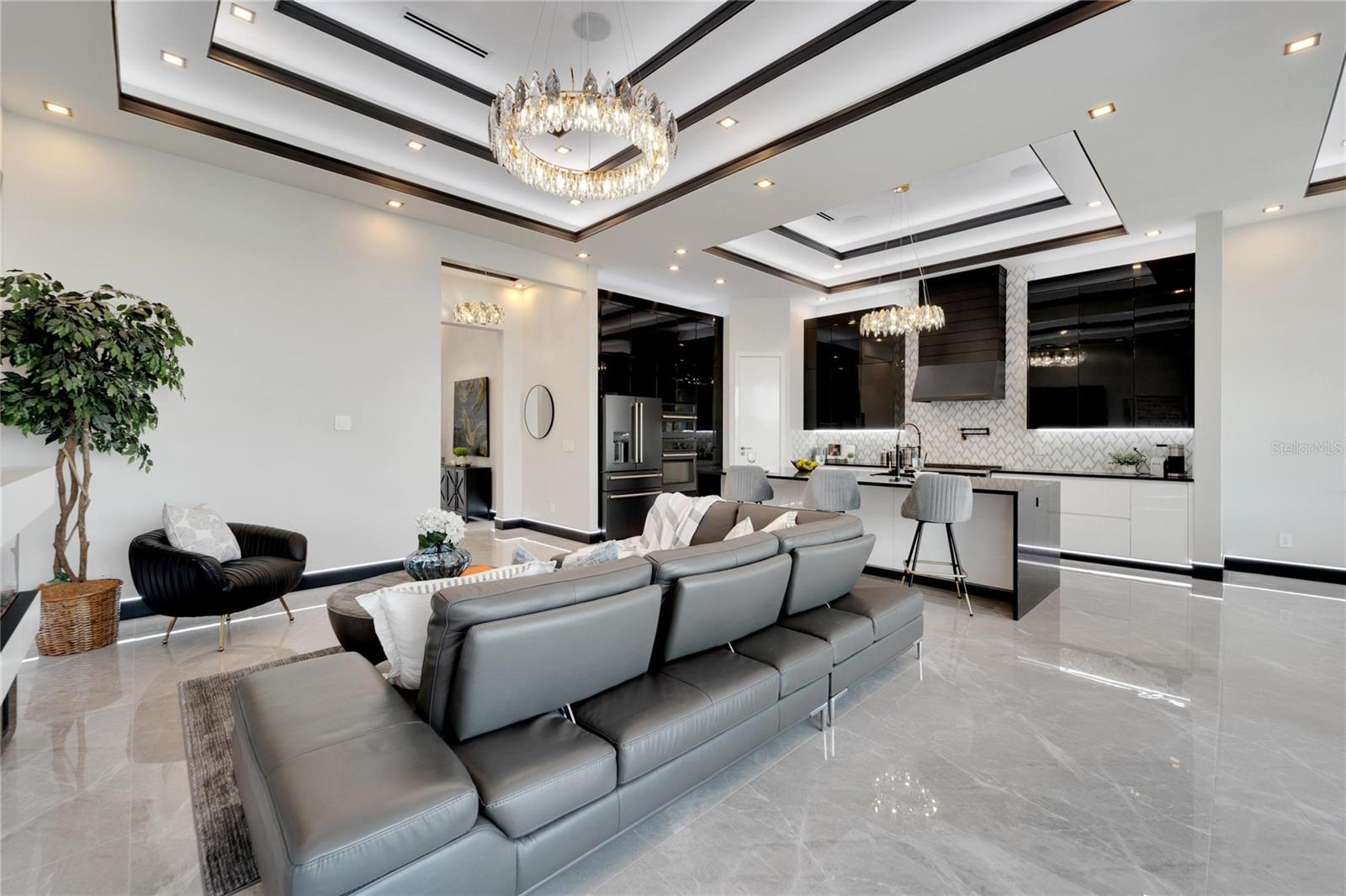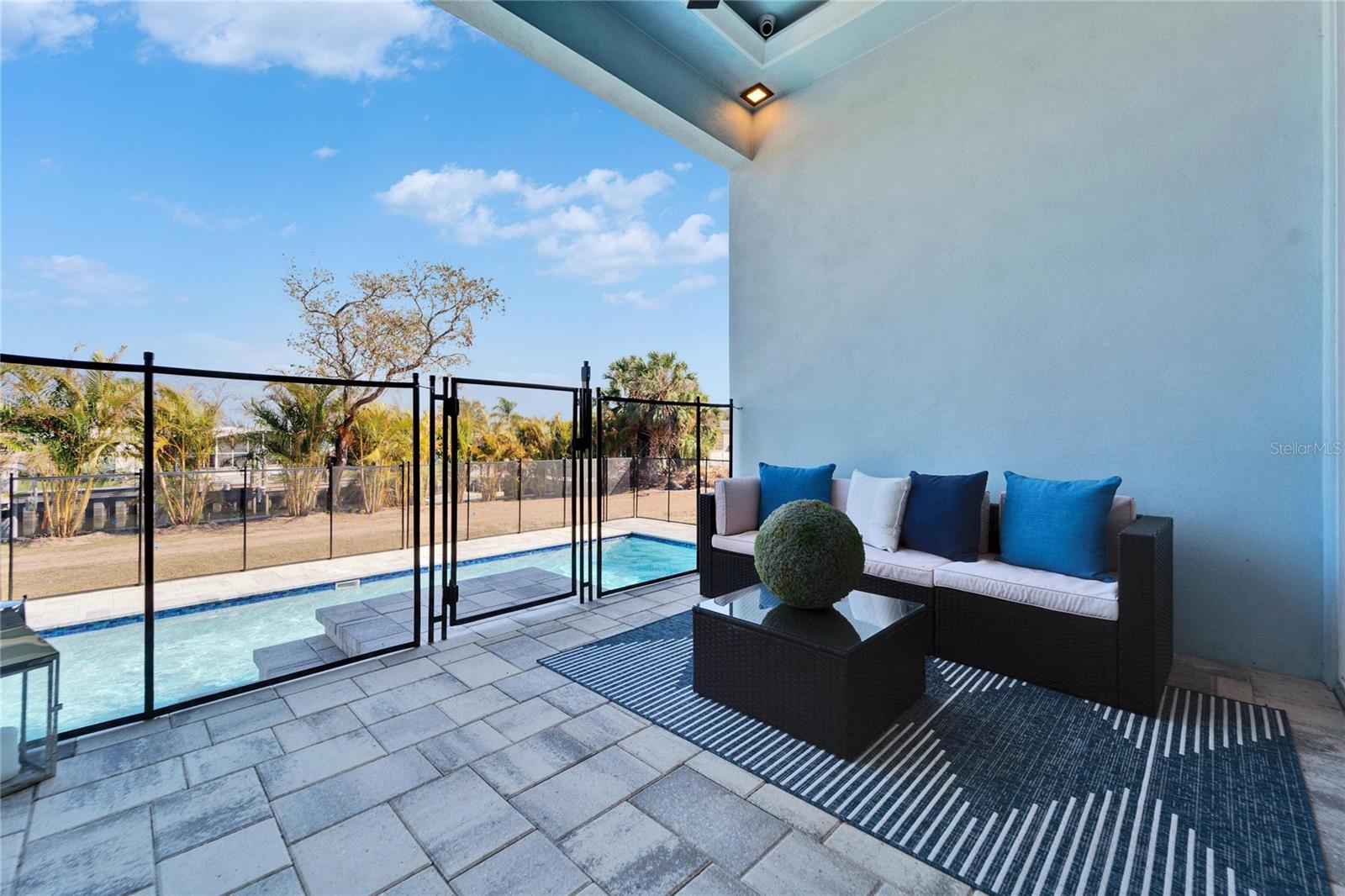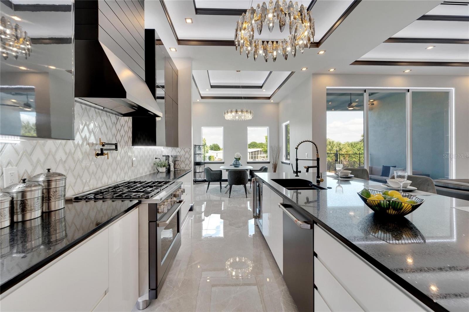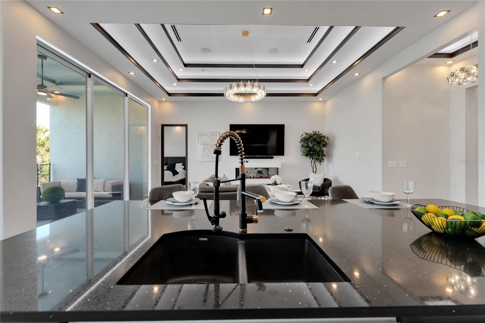 6542 Simone Shore Circle | The Marlin Floorplan 4 Beds | 3 Baths | 2-Car Garage | 2,139 Living Sq. Ft. | 12 ft Elevation Be the first to own this 2024 custom-built home by Bistro Builders in the waterfront community of Hemingway Estates. This single-story Marlin floorplan offers 4 bedrooms, 3 full baths, and a 2-car garage with unmatched upgrades inside and out. Enjoy modern smart home living, solar energy, and a private dock with quick access to the bay. Built with solid block construction and a stem wall foundation, this home stands at a 12 ft elevation. High-efficiency hurricane-rated windows, and fire-resistant, seamless hardware doors add safety and durability. The hurricane-rated, insulated garage doors, along with icynene spray foam insulation, help keep the home quiet and energy efficient. The home also features a hardwired internal and external security system with fingerprint and facial recognition entry. Inside, triple tray ceilings with custom lighting, and smooth-finish walls create a clean, modern look. The great room includes an electric fireplace, triple sliding glass doors, surround sound throughout, and built-in TV and sound system. Imported tile floors flow throughout the main living spaces. The kitchen is built for real cooks, with quartz countertops, a waterfall island, high-end gas appliances, a pot filler, a wine cooler, and two-tone custom cabinetry with organizational pull-down shelving. The dining room is filled with natural light and opens to the lanai. The private primary suite offers pool and canal views, custom lighting, and a large walk-in closet with a European organization system. The bathroom includes dual sinks, a jetted soaking tub, and a floor-to-ceiling tiled shower with multiple shower heads that adjust pressure, color, and temperature. Secondary bedrooms are oversized with tray ceilings and built-in custom closets. The split bedroom layout allows for privacy. The laundry room includes storage cabinets and countertop workspace. Smart home technology runs throughout the house—control solar, lights, thermostat, security, garage, and pool from your phone or the mounted iPads. Other standout features include floor-to-ceiling shower tile, tall bidet toilets with heating, and custom soffit, window, and baseboard lighting. The garage features epoxy flooring and a dedicated AC unit. Outside, heated saltwater pool and spa, and new seawall. The private dock with a 10,000 lb lift makes boating easy. Solar roof tiles with battery wall storage provide energy independence. The HOA includes lawncare, irrigation and landscaping. Located in Apollo Beach across from the Tampa Aquarium Turtle Rescue Center and near the Manatee Viewing Center, this home is close to shopping, dining, hospitals, highways, and schools.