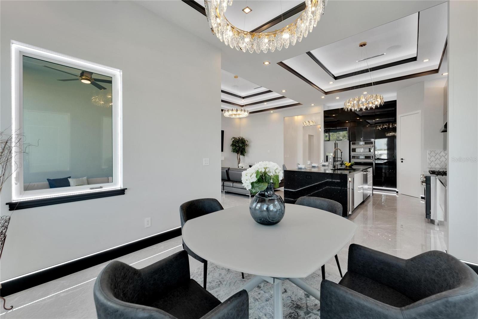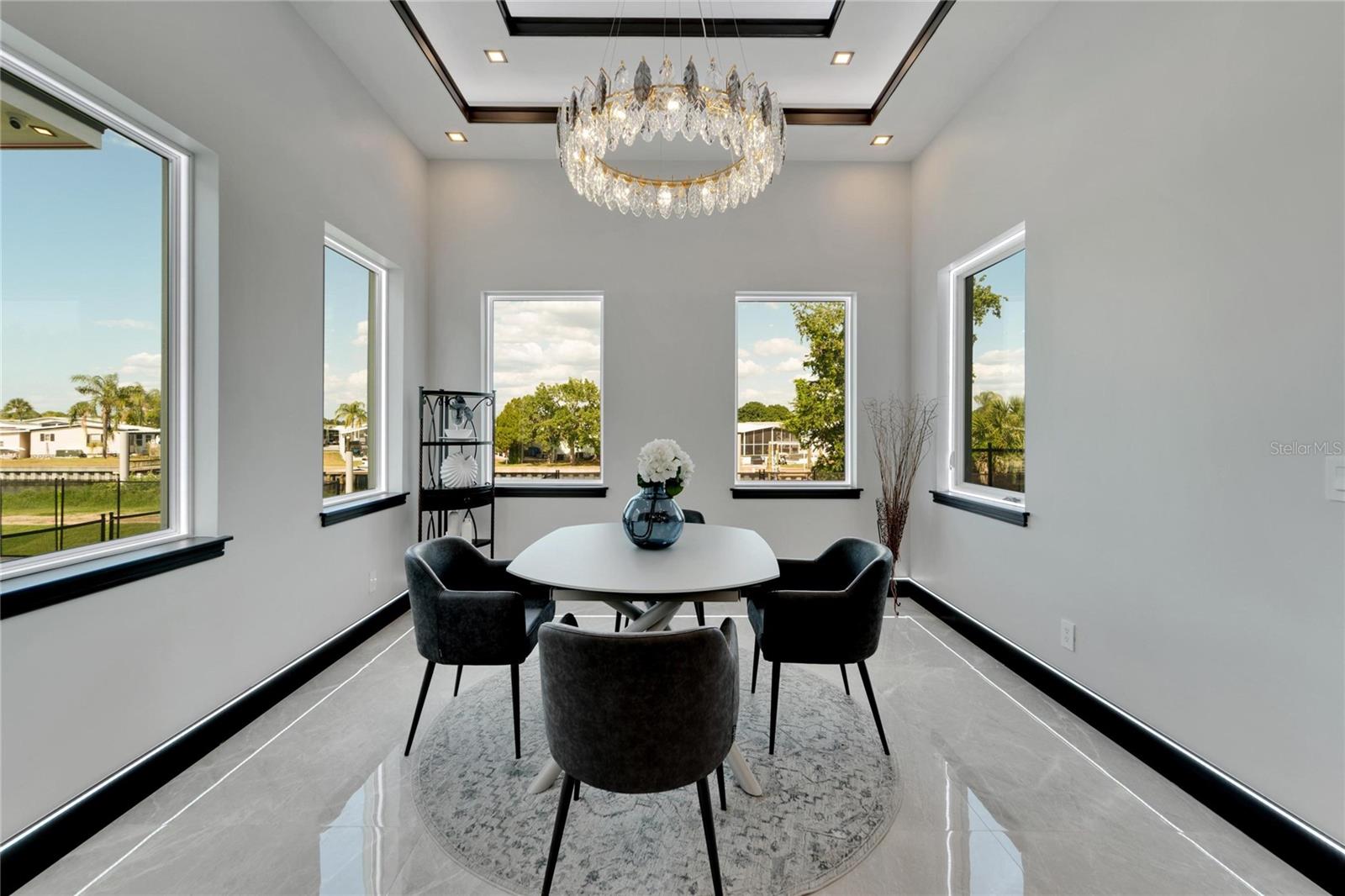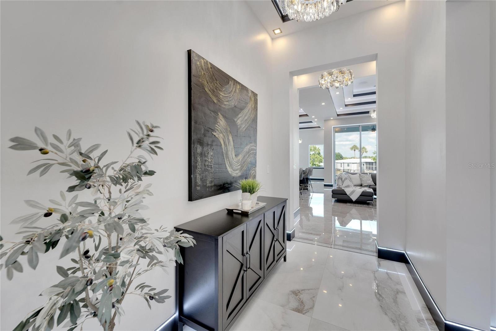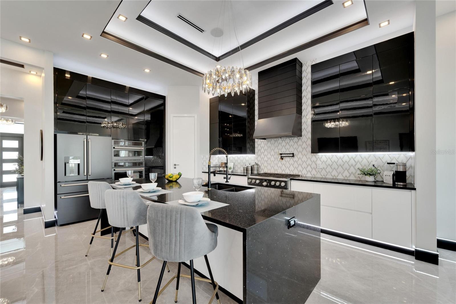 6542 Simone Shore Circle | The Marlin Floorplan 4 Beds | 3 Baths | 2-Car Garage | 2,139 Living Sq. Ft. | 12 ft Elevation Be the first to own this 2024 custom-built home by Bistro Builders in the waterfront community of Hemingway Estates. This single-story Marlin floorplan offers 4 bedrooms, 3 full baths, and a 2-car garage with unmatched upgrades inside and out. Enjoy modern smart home living, solar energy, and a private dock with quick access to the bay. Built with solid block construction and a stem wall foundation, this home stands at a 12 ft elevation. High-efficiency hurricane-rated windows, and fire-resistant, seamless hardware doors add safety and durability. The hurricane-rated, insulated garage doors, along with icynene spray foam insulation, help keep the home quiet and energy efficient. The home also features a hardwired internal and external security system with fingerprint and facial recognition entry. Inside, triple tray ceilings with custom lighting, and smooth-finish walls create a clean, modern look. The great room includes an electric fireplace, triple sliding glass doors, surround sound throughout, and built-in TV and sound system. Imported tile floors flow throughout the main living spaces. The kitchen is built for real cooks, with quartz countertops, a waterfall island, high-end gas appliances, a pot filler, a wine cooler, and two-tone custom cabinetry with organizational pull-down shelving. The dining room is filled with natural light and opens to the lanai. The private primary suite offers pool and canal views, custom lighting, and a large walk-in closet with a European organization system. The bathroom includes dual sinks, a jetted soaking tub, and a floor-to-ceiling tiled shower with multiple shower heads that adjust pressure, color, and temperature. Secondary bedrooms are oversized with tray ceilings and built-in custom closets. The split bedroom layout allows for privacy. The laundry room includes storage cabinets and countertop workspace. Smart home technology runs throughout the house—control solar, lights, thermostat, security, garage, and pool from your phone or the mounted iPads. Other standout features include floor-to-ceiling shower tile, tall bidet toilets with heating, and custom soffit, window, and baseboard lighting. The garage features epoxy flooring and a dedicated AC unit. Outside, heated saltwater pool and spa, and new seawall. The private dock with a 10,000 lb lift makes boating easy. Solar roof tiles with battery wall storage provide energy independence. The HOA includes lawncare, irrigation and landscaping. Located in Apollo Beach across from the Tampa Aquarium Turtle Rescue Center and near the Manatee Viewing Center, this home is close to shopping, dining, hospitals, highways, and schools.