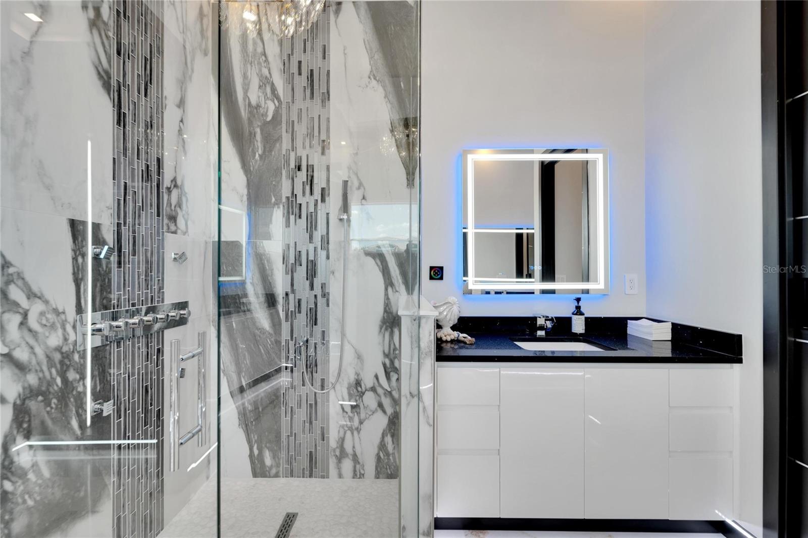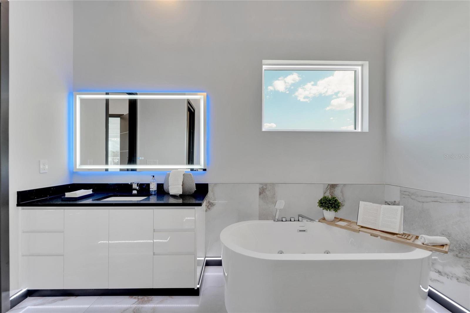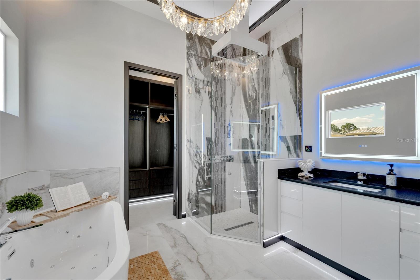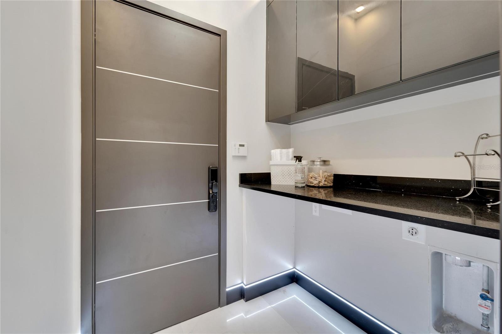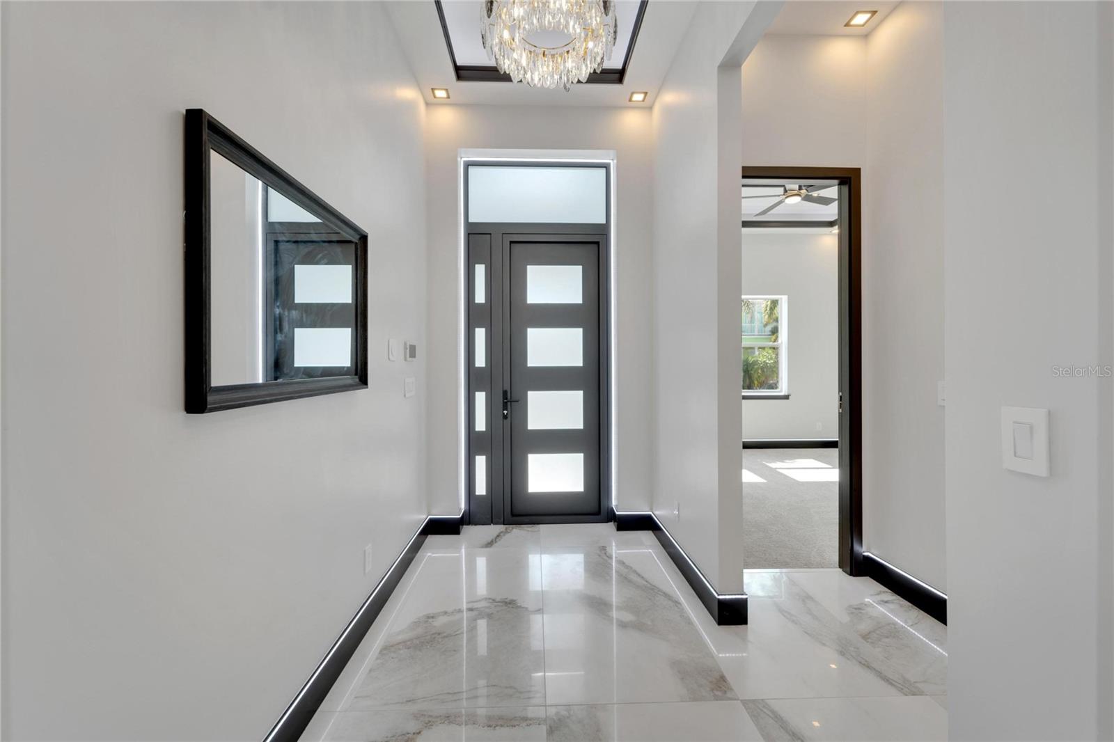 6542 Simone Shore Circle | The Marlin Floorplan 4 Beds | 3 Baths | 2-Car Garage | 2,139 Living Sq. Ft. | 12 ft Elevation Be the first to own this 2024 custom-built home by Bistro Builders in the waterfront community of Hemingway Estates. This single-story Marlin floorplan offers 4 bedrooms, 3 full baths, and a 2-car garage with unmatched upgrades inside and out. Enjoy modern smart home living, solar energy, and a private dock with quick access to the bay. Built with solid block construction and a stem wall foundation, this home stands at a 12 ft elevation. High-efficiency hurricane-rated windows, and fire-resistant, seamless hardware doors add safety and durability. The hurricane-rated, insulated garage doors, along with icynene spray foam insulation, help keep the home quiet and energy efficient. The home also features a hardwired internal and external security system with fingerprint and facial recognition entry. Inside, triple tray ceilings with custom lighting, and smooth-finish walls create a clean, modern look. The great room includes an electric fireplace, triple sliding glass doors, surround sound throughout, and built-in TV and sound system. Imported tile floors flow throughout the main living spaces. The kitchen is built for real cooks, with quartz countertops, a waterfall island, high-end gas appliances, a pot filler, a wine cooler, and two-tone custom cabinetry with organizational pull-down shelving. The dining room is filled with natural light and opens to the lanai. The private primary suite offers pool and canal views, custom lighting, and a large walk-in closet with a European organization system. The bathroom includes dual sinks, a jetted soaking tub, and a floor-to-ceiling tiled shower with multiple shower heads that adjust pressure, color, and temperature. Secondary bedrooms are oversized with tray ceilings and built-in custom closets. The split bedroom layout allows for privacy. The laundry room includes storage cabinets and countertop workspace. Smart home technology runs throughout the house—control solar, lights, thermostat, security, garage, and pool from your phone or the mounted iPads. Other standout features include floor-to-ceiling shower tile, tall bidet toilets with heating, and custom soffit, window, and baseboard lighting. The garage features epoxy flooring and a dedicated AC unit. Outside, heated saltwater pool and spa, and new seawall. The private dock with a 10,000 lb lift makes boating easy. Solar roof tiles with battery wall storage provide energy independence. The HOA includes lawncare, irrigation and landscaping. Located in Apollo Beach across from the Tampa Aquarium Turtle Rescue Center and near the Manatee Viewing Center, this home is close to shopping, dining, hospitals, highways, and schools.