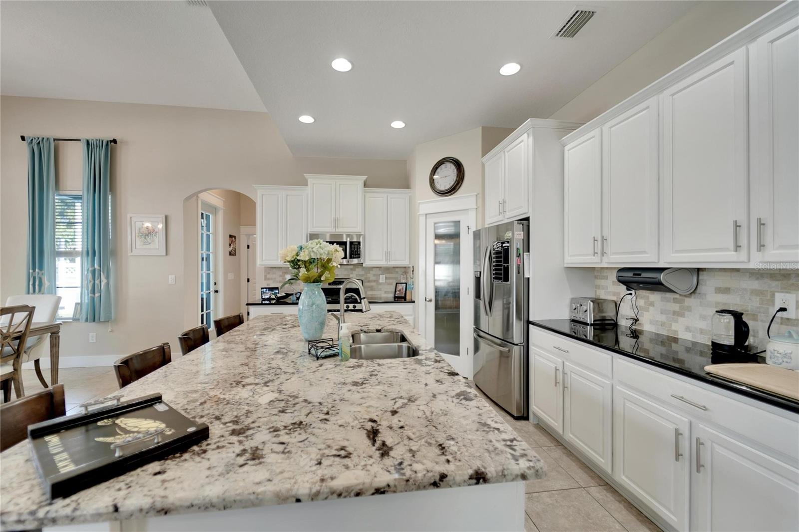 This stunning 3-bedroom, 2-bathroom, study/den/office, 2-car garage pool home nestled in the highly coveted Mirabay community offers a perfect blend of elegance and comfort. As you step onto the charming front porch, you're greeted by vibrant landscaping that sets the tone for what lies within. Upon entering, the Coral Harbor by Cardel Homes impresses with its soaring ceilings, intricate architectural details, and expansive windows that flood the interior with natural light. The seamless flow between the dining room and living room creates a spacious great room, ideal for both family gatherings and entertaining guests. The gourmet kitchen serves as the heart of the home, overlooking the open concept space and equipped with granite countertops, stainless steel appliances, 42” upgraded cabinetry, a stylish tile backsplash, and a generously sized center island where culinary creations can come to life. The master suite is a sanctuary unto itself, featuring a luxurious en suite complete with dual sinks, a spa-like tub, and a sizable walk-in shower. Two additional bedrooms offer ample space and brightness, while French doors lead to a versatile office/den that can easily double as a fourth bedroom to suit your needs. Outside, the home's outdoor living space is just as impressive, providing the perfect backdrop for relaxation or alfresco dining. Whether it's enjoying a morning coffee on the front porch or hosting a barbecue in the backyard, this home offers an idyllic setting for every occasion. In summary, this meticulously maintained home offers a harmonious blend of sophistication and functionality, making it an ideal retreat within the desirable Mirabay community.
