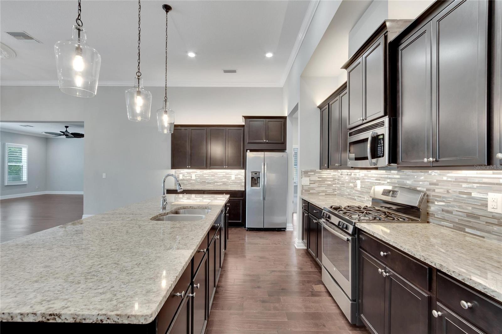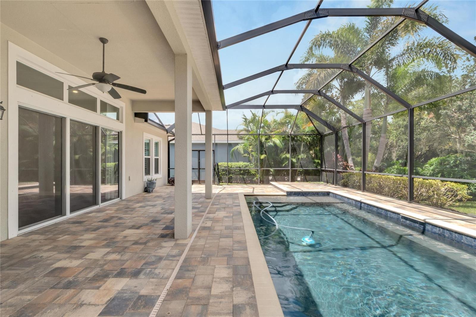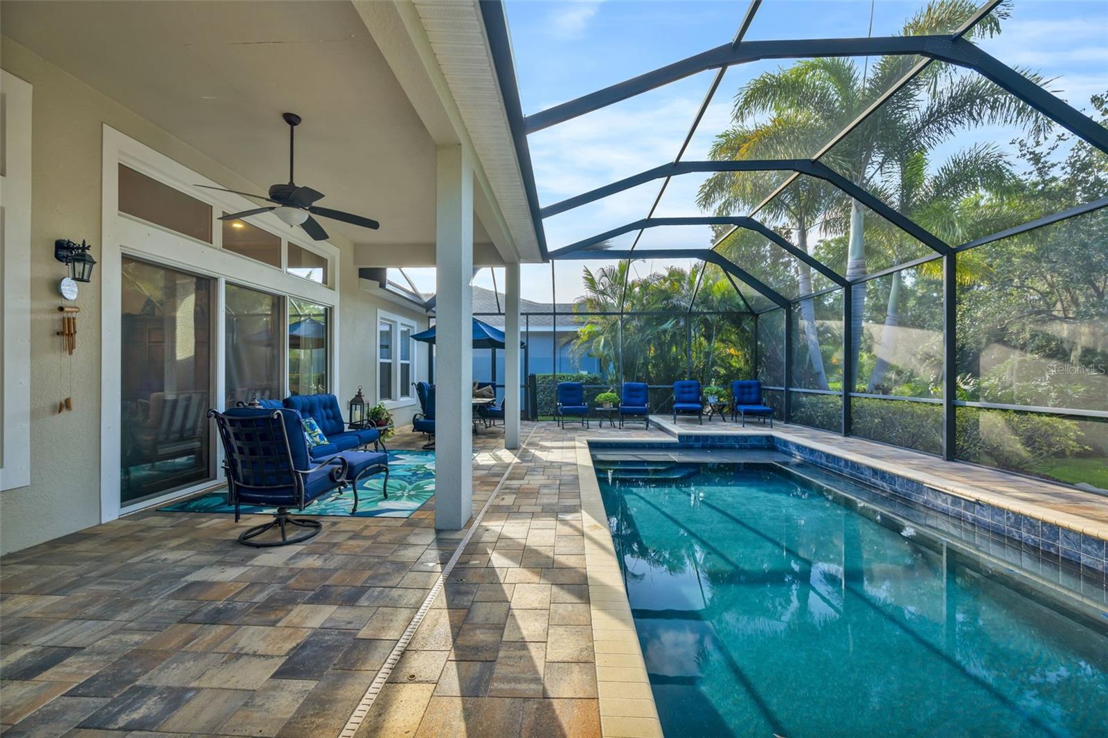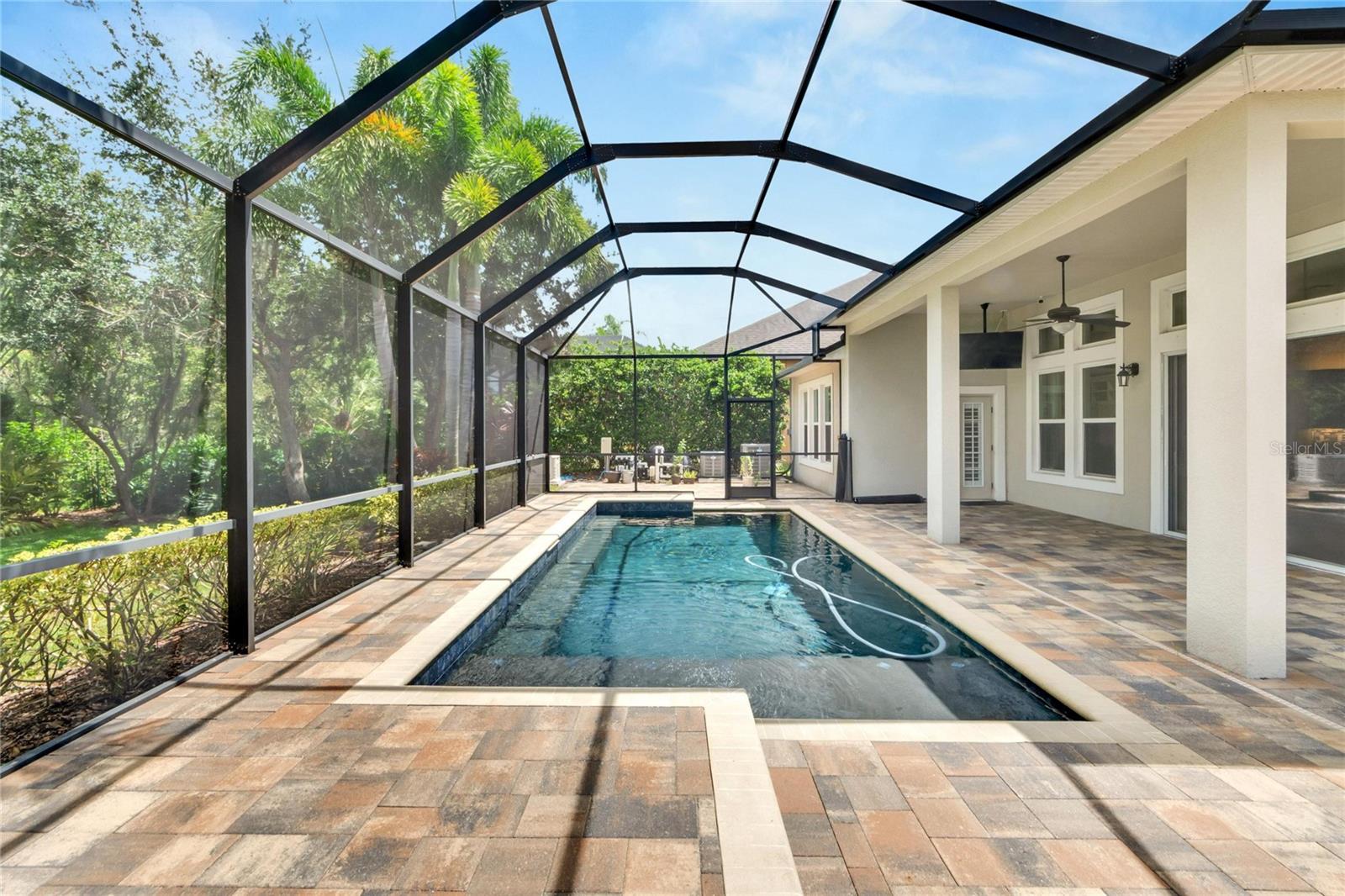 "Welcome Home! This meticulously mantained Cardel Florida Home in the desirable community of Waterset features 4 bedrooms, 3 bathrooms, a 3-car garage with parking for 6 cars, and a UVA protection screened-in heated saltwater black-bottom pool with a tropical landscaped privacy oasis. The home is equipped with a Generac System powered by natural gas to ensure uninterrupted utilities during power outages, storms, or emergencies. Other features include engineered hardwood flooring throughout the main living area, 12" high ceilings, crown molding, large built-in shelves, recessed lighting, Vortex Security System, floor-to-ceiling custom curtains with wooden 4" rod, wooden 3" plantation shutters on all windows, ceiling fans, tankless water heater, smart thermostats, new steel garbage disposal, a spacious office with attached extra room, an oversized laundry room, hurricane panels, gas appliances, and overhead garage storage. The kitchen boasts granite countertops, stainless steel appliances, microwave, a 5-burner gas cooktop, 42" upper cabinets with crown molding and under-cabinet lighting, a backsplash, an oversized island, and a walk-in corner pantry with built-in shelving. The primary bathroom features dual vanities, granite countertops, a walk-in shower with a rain showerhead, a garden tub, and a spacious walk-in closet with built-in shelving. A Jack and Jill bathroom seamlessly merges two bedrooms, providing a convenient and practical solution for families. The backyard oasis can be accessed through 15' glass sliders giving you a seamless indoor/outdoor living leading to a covered patio with pavers, the tropical landscaping includes matured Queen, Foxtail and Traveler palm trees. Other features include ceiling fans and a TV, which you can watch from the built-in seating bench in the pool. A garden allows you to grow veggies. The community of Waterset, offers multiple clubhouses, dog parks, fitness centers, 3 resort-style pools, playgrounds, splash pad, parks, walking trails, and an active lifestyle/activities program. Several schools, including charter school options, are within a 5-minute drive. The location between I-75, US Hwy 41 and the Crosstown provides convenient commuting options to Tampa, St. Pete, and Sarasota. Nearby amenities include the biggest newly built sports complex in the county, dog spa, grocery stores, restaurants, a YMCA, and a new town center with shops and restaurants currently under construction.
