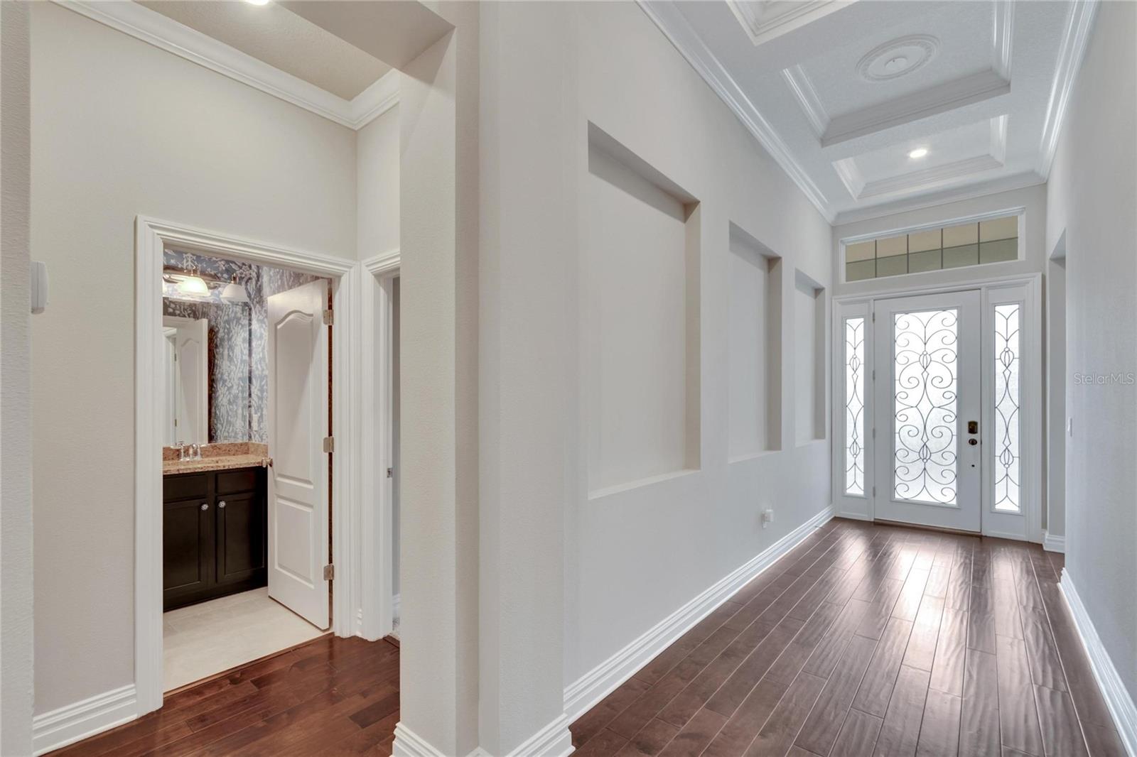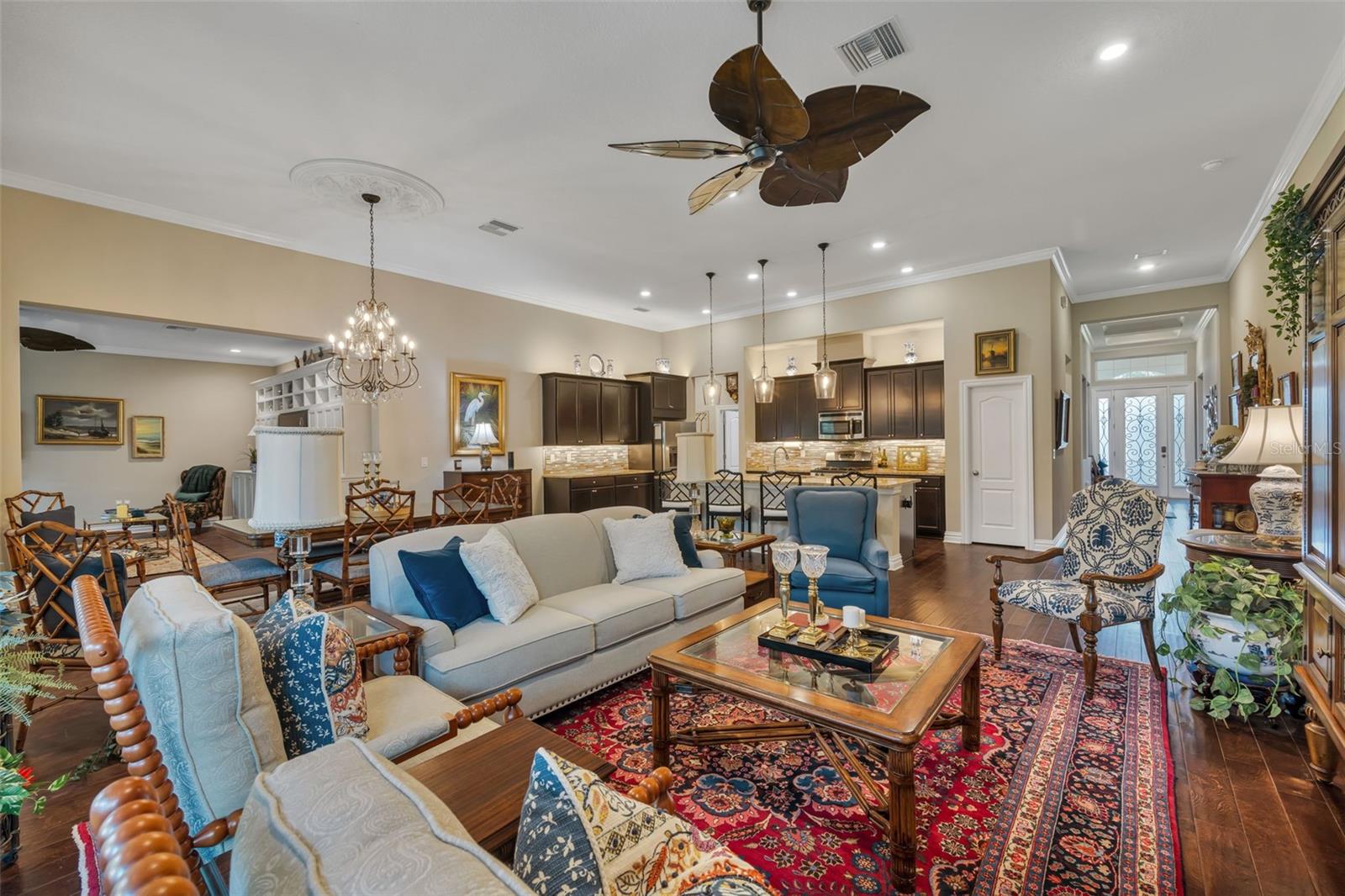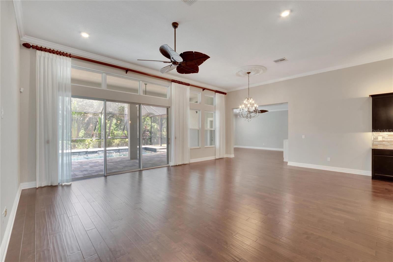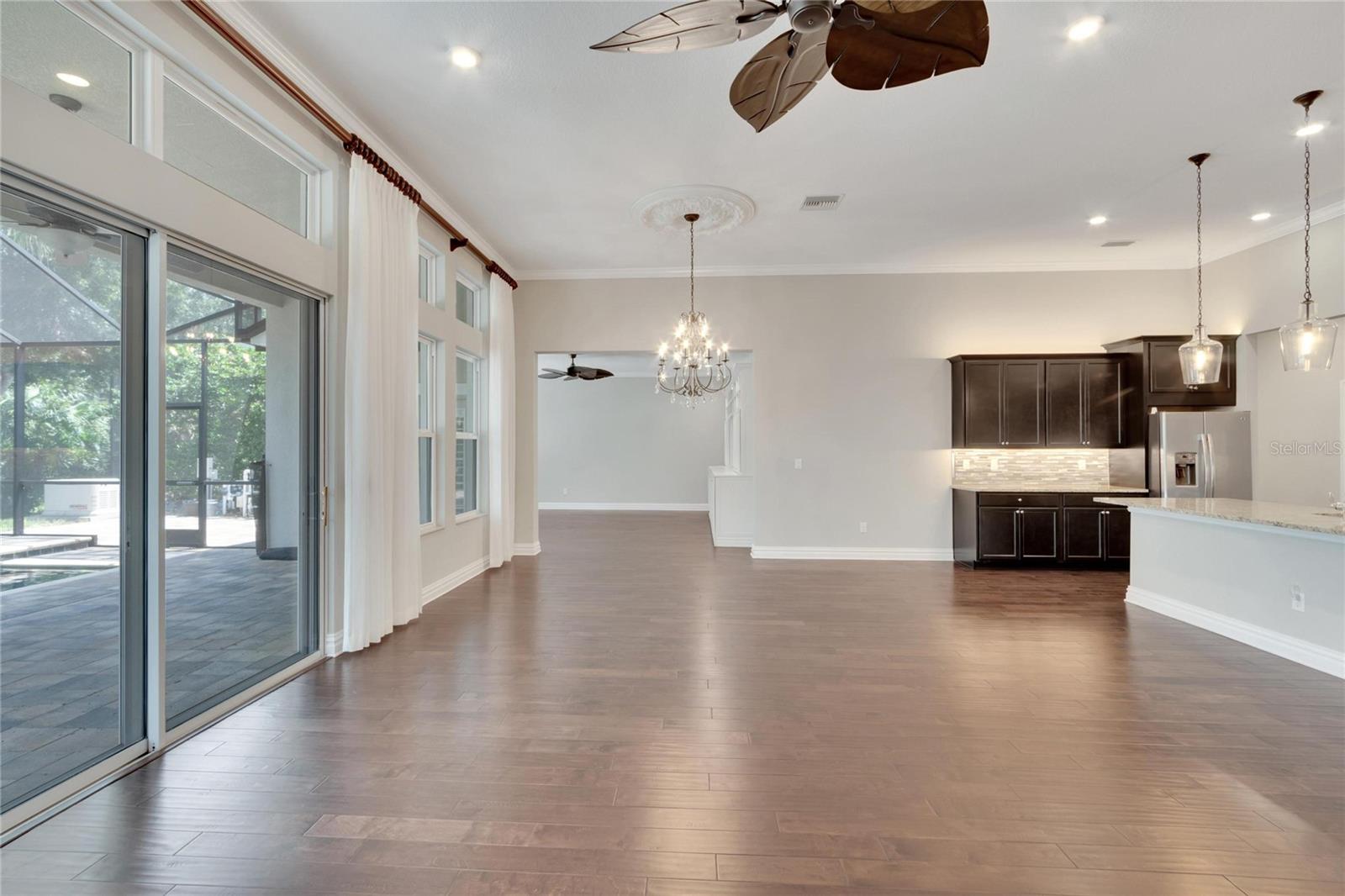 "Welcome Home! This meticulously mantained Cardel Florida Home in the desirable community of Waterset features 4 bedrooms, 3 bathrooms, a 3-car garage with parking for 6 cars, and a UVA protection screened-in heated saltwater black-bottom pool with a tropical landscaped privacy oasis. The home is equipped with a Generac System powered by natural gas to ensure uninterrupted utilities during power outages, storms, or emergencies. Other features include engineered hardwood flooring throughout the main living area, 12" high ceilings, crown molding, large built-in shelves, recessed lighting, Vortex Security System, floor-to-ceiling custom curtains with wooden 4" rod, wooden 3" plantation shutters on all windows, ceiling fans, tankless water heater, smart thermostats, new steel garbage disposal, a spacious office with attached extra room, an oversized laundry room, hurricane panels, gas appliances, and overhead garage storage. The kitchen boasts granite countertops, stainless steel appliances, microwave, a 5-burner gas cooktop, 42" upper cabinets with crown molding and under-cabinet lighting, a backsplash, an oversized island, and a walk-in corner pantry with built-in shelving. The primary bathroom features dual vanities, granite countertops, a walk-in shower with a rain showerhead, a garden tub, and a spacious walk-in closet with built-in shelving. A Jack and Jill bathroom seamlessly merges two bedrooms, providing a convenient and practical solution for families. The backyard oasis can be accessed through 15' glass sliders giving you a seamless indoor/outdoor living leading to a covered patio with pavers, the tropical landscaping includes matured Queen, Foxtail and Traveler palm trees. Other features include ceiling fans and a TV, which you can watch from the built-in seating bench in the pool. A garden allows you to grow veggies. The community of Waterset, offers multiple clubhouses, dog parks, fitness centers, 3 resort-style pools, playgrounds, splash pad, parks, walking trails, and an active lifestyle/activities program. Several schools, including charter school options, are within a 5-minute drive. The location between I-75, US Hwy 41 and the Crosstown provides convenient commuting options to Tampa, St. Pete, and Sarasota. Nearby amenities include the biggest newly built sports complex in the county, dog spa, grocery stores, restaurants, a YMCA, and a new town center with shops and restaurants currently under construction.