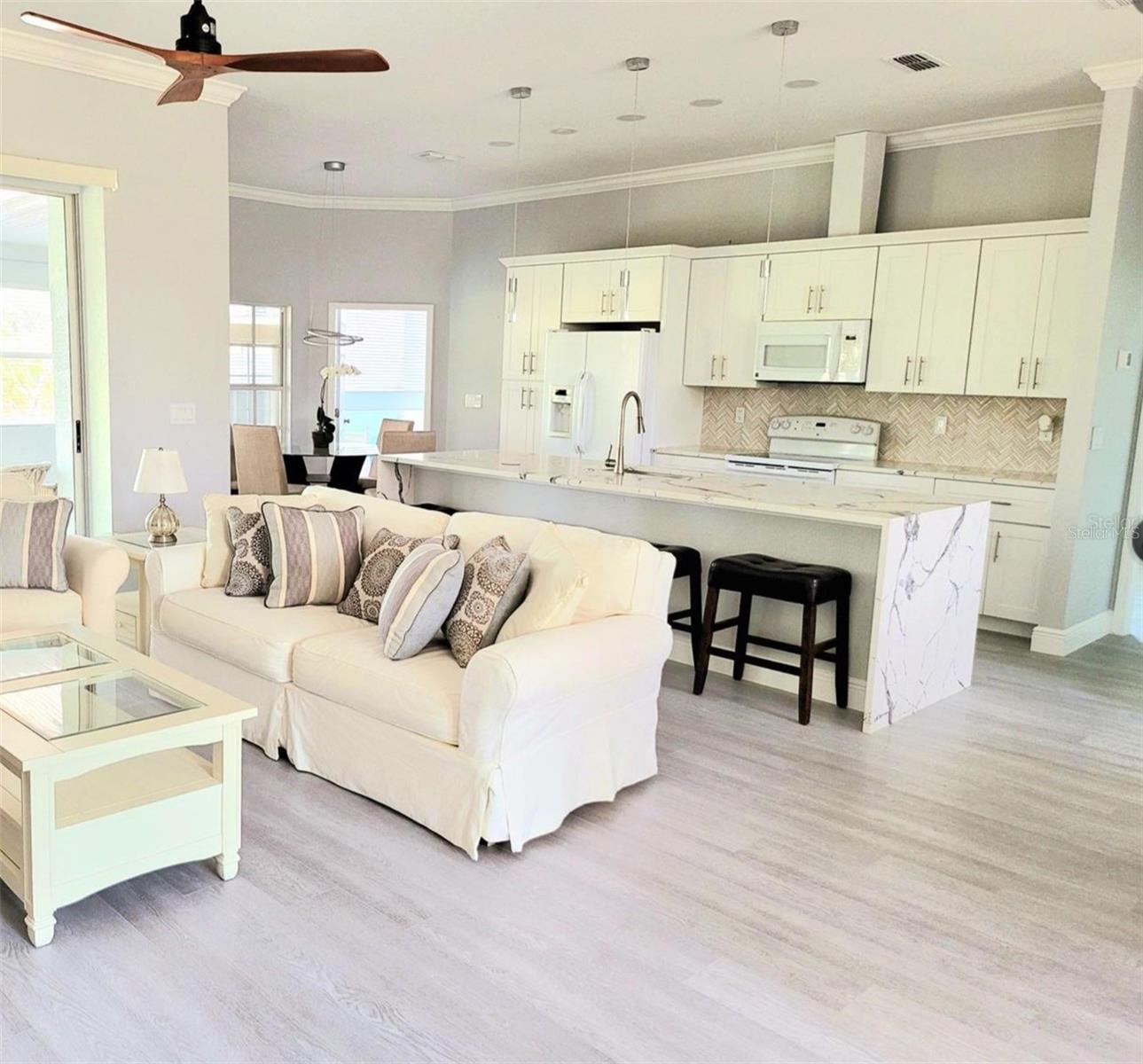 Enjoy endless summers in this gorgeous 4 bedroom 2 bath home in Apollo beach. This lovely home recently underwent an update which included interior and exterior paint. The kitchen and bathroom have beautiful quartz countertops and porcelain tiles throughout. Enjoy summers sunsets on your patio or an evening out by your very own firepit. This home comes fully furnished, don't miss out on the opportunity to make this your home sweet home.