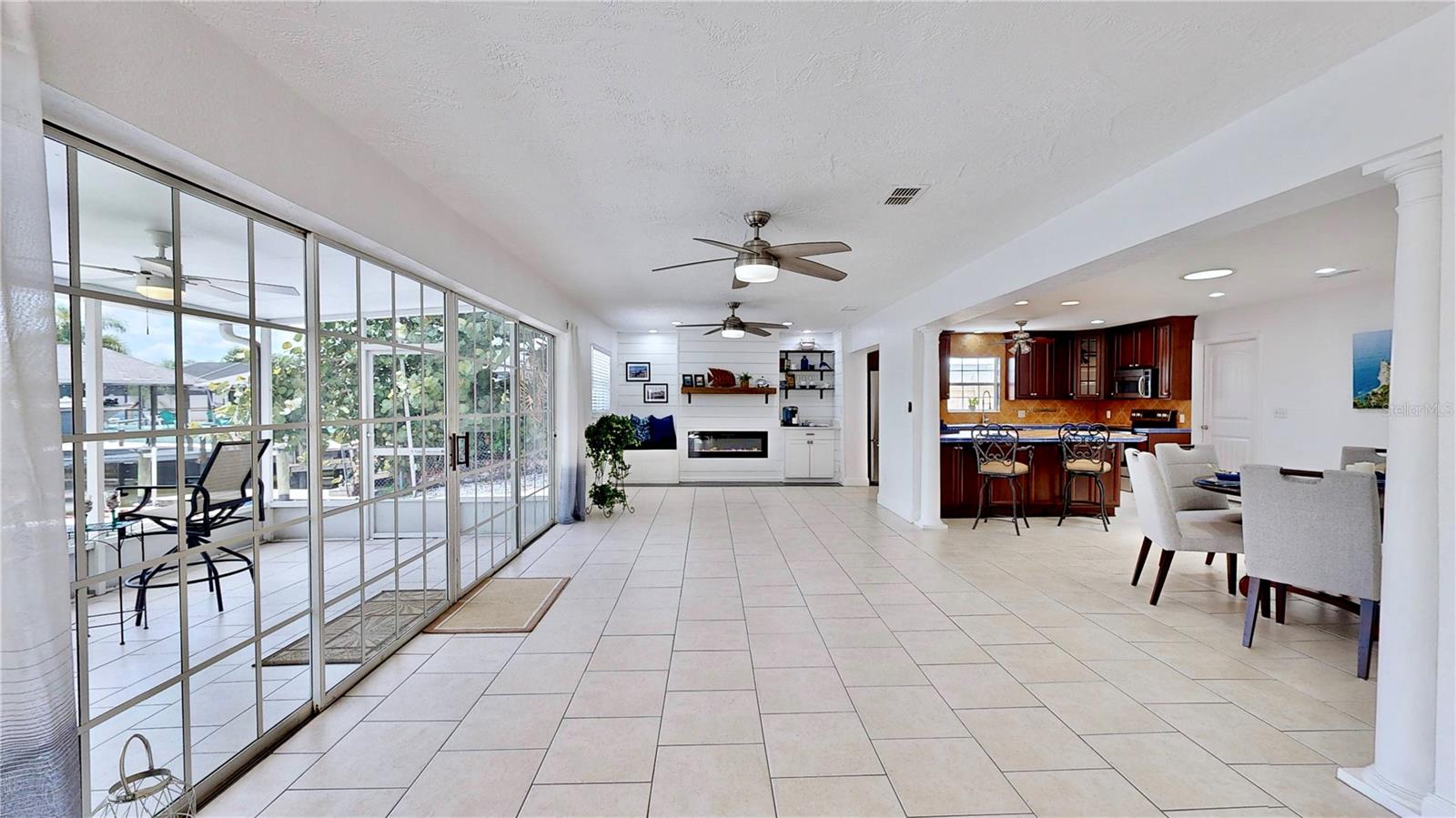 Nestled on the tranquil shores of Apollo Beach, this 3-bedroom, 2-bathroom waterfront home boasts just over 1,800 SQ. FT. of ample natural lighting, modern upgrades and finishes, and serene water views from every angle, including the master suite. Inside you'll be greeted by inviting open concept living area that seamlessly blend's comfort and style. The spacious living room features large sliding glass doors that frame the stunning water views, filling the space with natural light. The modern kitchen is equipped with stainless steel appliances, tile countertops and a breakfast bar, perfect for casual dining and entertaining. With direct access to the bay, enjoy a short boat ride to waterfront restaurants, perfect for water enthusiasts. With no rental restrictions, this property offers a lucrative investment opportunity. This home offers ample space for a new boat lift with plenty of parking for the RV and golf cart. This home also includes features like a two car garage, central air conditioning and proximity to local amenities including shops, restaurants, and recreational activities. This waterfront gem provides a unique blend of luxury, comfort, and nature making at the perfect place to call home. Don't miss this rare opportunity to own a piece of paradise. Roof is 6 years-old. Water heater was replaced July 2024. BOAT SLIP estimate available.
