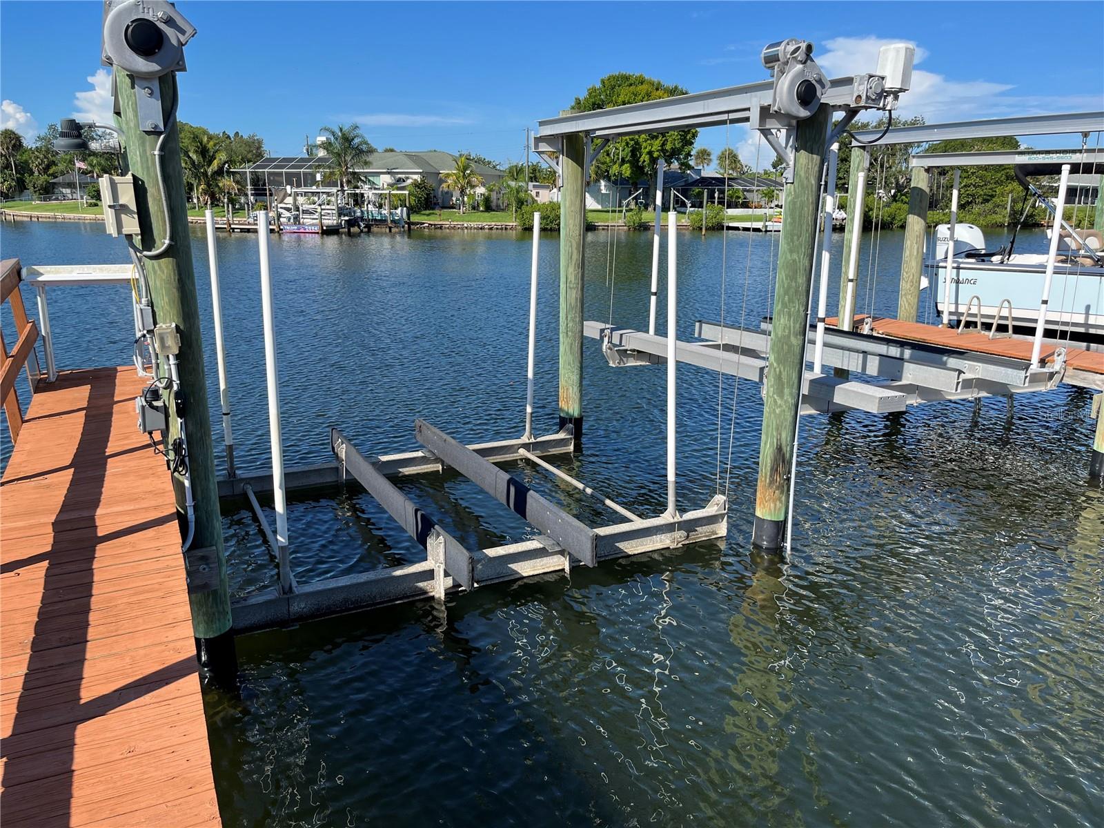 Live on the Intercoastal in Apollo Beach's Yardarm Community. Amazing water views from your 1st and 2nd floor lanais, plus this unit comes with a deeded boat slip and newer 10,000 lb lift. This well maintained 2 bedroom / 2.5 bath condo has intercoastal water views from almost every window. Bright open floor plan that features wood cabinets and granite counters, breakfast bar and dining area that overlooks the family room. This unit offers two living rooms which leaves an option for an office formal dining room. Upstairs you'll find the primary en-suite bedroom which includes a sitting area that leads to the 2nd floor lanai with those amazing water views. The second bedroom is also en-suite. Newer HVAC and water heater. Convenient to shopping and highways.