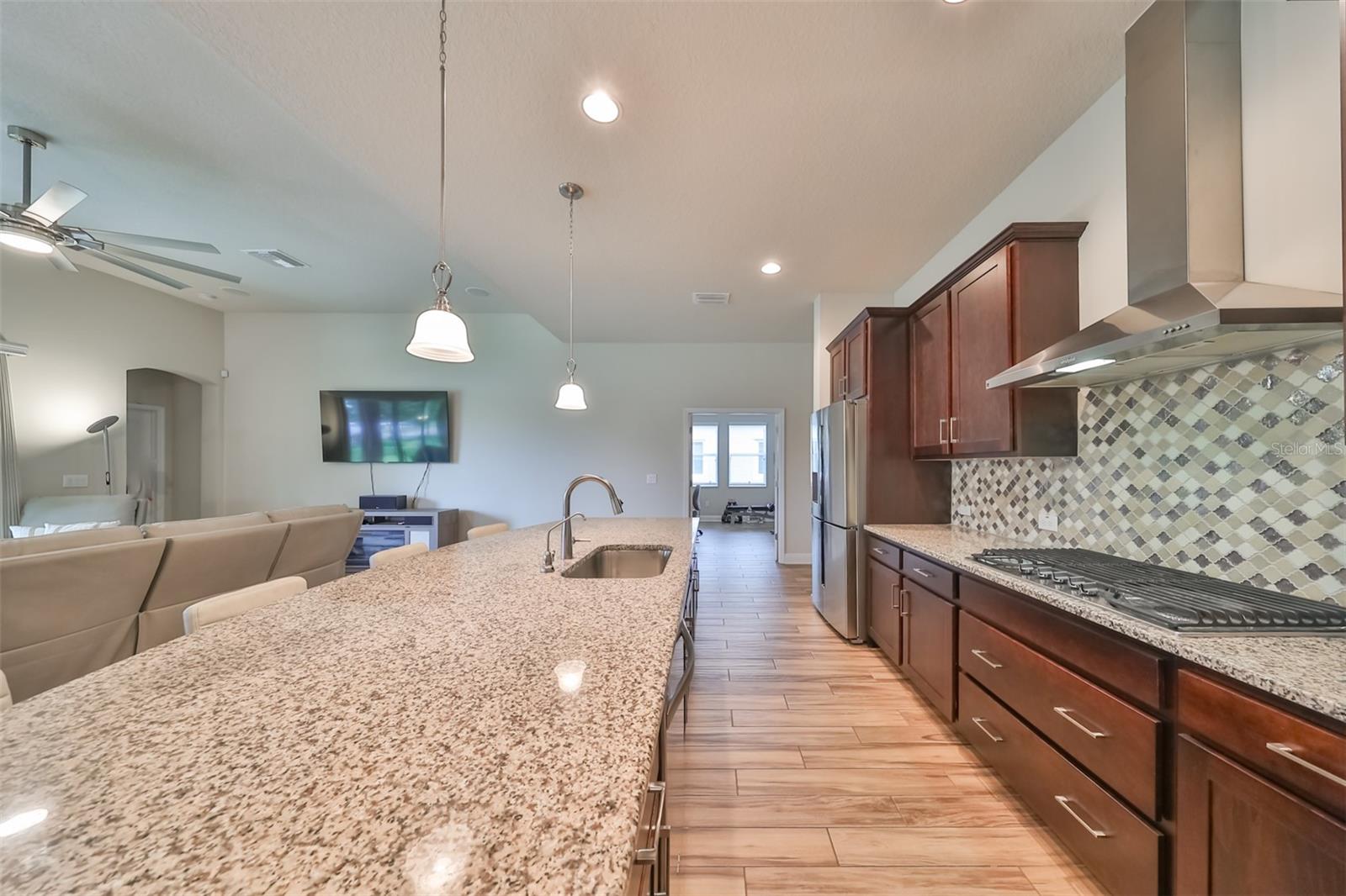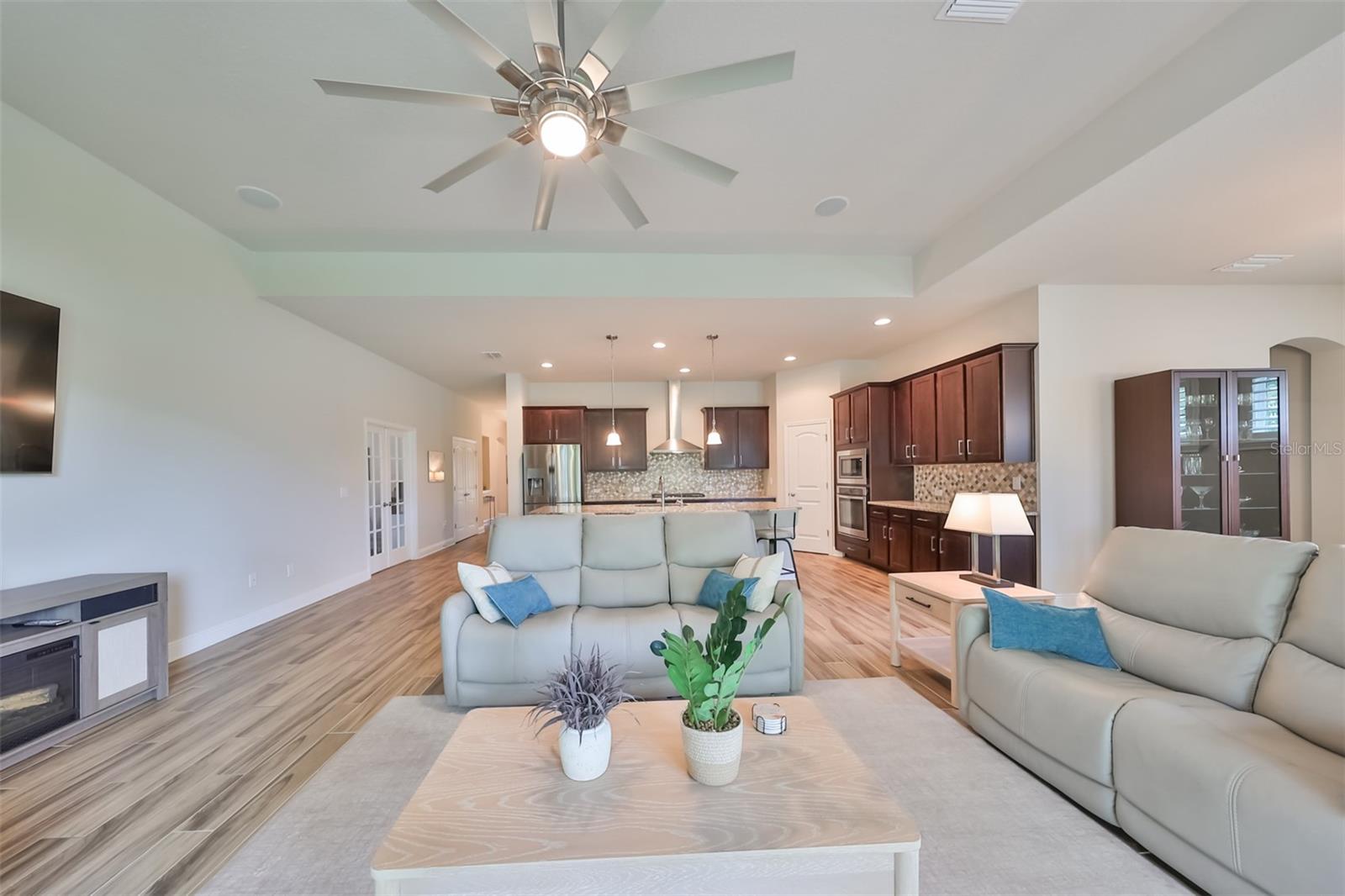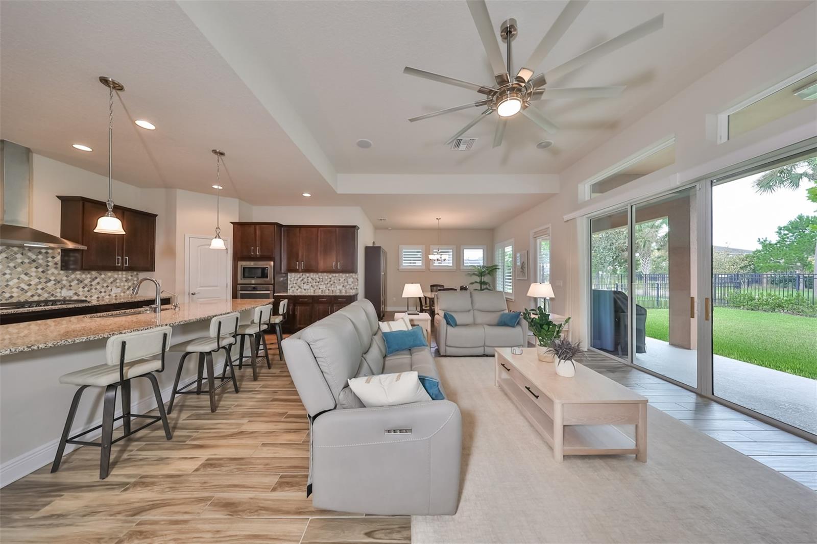 Come and walk through this move-in ready one-story home with lots of builder upgrades and a well-designed three-way split floor plan in the highly desirable Waterset community! This stunning 4-bedroom, 3-bathroom home also includes a separate den and boasts 2,545 sq ft of living space, a 3-car garage, and a fenced backyard with no rear neighbors. As you enter, you'll be greeted by wood-look tile floors that flow through the foyer and main living areas. The chef-inspired kitchen features granite countertops, a spacious island with breakfast bar seating for six, a designer backsplash, and top-tier stainless appliances, including a five-burner gas cooktop and a custom walk-in pantry. Two guest rooms share a beautifully appointed bathroom, while the den, located next to the kitchen, offers flexibility for work or relaxation. The great room is bright and airy, with large windows and sliding glass doors that open to the backyard. The owner's suite features a tray ceiling, a custom walk-in closet, and an en suite bathroom with double vanities and a large walk-in shower. A third guest suite, off the great room, offers its own custom walk-in closet and private en suite bath. No flood insurance required and low HOA fee. Located in the award-winning Waterset community, this home offers access to amazing amenities, including resort-style pools, state-of-the-art fitness centers, scenic walking trails, and a community clubhouse perfect for social gatherings. Waterset is known for its exceptional design, landscaping, and community engagement. The area is home to schools, a Publix grocery store, dining options, and more shopping and restaurants are on the way. Just five miles west, you'll find the Apollo Beach Nature Preserve, a public boat ramp, marinas, and waterfront restaurants. With easy access to major highways such as US41, Selmon Expressway, I-75, I-4, I-275, and close proximity to MacDill AFB, Downtown Tampa, Tampa International Airport, and Florida’s beautiful white sandy beaches, convenience is at your doorstep. Don't miss your chance to own this incredible home—call today to schedule a private tour!