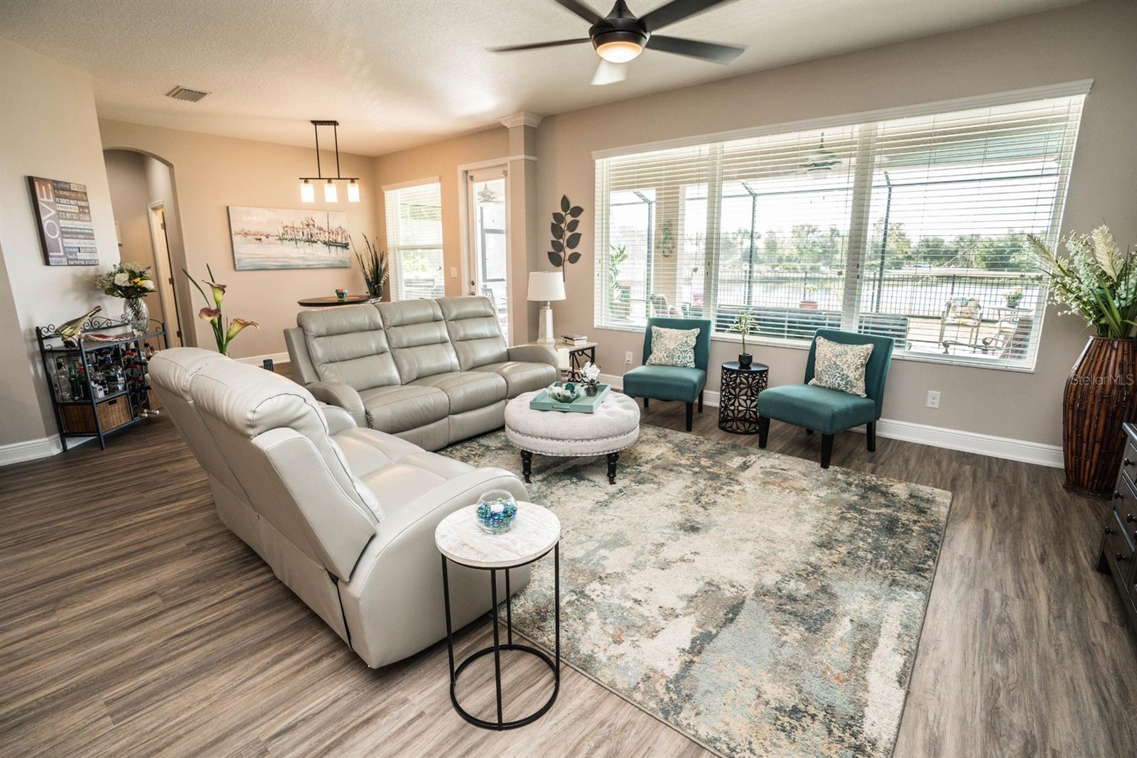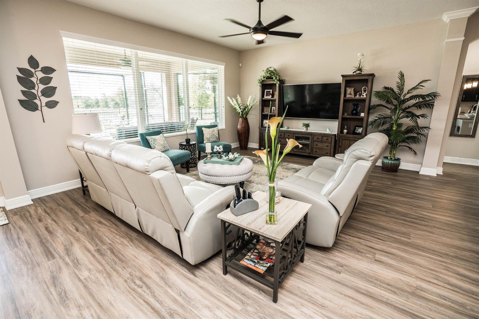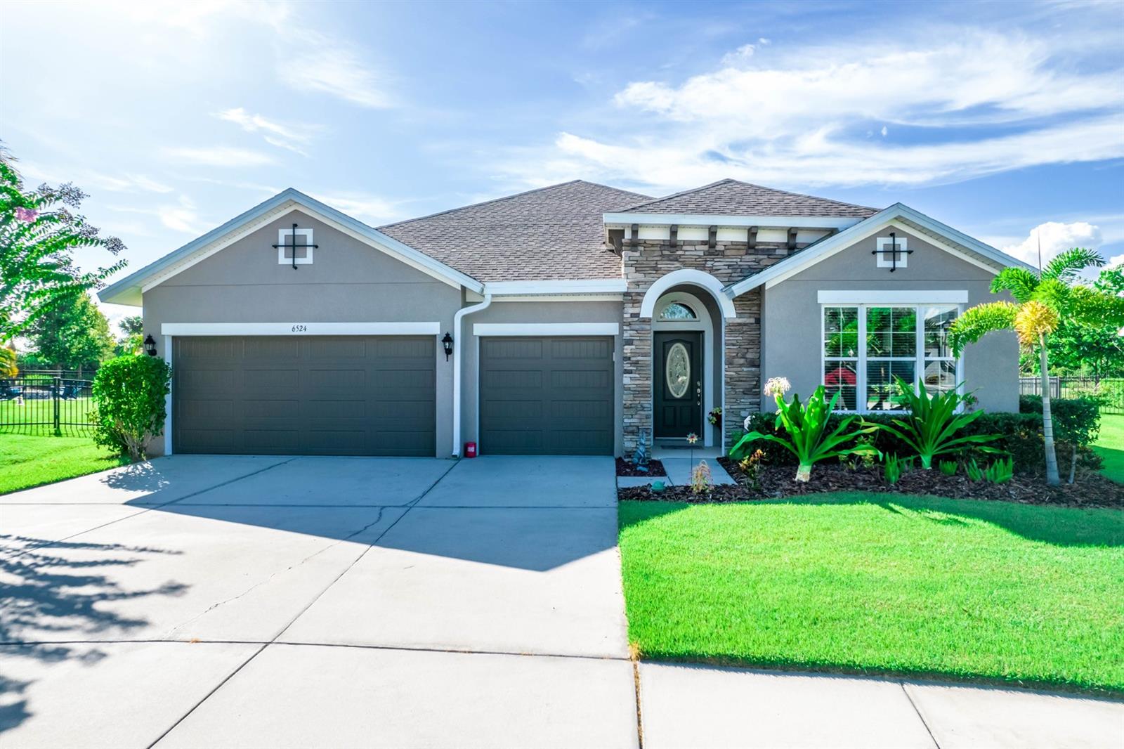 Buyer cancelled for no reason. Nestled in the prestigious Apollo Beach Waterset premier resort community, this stunning 4BR/3BA ranch home offers approximately 2,610 sq. ft. of luxurious living space with a picturesque waterfront lake view. The property features a split floor plan, perfect for families, with a retreat area between the secondary bedrooms and a unique twist on a mother-in-law suite, offering added flexibility and privacy. The community is home to four schools, over 20 miles of scenic trails, and more than seven lakes, providing ample opportunities to enjoy the breathtaking wildlife and natural beauty. The gourmet kitchen is a chef's dream, boasting granite countertops, a large island, 42-inch cabinets, and stainless steel appliances. The master suite is a private oasis with a tray ceiling, crown molding, a bay window overlooking the tranquil pond, and a spa-like bathroom with new granite countertops, a walk-in shower, a soaking tub, and a spacious walk-in closet. This home is loaded with upgrades, including a tankless water heater, water softener, extended paved lanai with a built-in outdoor kitchen and hot tub, new luxury vinyl plank flooring in all common areas, new carpet with waterproof padding in all bedrooms, new granite in the kitchen and baths, a new 5-burner gas convection stove/oven, new dishwasher, fresh paint inside and out (including the garage floor), new ceiling fans and light fixtures throughout, and a fenced-in backyard. Waterset is a master-planned community offering resort-style amenities, including walking trails, a dog park, multiple pools, indoor and outdoor fitness centers, and more. Conveniently located close to I-75, you're just 30 minutes from downtown Tampa, with restaurants, shopping, and a nearby hospital.