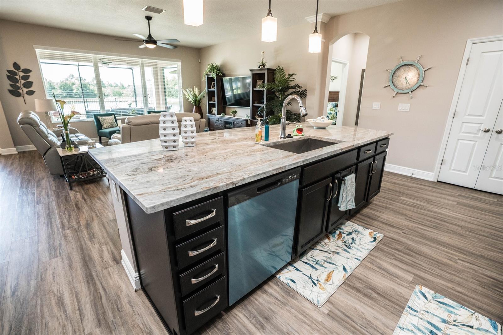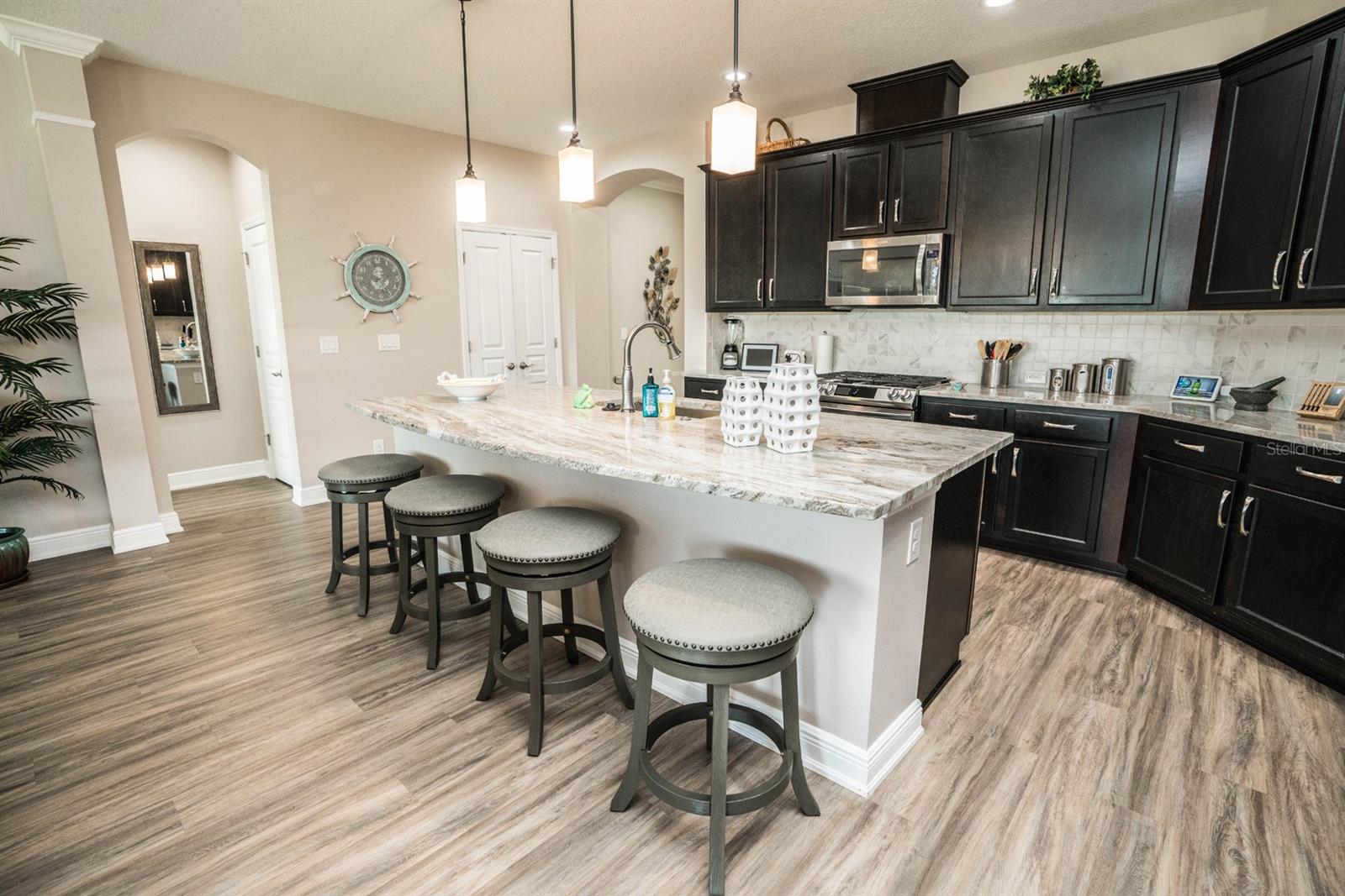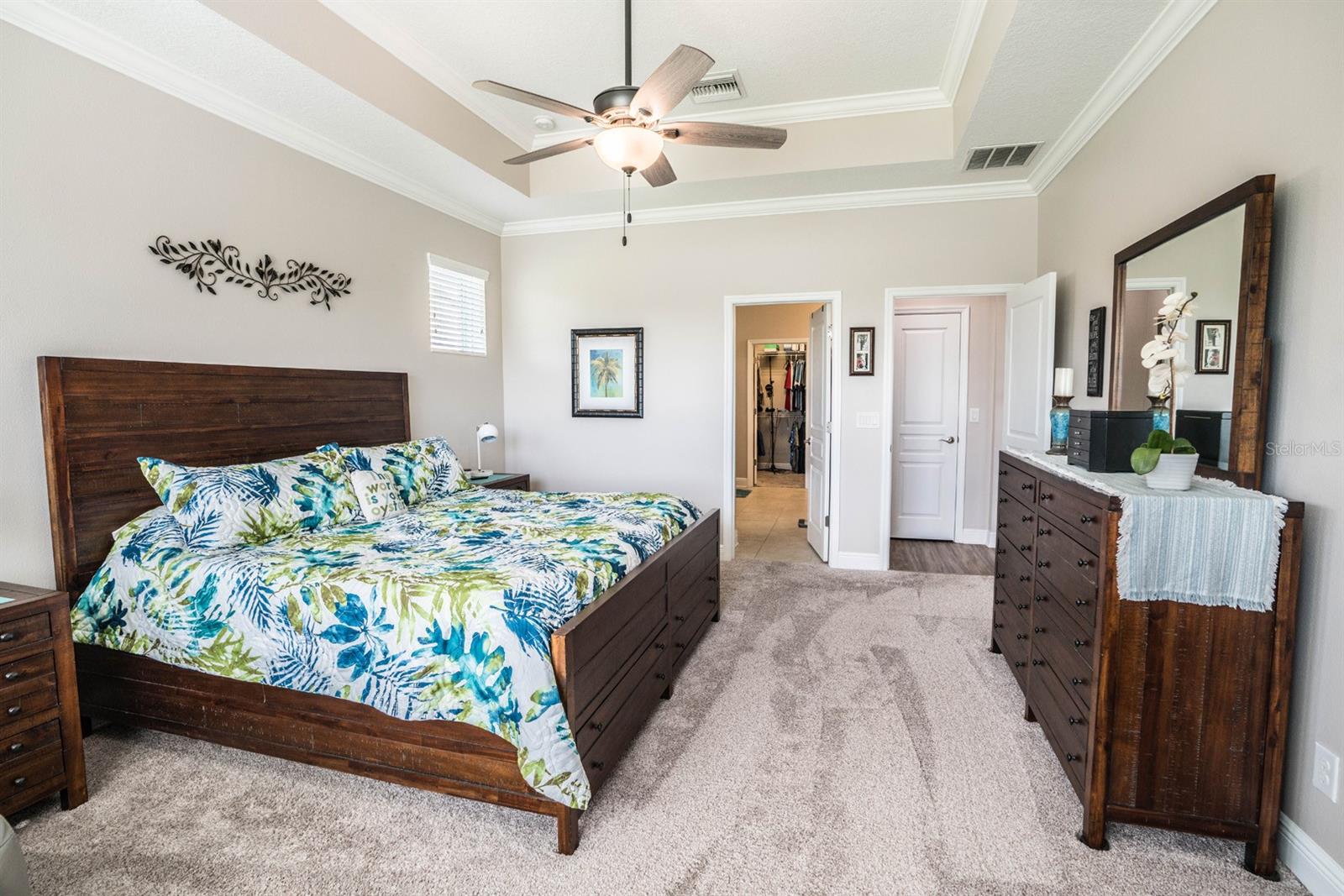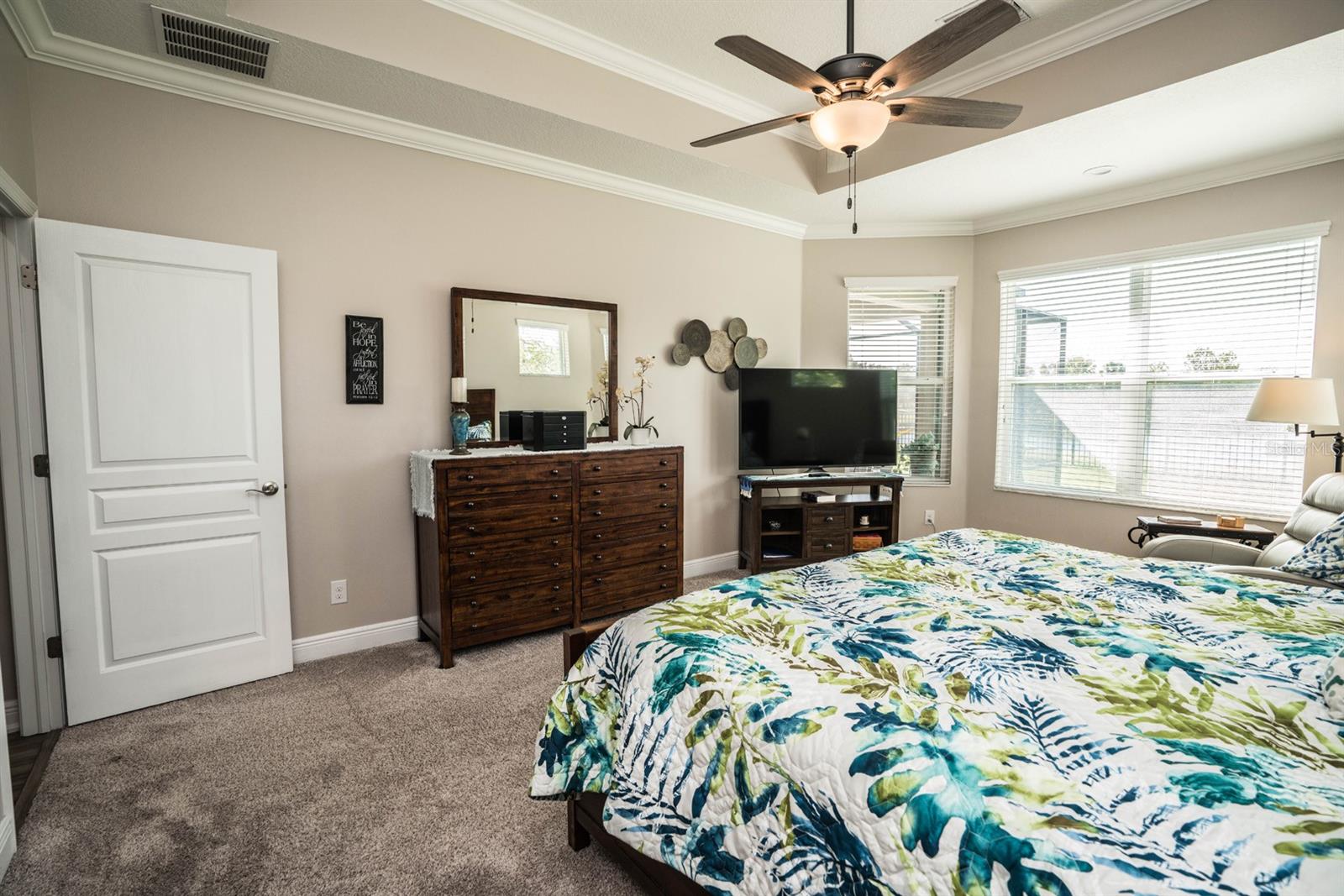 Buyer cancelled for no reason. Nestled in the prestigious Apollo Beach Waterset premier resort community, this stunning 4BR/3BA ranch home offers approximately 2,610 sq. ft. of luxurious living space with a picturesque waterfront lake view. The property features a split floor plan, perfect for families, with a retreat area between the secondary bedrooms and a unique twist on a mother-in-law suite, offering added flexibility and privacy. The community is home to four schools, over 20 miles of scenic trails, and more than seven lakes, providing ample opportunities to enjoy the breathtaking wildlife and natural beauty. The gourmet kitchen is a chef's dream, boasting granite countertops, a large island, 42-inch cabinets, and stainless steel appliances. The master suite is a private oasis with a tray ceiling, crown molding, a bay window overlooking the tranquil pond, and a spa-like bathroom with new granite countertops, a walk-in shower, a soaking tub, and a spacious walk-in closet. This home is loaded with upgrades, including a tankless water heater, water softener, extended paved lanai with a built-in outdoor kitchen and hot tub, new luxury vinyl plank flooring in all common areas, new carpet with waterproof padding in all bedrooms, new granite in the kitchen and baths, a new 5-burner gas convection stove/oven, new dishwasher, fresh paint inside and out (including the garage floor), new ceiling fans and light fixtures throughout, and a fenced-in backyard. Waterset is a master-planned community offering resort-style amenities, including walking trails, a dog park, multiple pools, indoor and outdoor fitness centers, and more. Conveniently located close to I-75, you're just 30 minutes from downtown Tampa, with restaurants, shopping, and a nearby hospital.