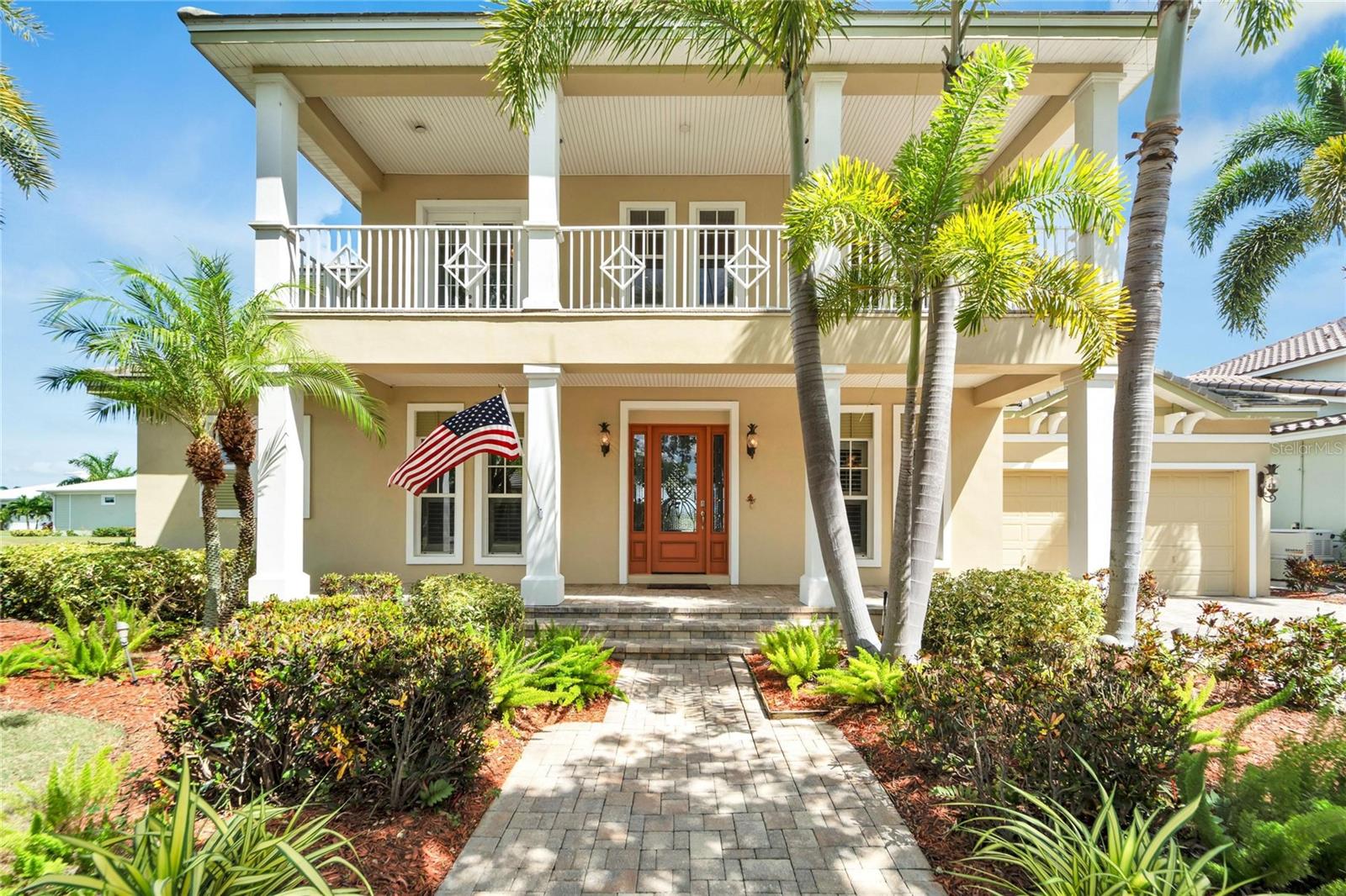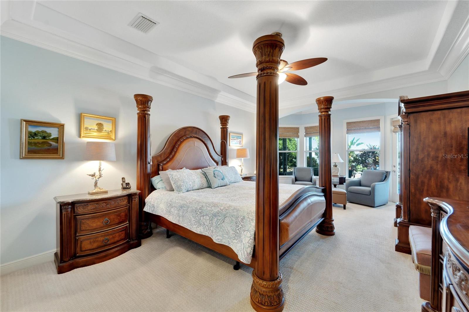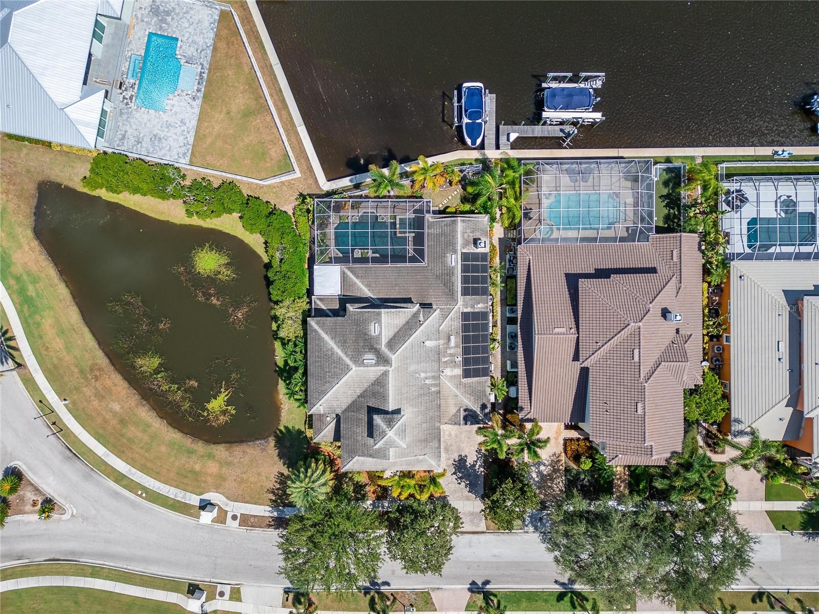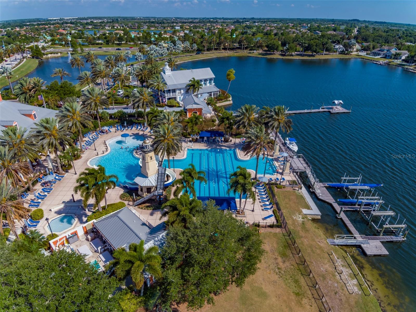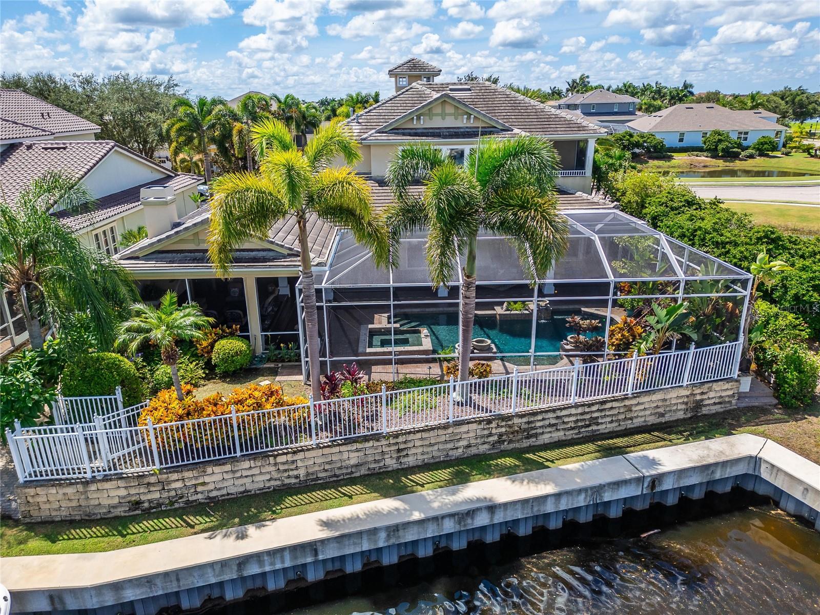 Seller willing to consider 12 month lease and owner partial finance. WOW!! EXCEPTIONAL OUTDOOR LIVING. One of the best waterfront views and largest lanais in MiraBay, a highly desired boating friendly gated community. Solar heated salt pool with spa inside a 2400SF screened enclosure with abundant shade. Lanai features: outdoor fireplace (wood or gas) with TV hookup, covered grill kitchen area with refrigerator, sink & storage, pool bathroom, plus a private boat dock with 10,000 pound lift. There is also an adjacent fresh-water pond. This 3-bedroom (easily convertible to 4BR) plus office, 5-bath Key West style custom home offers over 4000 square feet of luxury living: custom interior features, high end fixtures, premium stainless steel appliances, refrigerated wine room, tile roof, and automatic emergency generator. Mirabay is a master planned community built up to higher elevations than other nearby neighborhoods. Mirabay remained high and dry during hurricane Helene. Enter through the beautiful custom door where you will be greeted by a versatile flexible office space. Adjacent to this area is a formal dining room, featuring custom wood working. The spacious great room, with its soaring 20+ foot vaulted ceilings and entertainment wall, provides views of the pool and waterway extending down the entire length of the canal. 2 sets of pocketing exterior slider doors bring the outside in. The large open kitchen is designed to impress with high end appliances: double Wolf ovens, Wolf gas range and warming drawer, Sub Zero fridge, drawer microwave, wine fridge, and standalone ice maker. Custom temperature controlled wine room with custom racks supports over 1,000 bottle collection. Luxurious Primary Suite: The private first floor primary suite features large windows overlooking the pool and water view, His and Hers spacious walk-in closets, ensuite bathroom with custom tile, a Jacuzzi garden tub, a huge walk-in shower with multiple heads, and dual granite vanities. Flexible Second Floor: upstairs, a loft overlooks the great room and can be transformed into a playroom, game room, or entertainment area. The owner has architectural plans to add a 4th bedroom in part of this space for less than $10,000. Two addition bedrooms (one ensuite) share a large balcony with charming views of the front of the home. Community Amenities Galore: Mirabay offers resort-style amenities, including a fabulous clubhouse pool with food and bar service, tennis courts, basketball courts, pickleball courts, a 24-hour gym, a boat launch, a canoe launch, and much more. With two Publix grocery stores nearby, as well as popular restaurants, golf courses, and other local attractions, you'll love the convenience and lifestyle this community provides. Your Dream Home Awaits: Don't miss this rare opportunity to own a one-of-a-kind waterfront home in Mirabay! Schedule your showing today and experience the best of coastal living!