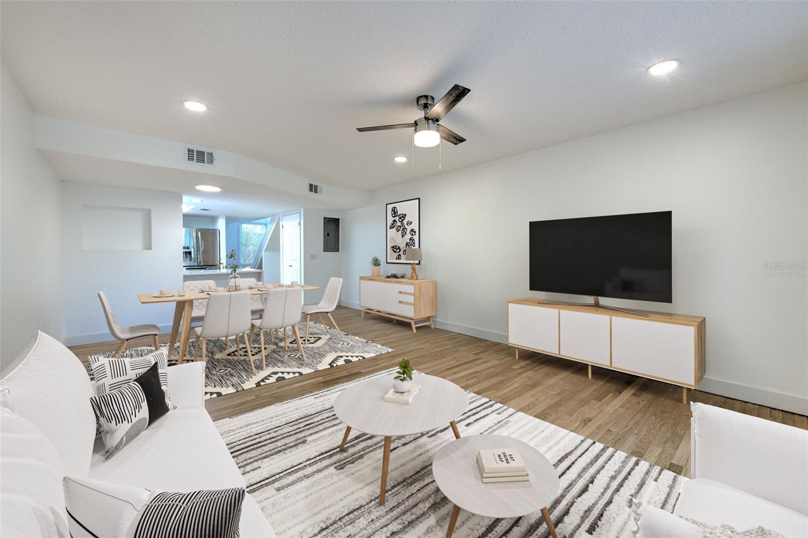 One or more photo(s) has been virtually staged. Welcome to this beautifully renovated condo in the waterfront community of Anchor Point, where you can keep your boat on their available boat slips and sail down the Tampa Bay! Updates include brand-new plumbing, windows, kitchen, bathrooms, paint, light fixtures, ceilings, carpet, and more. As you enter the home, you are greeted by a proper foyer and a downstairs half bathroom, convenient for guests. The spacious kitchen boasts an impressive waterfall countertop and bright cabinets, overlooking the large open-concept great room. The screened-in back patio is the perfect spot to enjoy your morning coffee and provides easy access to the community pool. Upstairs, the primary bedroom offers a screened-in balcony as well as a modern en-suite bathroom with a walk-in shower. The upstairs secondary bedroom features abundant natural lighting and the upstairs full hallway bathroom includes a tub for convenience. The laundry closet is located in the upstairs hallway and has washer and dryer connections. This charming waterfront community offers access to the Tampa Bay, boat slips, meandering sidewalks, a community pool, a clubhouse, and abundant guest parking. Located just 0.4 miles from Circles Waterfront Restaurant, 1.6 miles from Apollo Beach Nature Preserve, and 1.8 miles from Apollo Beach Park, this home offers proximity to the area's best spots.
