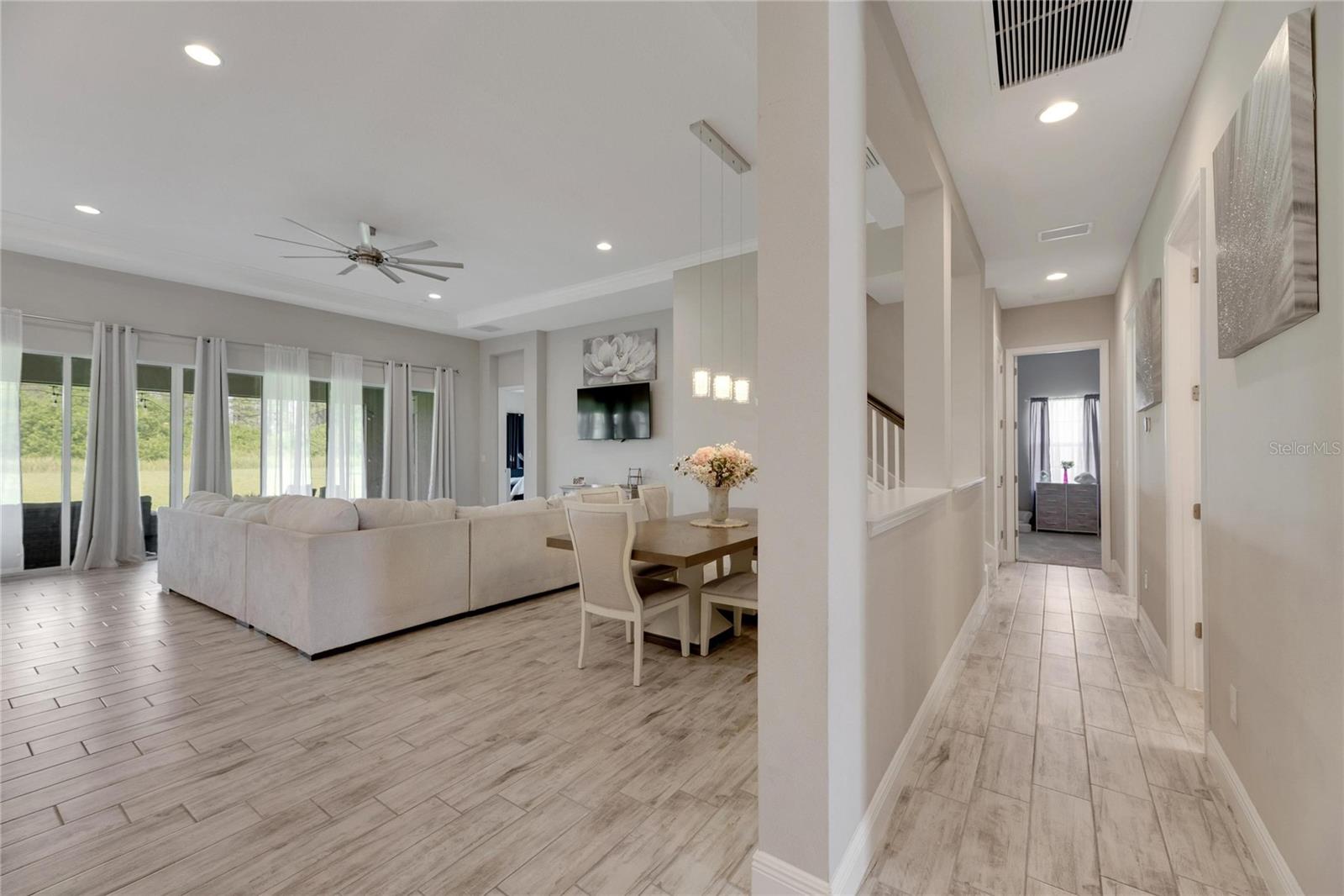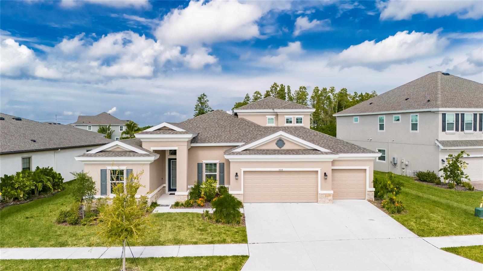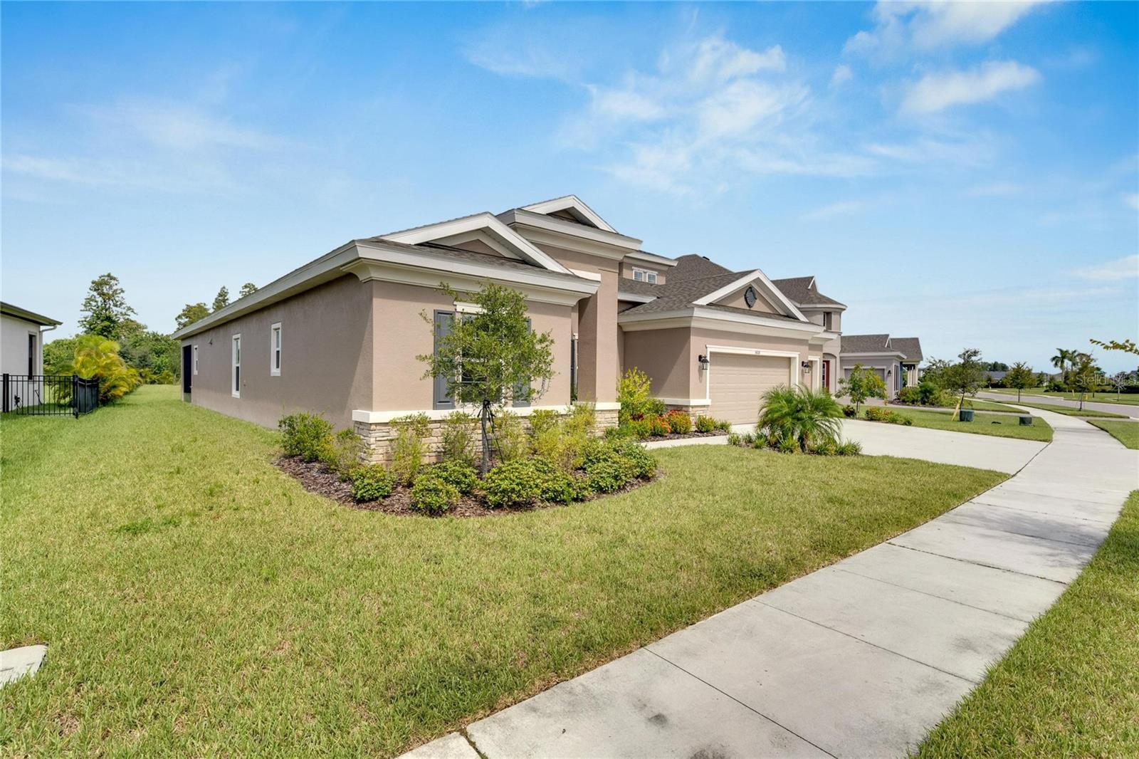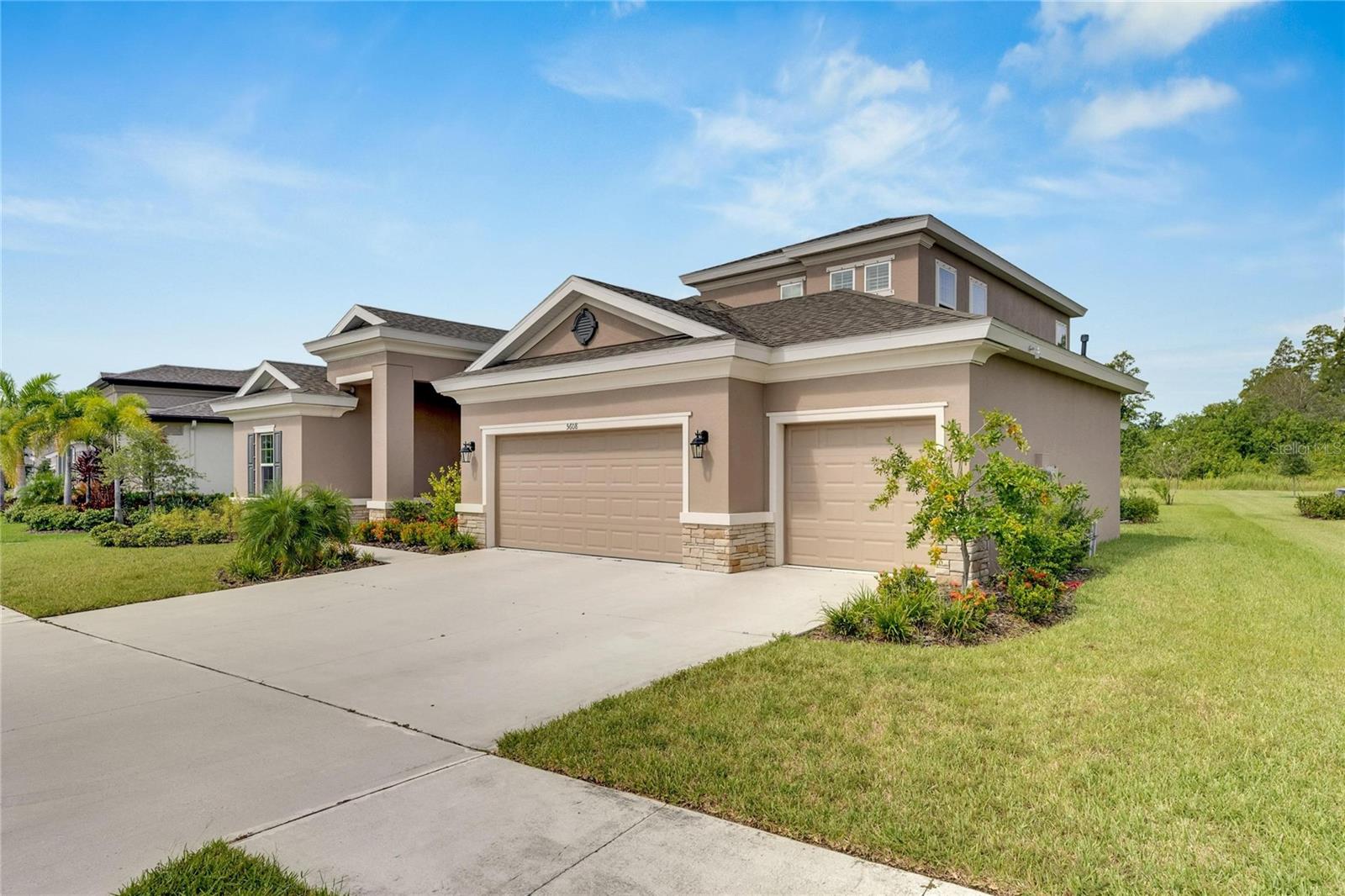Welcome to 5608 Madrigal Way, located in the highly desired Waterset community of Apollo Beach, Florida! This impressive Biscayne Grand floorplan home offers 5 bedrooms and 4 bathrooms across 3,347 sq ft on the largest oversized, extra-deep lot currently on the Market. You will love the peaceful conservation view for added privacy. With many homes affected by the devastation of Hurricane Helene, unlike many neighborhoods that faced flooding, the Waterset Community is built at elevated heights, and all homes have remained high and dry. With its strategic design and flood-resilient location, Waterset continues to provide peace of mind and protection, making it a standout choice for homeowners. As you enter, you'll immediately notice the 12-foot ceilings and an open, spacious layout perfect for everyday living and entertaining. The private office, featuring French glass double doors, is ideal for working from home or getting creative. The well-designed gourmet kitchen includes built-in appliances, quartz countertops, 42” cabinets, and stylish lighting, all set to inspire your inner chef. The convenient coffee bar adds an extra touch for those morning starts or afternoon breaks, while the connected dining and family room areas are great for hosting friends and family. The owner’s suite on the first floor is a true retreat, with two large walk-in closets and an en-suite bathroom featuring double vanities, a garden tub, and a walk-in shower. Step right out onto the covered, screened lanai to enjoy some fresh air or an evening with your favorite drink. Upstairs, a loft area provides extra living space, perfect for a game room, media room, or additional relaxation space. A private guest bedroom with a full bath is also on the second floor, making it great for visitors. The home is designed with practicality in mind, featuring a large laundry room with storage and a built-in sink, plus a 3-car garage and a spacious driveway for all your parking needs. Built in 2022 by Homes by WestBay, this home combines modern design with a welcoming feel. With features like Sonoma Stone cabinets, Ethereal Quartz countertops, and Traveler wood tile flooring, this home offers a balanced and comfortable style throughout. The Waterset community adds even more value to this home with its resort-style amenities, including three community pools—one of which is just a short walk from your front door! Plus, you'll be close to the community’s brand-new 20-acre outdoor recreation facility, providing plenty of options for active living. Additional amenities include two fitness centers, a splash pad, a dog park, and scenic trails for your morning or evening exercise. Waterset is conveniently located near I-75, with easy access to Tampa, St. Pete, Orlando, Sarasota, and MacDill Air Force Base, as well as local beaches, shops, and restaurants. 5608 Madrigal Way offers the perfect mix of location, space, and community amenities. Don't miss your chance to enjoy the best of Florida living in Waterset! Come see it for yourself today!