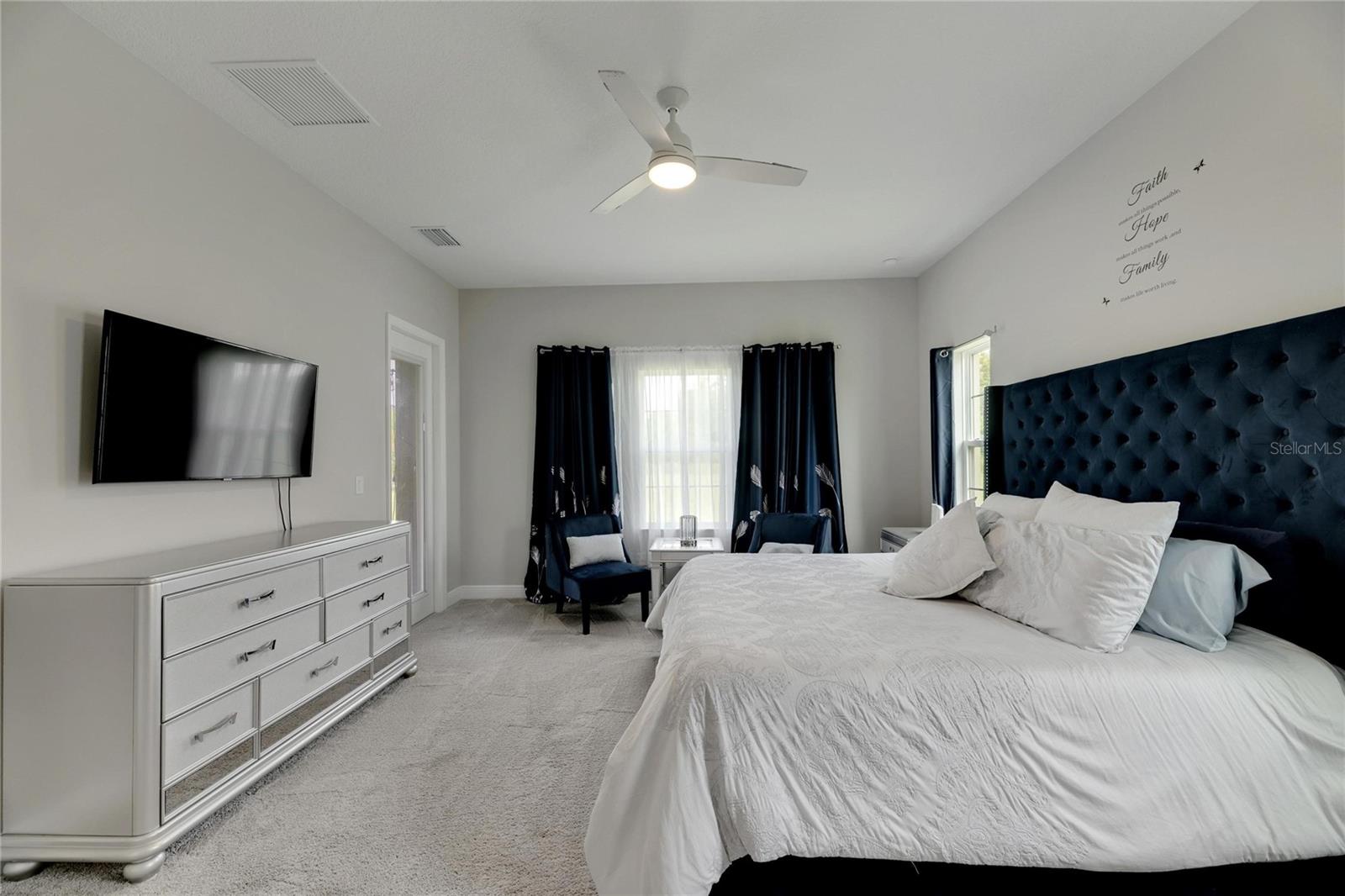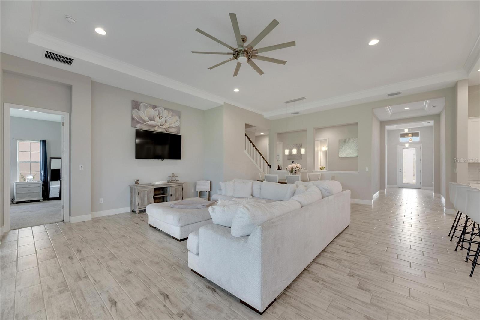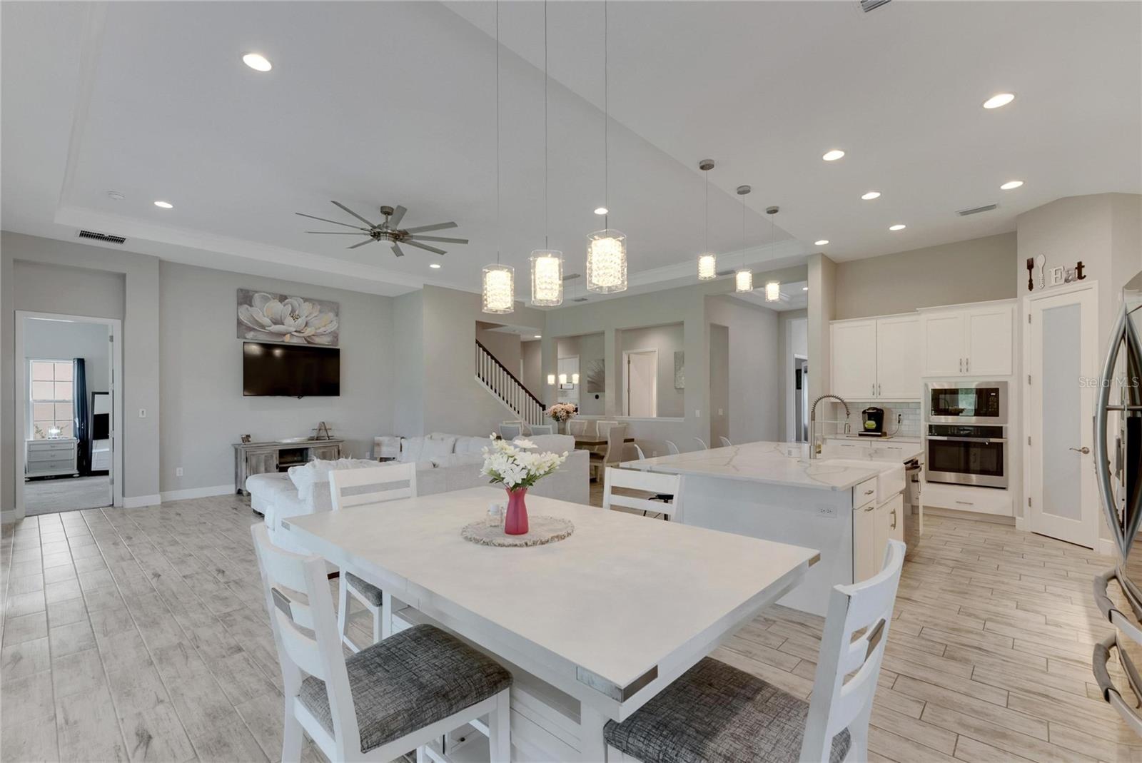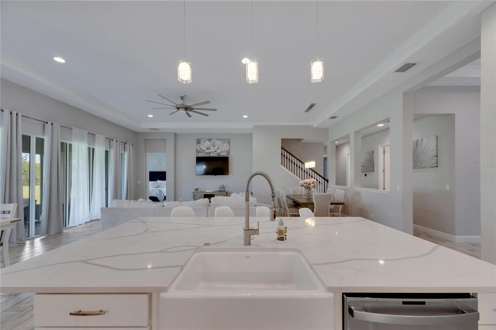 Welcome to 5608 Madrigal Way, located in the highly desired Waterset community of Apollo Beach, Florida! This impressive Biscayne Grand floorplan home offers 5 bedrooms and 4 bathrooms across 3,347 sq ft on the largest oversized, extra-deep lot currently on the Market. You will love the peaceful conservation view for added privacy. With many homes affected by the devastation of Hurricane Helene, unlike many neighborhoods that faced flooding, the Waterset Community is built at elevated heights, and all homes have remained high and dry. With its strategic design and flood-resilient location, Waterset continues to provide peace of mind and protection, making it a standout choice for homeowners. As you enter, you'll immediately notice the 12-foot ceilings and an open, spacious layout perfect for everyday living and entertaining. The private office, featuring French glass double doors, is ideal for working from home or getting creative. The well-designed gourmet kitchen includes built-in appliances, quartz countertops, 42” cabinets, and stylish lighting, all set to inspire your inner chef. The convenient coffee bar adds an extra touch for those morning starts or afternoon breaks, while the connected dining and family room areas are great for hosting friends and family. The owner’s suite on the first floor is a true retreat, with two large walk-in closets and an en-suite bathroom featuring double vanities, a garden tub, and a walk-in shower. Step right out onto the covered, screened lanai to enjoy some fresh air or an evening with your favorite drink. Upstairs, a loft area provides extra living space, perfect for a game room, media room, or additional relaxation space. A private guest bedroom with a full bath is also on the second floor, making it great for visitors. The home is designed with practicality in mind, featuring a large laundry room with storage and a built-in sink, plus a 3-car garage and a spacious driveway for all your parking needs. Built in 2022 by Homes by WestBay, this home combines modern design with a welcoming feel. With features like Sonoma Stone cabinets, Ethereal Quartz countertops, and Traveler wood tile flooring, this home offers a balanced and comfortable style throughout. The Waterset community adds even more value to this home with its resort-style amenities, including three community pools—one of which is just a short walk from your front door! Plus, you'll be close to the community’s brand-new 20-acre outdoor recreation facility, providing plenty of options for active living. Additional amenities include two fitness centers, a splash pad, a dog park, and scenic trails for your morning or evening exercise. Waterset is conveniently located near I-75, with easy access to Tampa, St. Pete, Orlando, Sarasota, and MacDill Air Force Base, as well as local beaches, shops, and restaurants. 5608 Madrigal Way offers the perfect mix of location, space, and community amenities. Don't miss your chance to enjoy the best of Florida living in Waterset! Come see it for yourself today!