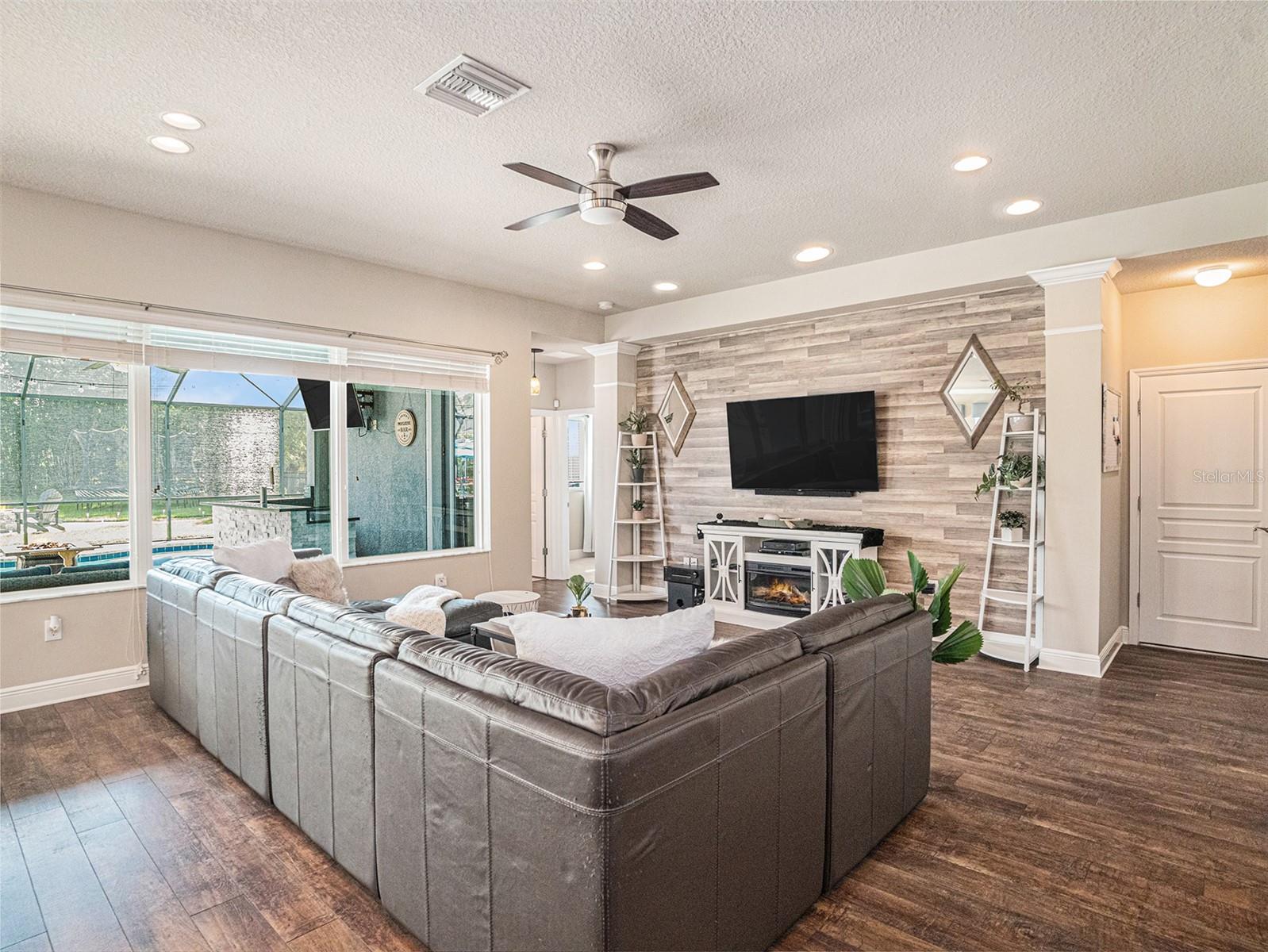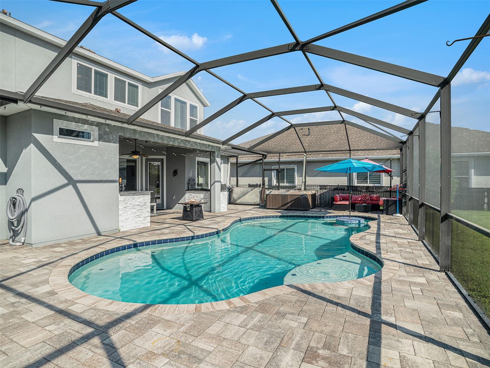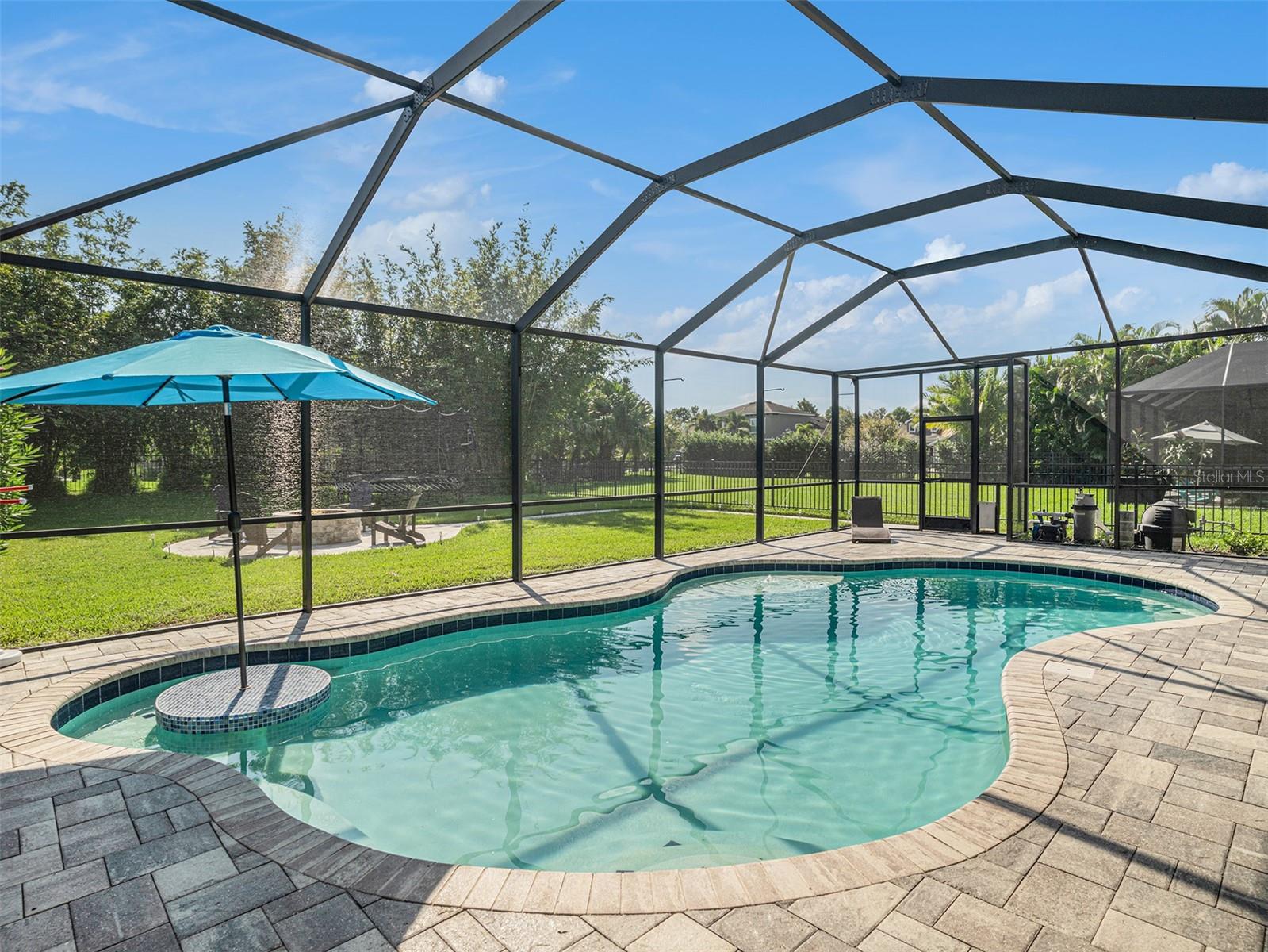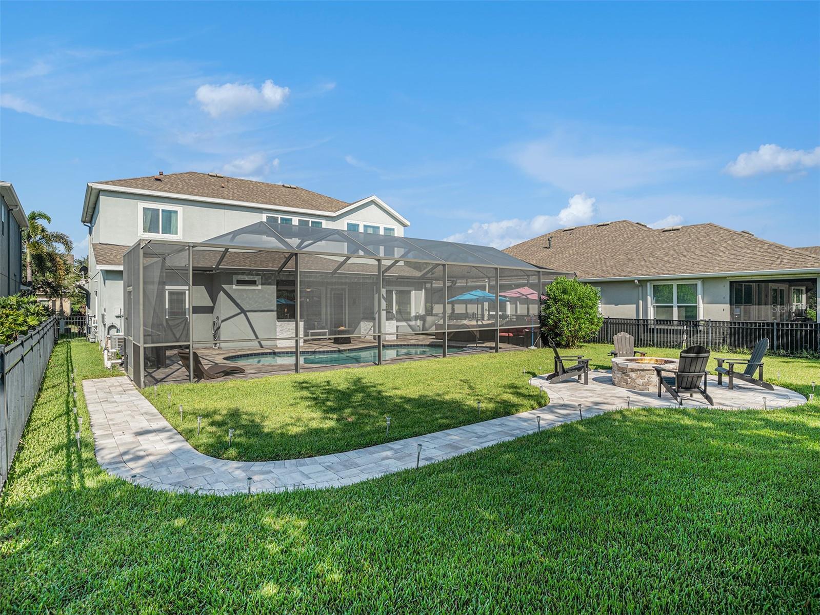 Welcome to 6617 Park Strand Drive located in one of the most sought-after areas in the WATERSET community. Crafted with exceptional quality by DAVID WEEKLY HOMES, this impressive residence rests on an OVERSIZED LOT, spans over 3,100 square feet and offers 4 BEDROOMS, 3.5 BATHROOMS, a DEDICATED OFFICE/DEN, a SPACIOUS GREAT ROOM, a HUGE LOFT, EXPANDED BRICK-PAVER DRIVEWAY (2022) and an EXPANSIVE 3-CAR GARAGE with TANDEM SPACE. The home has eye-catching curb appeal and sits adjacent to a BEAUTIFUL COMMUNITY PARK. Step through the GRAND 21’ HIGH ENTRYWAY with elegant light fixtures into a bright and airy den/office, thanks to the LARGE COVERED FRONT PORCH and French doors that enhance the space with NATURAL LIGHT. The OPEN-CONCEPT great room flows seamlessly into a GOURMET KITCHEN, featuring STAINLESS-STEEL APPLIANCES, NEW REFRIGERATOR, a LARGE GRANITE COUNTERTOP ISLAND with storage, a DESIGNATED DINING AREA, and a MASSIVE BUTLER’S PANTRY. This area opens up to a FULLY ENCLOSED LANAI, a SALTWATER HEATED pool with IN-POOL TABLE, an ABOVE GROUND SPA, and is complemented by a NEW (2024) OUTDOOR KITCHEN & BAR with KEGERATOR & FLATTOP GRILL. BRICK PAVER pool deck was resealed in 2022. The EXPANSIVE BACKYARD is FULLY FENCED and comes equipped with a BRICK PAVER walkway, above ground FIRE PIT (2022). The backyard is completed by MATURE BAMBOO LANDSCAPING which adds some extra privacy and ambiance. The first floor includes a MUDROOM, located adjacent to the garage entrance, a guest bedroom & bathroom, with access to the POOL BATH, and a half bathroom located under the stairs. The remaining bedrooms are located on the second floor along with the LAUNDRY ROOM with OVERSIZED SAMSUNG WASHER & DRYER. The EXPANSIVE PRIMARY SUITE features soaring CATHEDRAL CEILINGS with a FLOATING BEAM, PLANTATION SHUTTERS, and a CUSTOM BARN DOOR. The LUXURIOUS EN-SUITE BATH comes equipped, with DUAL VANITIES, a “SUPER-SHOWER”, WATER CLOSET, and leads to an OVERSIZED WALK-IN CLOSET. Bedrooms 2 and 3 are spacious and share a full bath, while the loft area features a 10' TRAY CEILING perfect as a second LIVING ROOM, GAME ROOM, or MEDIA ROOM. Upgrades include NEW (2024) HVAC for the 2nd floor with UV sanitation light. SURROUND SOUND SYSTEM in loft and living room (2022). Wiring for TVs have been routed behind the walls in all rooms (2022). The home also features NEW LUXURY VINYL PLANK OAK FINISH (2024) flooring on the stairs, loft, and second-floor hallways. The exterior of the home features a NEBULA LED LIGHTING SYSTEM (2022), providing everyday ambiance and customizable settings for holidays and special occasions. Located in one of the most sought-after areas of the WATERSET community, you’ll enjoy access to numerous PARKS, POOLS, and TOP-NOTCH AMENITIES, including TWO HEATED COMMUNITY POOLS (one with RESORT-STYLE SLIDES), TWO FITNESS CENTERS, CLUBHOUSES, a CAFÉ, a DOG PARK, and a SPLASH PAD. Schedule your personal tour of this magnificent property today!