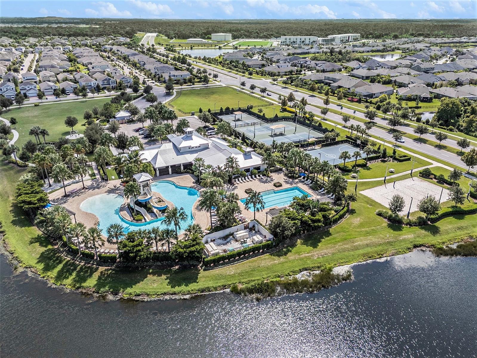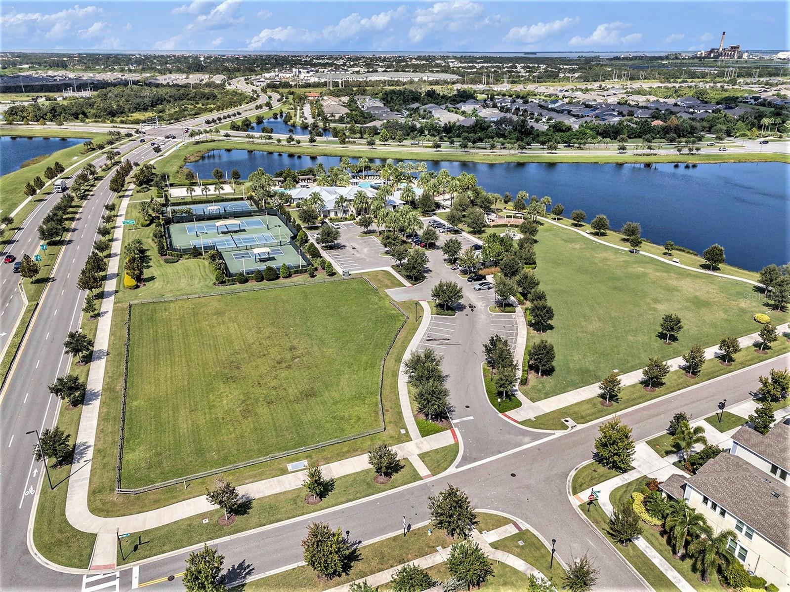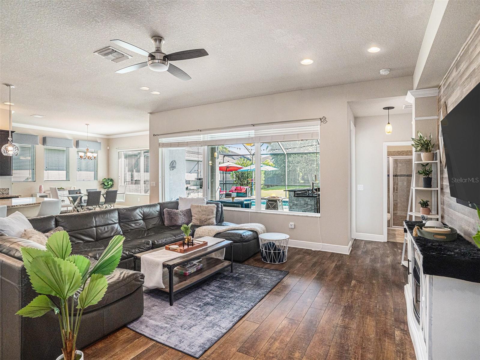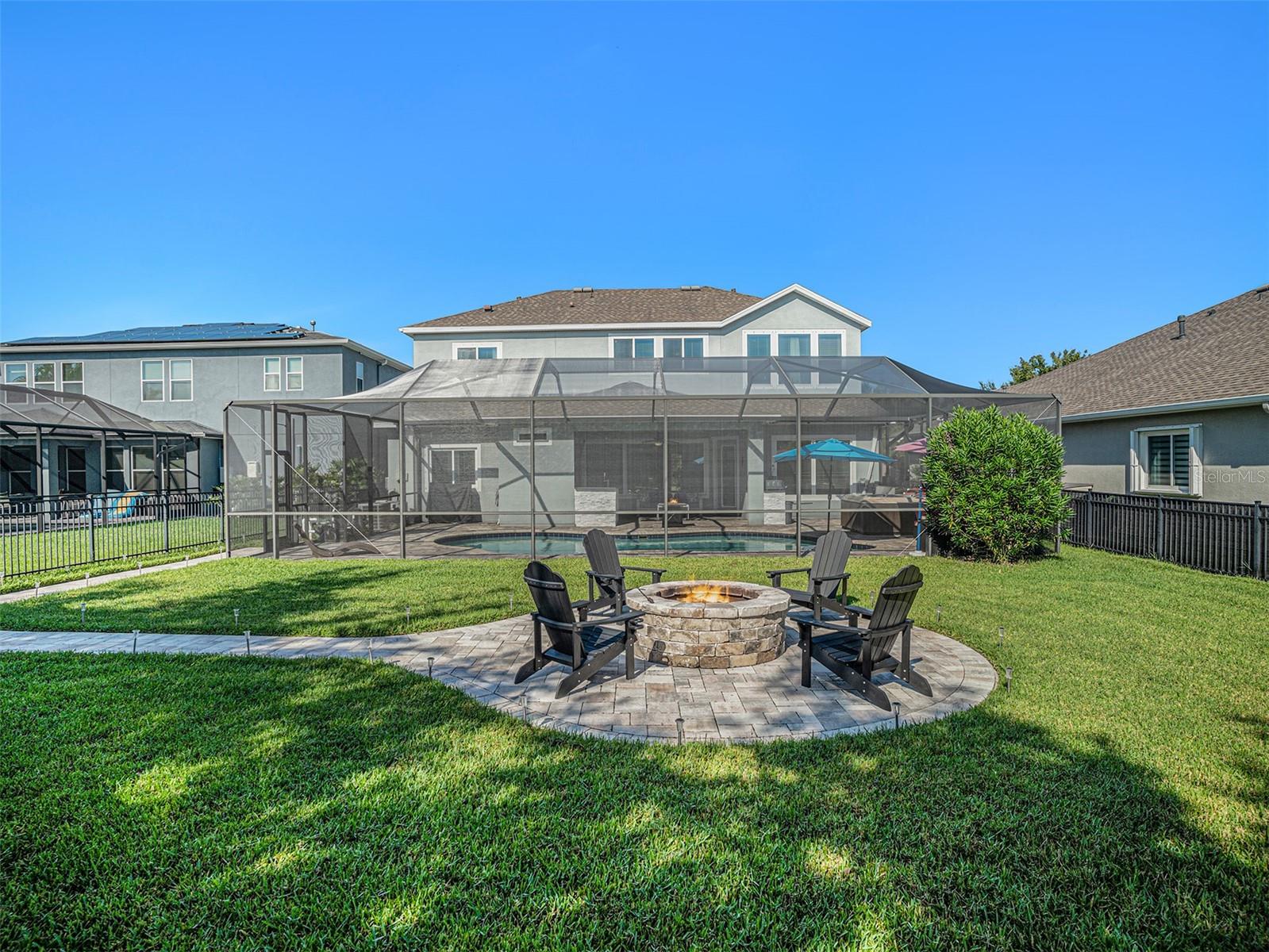 Welcome to 6617 Park Strand Drive located in one of the most sought-after areas in the WATERSET community. Crafted with exceptional quality by DAVID WEEKLY HOMES, this impressive residence rests on an OVERSIZED LOT, spans over 3,100 square feet and offers 4 BEDROOMS, 3.5 BATHROOMS, a DEDICATED OFFICE/DEN, a SPACIOUS GREAT ROOM, a HUGE LOFT, EXPANDED BRICK-PAVER DRIVEWAY (2022) and an EXPANSIVE 3-CAR GARAGE with TANDEM SPACE. The home has eye-catching curb appeal and sits adjacent to a BEAUTIFUL COMMUNITY PARK. Step through the GRAND 21’ HIGH ENTRYWAY with elegant light fixtures into a bright and airy den/office, thanks to the LARGE COVERED FRONT PORCH and French doors that enhance the space with NATURAL LIGHT. The OPEN-CONCEPT great room flows seamlessly into a GOURMET KITCHEN, featuring STAINLESS-STEEL APPLIANCES, NEW REFRIGERATOR, a LARGE GRANITE COUNTERTOP ISLAND with storage, a DESIGNATED DINING AREA, and a MASSIVE BUTLER’S PANTRY. This area opens up to a FULLY ENCLOSED LANAI, a SALTWATER HEATED pool with IN-POOL TABLE, an ABOVE GROUND SPA, and is complemented by a NEW (2024) OUTDOOR KITCHEN & BAR with KEGERATOR & FLATTOP GRILL. BRICK PAVER pool deck was resealed in 2022. The EXPANSIVE BACKYARD is FULLY FENCED and comes equipped with a BRICK PAVER walkway, above ground FIRE PIT (2022). The backyard is completed by MATURE BAMBOO LANDSCAPING which adds some extra privacy and ambiance. The first floor includes a MUDROOM, located adjacent to the garage entrance, a guest bedroom & bathroom, with access to the POOL BATH, and a half bathroom located under the stairs. The remaining bedrooms are located on the second floor along with the LAUNDRY ROOM with OVERSIZED SAMSUNG WASHER & DRYER. The EXPANSIVE PRIMARY SUITE features soaring CATHEDRAL CEILINGS with a FLOATING BEAM, PLANTATION SHUTTERS, and a CUSTOM BARN DOOR. The LUXURIOUS EN-SUITE BATH comes equipped, with DUAL VANITIES, a “SUPER-SHOWER”, WATER CLOSET, and leads to an OVERSIZED WALK-IN CLOSET. Bedrooms 2 and 3 are spacious and share a full bath, while the loft area features a 10' TRAY CEILING perfect as a second LIVING ROOM, GAME ROOM, or MEDIA ROOM. Upgrades include NEW (2024) HVAC for the 2nd floor with UV sanitation light. SURROUND SOUND SYSTEM in loft and living room (2022). Wiring for TVs have been routed behind the walls in all rooms (2022). The home also features NEW LUXURY VINYL PLANK OAK FINISH (2024) flooring on the stairs, loft, and second-floor hallways. The exterior of the home features a NEBULA LED LIGHTING SYSTEM (2022), providing everyday ambiance and customizable settings for holidays and special occasions. Located in one of the most sought-after areas of the WATERSET community, you’ll enjoy access to numerous PARKS, POOLS, and TOP-NOTCH AMENITIES, including TWO HEATED COMMUNITY POOLS (one with RESORT-STYLE SLIDES), TWO FITNESS CENTERS, CLUBHOUSES, a CAFÉ, a DOG PARK, and a SPLASH PAD. Schedule your personal tour of this magnificent property today!