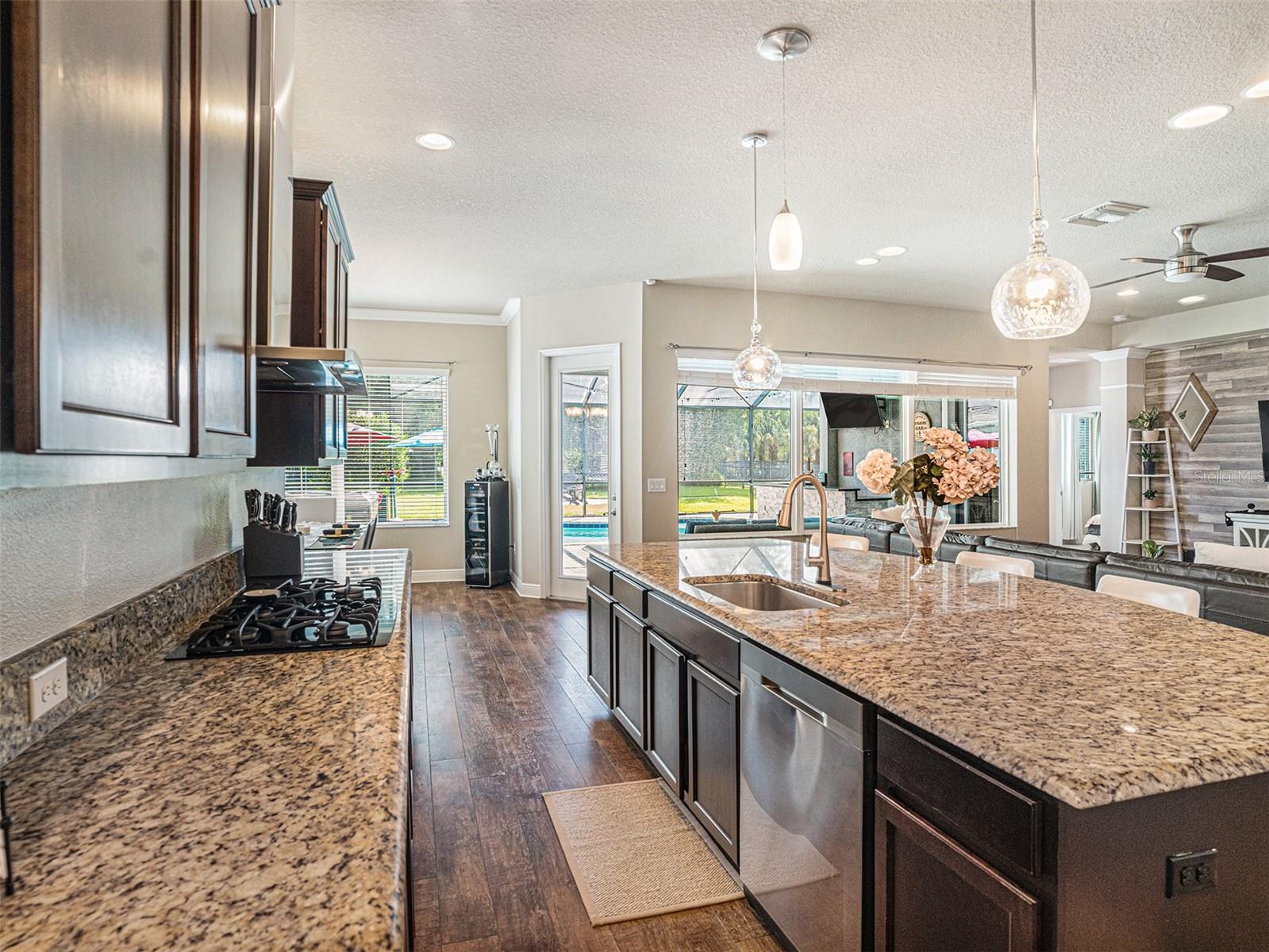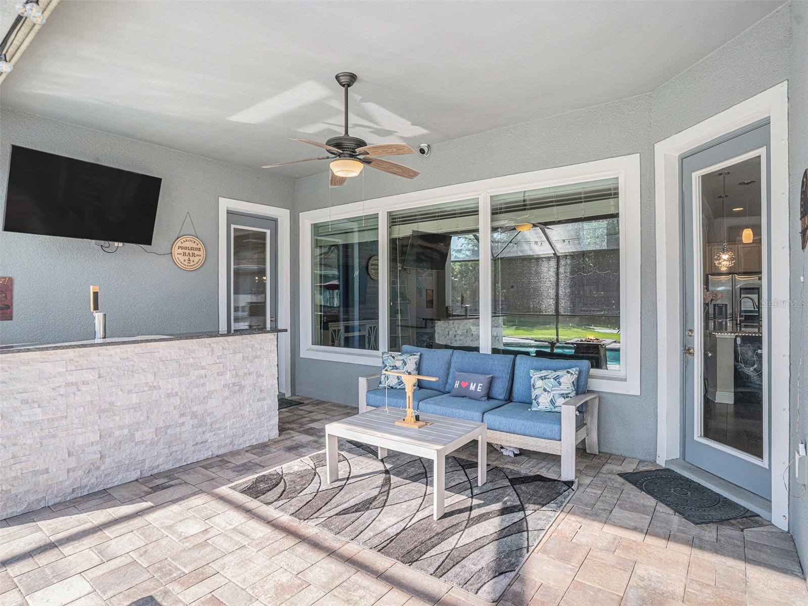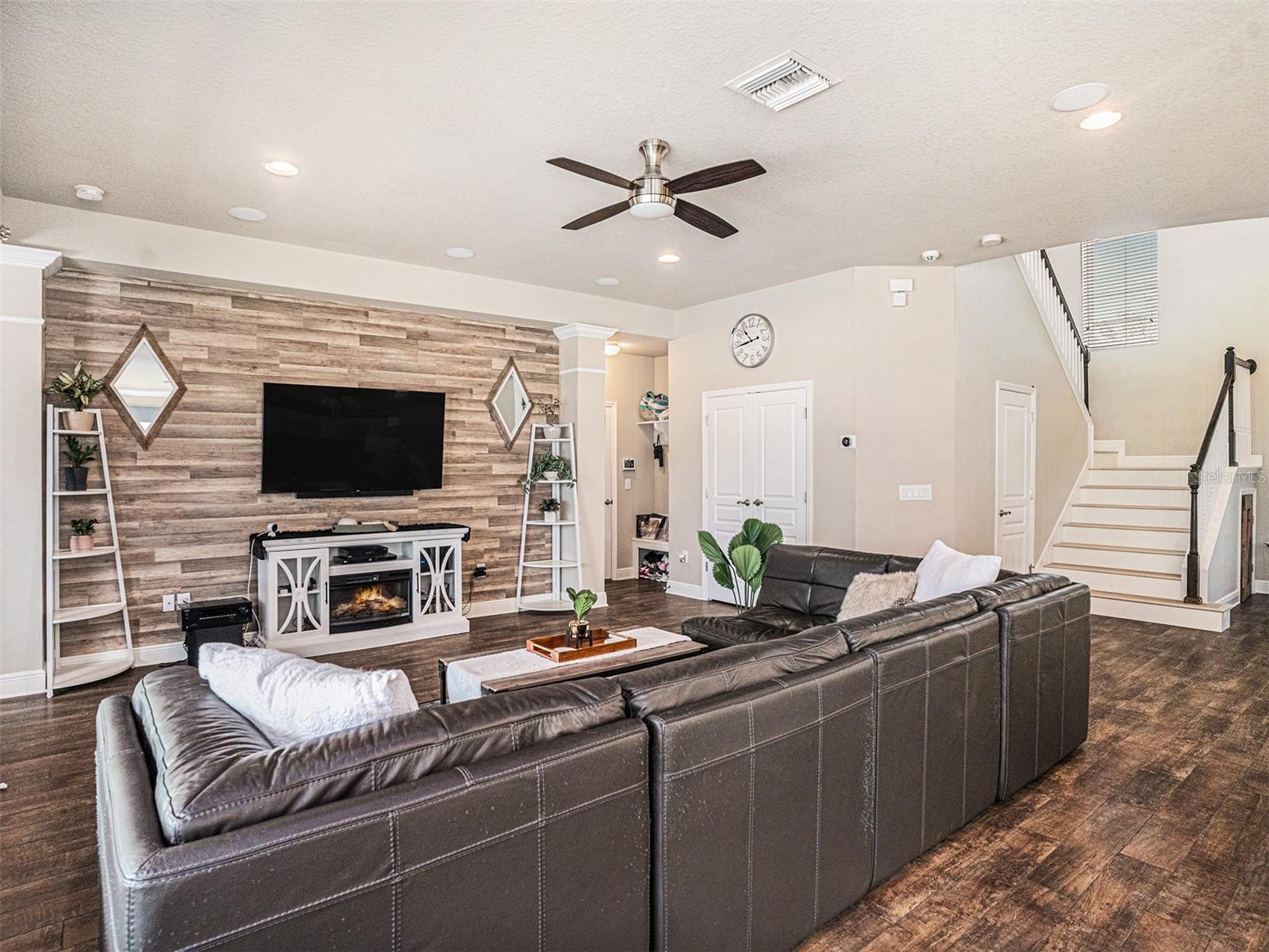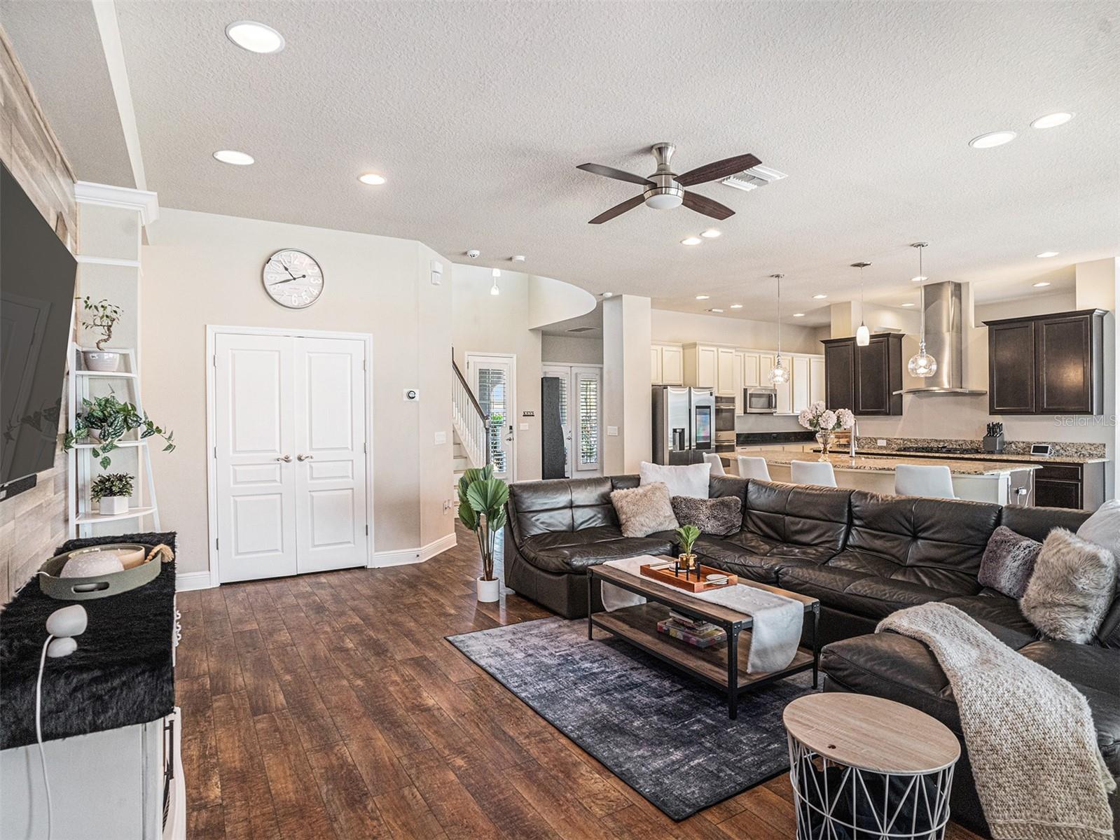 Welcome to 6617 Park Strand Drive located in one of the most sought-after areas in the WATERSET community. Crafted with exceptional quality by DAVID WEEKLY HOMES, this impressive residence rests on an OVERSIZED LOT, spans over 3,100 square feet and offers 4 BEDROOMS, 3.5 BATHROOMS, a DEDICATED OFFICE/DEN, a SPACIOUS GREAT ROOM, a HUGE LOFT, EXPANDED BRICK-PAVER DRIVEWAY (2022) and an EXPANSIVE 3-CAR GARAGE with TANDEM SPACE. The home has eye-catching curb appeal and sits adjacent to a BEAUTIFUL COMMUNITY PARK. Step through the GRAND 21’ HIGH ENTRYWAY with elegant light fixtures into a bright and airy den/office, thanks to the LARGE COVERED FRONT PORCH and French doors that enhance the space with NATURAL LIGHT. The OPEN-CONCEPT great room flows seamlessly into a GOURMET KITCHEN, featuring STAINLESS-STEEL APPLIANCES, NEW REFRIGERATOR, a LARGE GRANITE COUNTERTOP ISLAND with storage, a DESIGNATED DINING AREA, and a MASSIVE BUTLER’S PANTRY. This area opens up to a FULLY ENCLOSED LANAI, a SALTWATER HEATED pool with IN-POOL TABLE, an ABOVE GROUND SPA, and is complemented by a NEW (2024) OUTDOOR KITCHEN & BAR with KEGERATOR & FLATTOP GRILL. BRICK PAVER pool deck was resealed in 2022. The EXPANSIVE BACKYARD is FULLY FENCED and comes equipped with a BRICK PAVER walkway, above ground FIRE PIT (2022). The backyard is completed by MATURE BAMBOO LANDSCAPING which adds some extra privacy and ambiance. The first floor includes a MUDROOM, located adjacent to the garage entrance, a guest bedroom & bathroom, with access to the POOL BATH, and a half bathroom located under the stairs. The remaining bedrooms are located on the second floor along with the LAUNDRY ROOM with OVERSIZED SAMSUNG WASHER & DRYER. The EXPANSIVE PRIMARY SUITE features soaring CATHEDRAL CEILINGS with a FLOATING BEAM, PLANTATION SHUTTERS, and a CUSTOM BARN DOOR. The LUXURIOUS EN-SUITE BATH comes equipped, with DUAL VANITIES, a “SUPER-SHOWER”, WATER CLOSET, and leads to an OVERSIZED WALK-IN CLOSET. Bedrooms 2 and 3 are spacious and share a full bath, while the loft area features a 10' TRAY CEILING perfect as a second LIVING ROOM, GAME ROOM, or MEDIA ROOM. Upgrades include NEW (2024) HVAC for the 2nd floor with UV sanitation light. SURROUND SOUND SYSTEM in loft and living room (2022). Wiring for TVs have been routed behind the walls in all rooms (2022). The home also features NEW LUXURY VINYL PLANK OAK FINISH (2024) flooring on the stairs, loft, and second-floor hallways. The exterior of the home features a NEBULA LED LIGHTING SYSTEM (2022), providing everyday ambiance and customizable settings for holidays and special occasions. Located in one of the most sought-after areas of the WATERSET community, you’ll enjoy access to numerous PARKS, POOLS, and TOP-NOTCH AMENITIES, including TWO HEATED COMMUNITY POOLS (one with RESORT-STYLE SLIDES), TWO FITNESS CENTERS, CLUBHOUSES, a CAFÉ, a DOG PARK, and a SPLASH PAD. Schedule your personal tour of this magnificent property today!