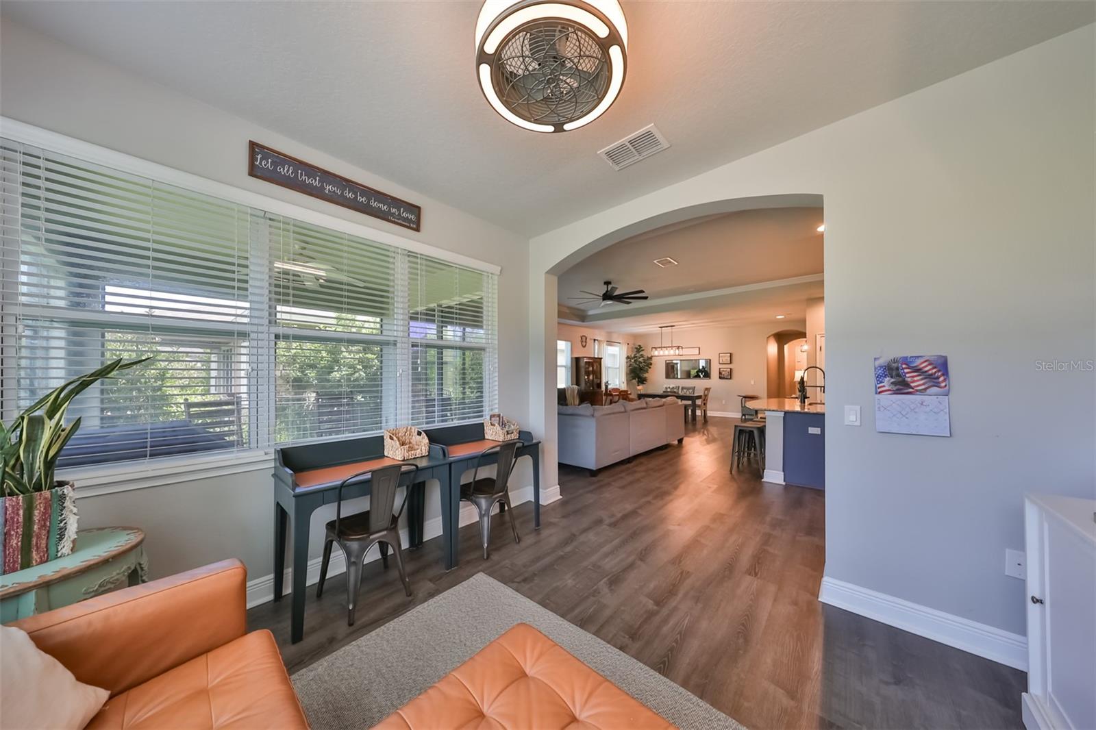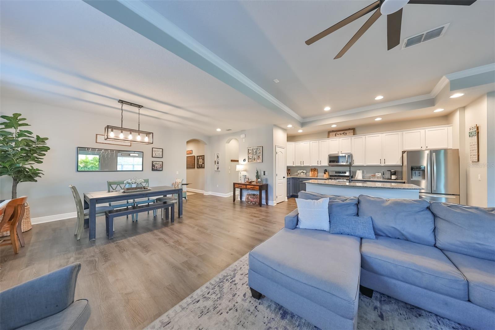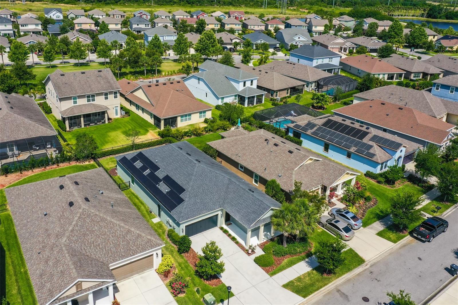 **Gorgeous Farm Style Elevation**Solar Powered Energy Efficient**…Ashton Woods Gaspar floorplan with 3 bedrooms, 2 Full Baths, 2 Car Garage, Den-Flex room and a Large open great room with a very spacious kitchen area and a large granite counter-top island. **This home features *Tesla Battery Back-up/ 7.25 KW Panasonic Solar Panels** The kitchen has tall 42"cabinets and S/S appliances. Luxury Vinyl Plank floors throughout all Bedrooms and common areas... Decorative wall paneling in the Living room and Designer Light Fixtures. Lots of natural light, the Tropically landscaped yard is fully fenced-in and a completely screened lanai. Gas stubout at rear of the home for direct hook-up for your Natural gas BBQ grill, with plenty of room for guest. ***The Waterset community features 2 large Clubhouses, 2 fitness centers, Multiple Community Pools, many parks throughout, fishing pier, ponds, walking/biking paths, Splash Pad, dog Park and much more to come. Minutes away from I-75, Hwy 41 and Hwy 301, makes this the perfect place to call home. Please bring qualified buyers and all reasonable offers! Property Taxes shown include CDD Fee.