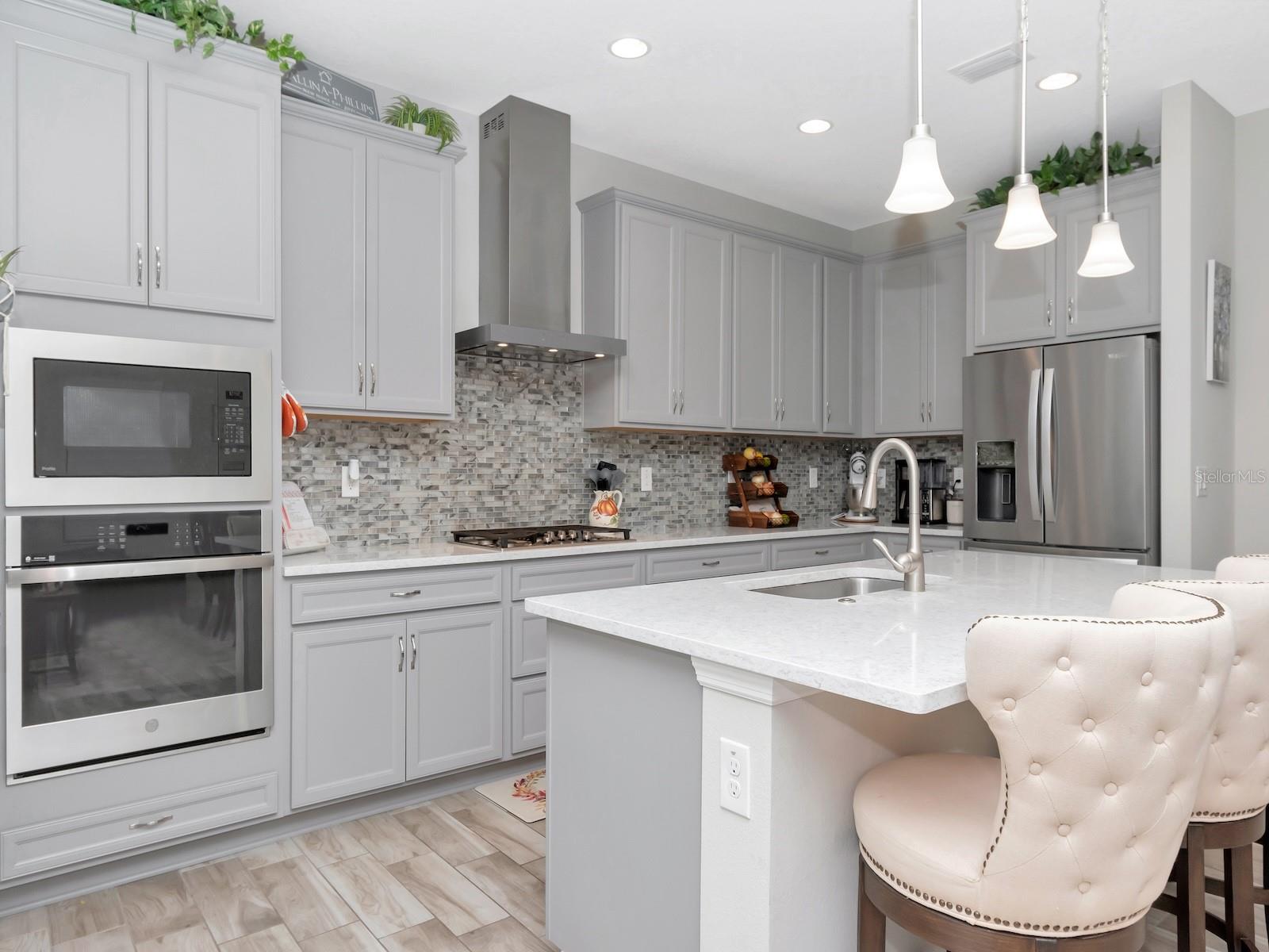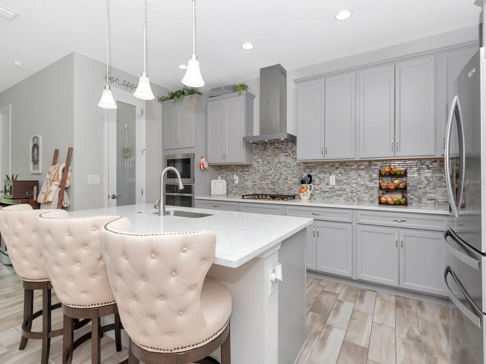 This move-in ready 4-bedroom, 2-bathroom West Bay Sandpiper model is the perfect blend of style, comfort, and functionality. Step through the welcoming foyer into an expansive open floor plan that’s ideal for modern living. The gourmet kitchen is a chef’s dream, featuring a gas cook top, built in oven and microwave, oversized cabinetry, a large breakfast island, elegant pendant lighting, and quartz countertops accented by a designer backsplash. The spacious dining area seamlessly transitions into the inviting family room, creating the perfect space for both entertaining and everyday family life. The expansive owner’s retreat is a private sanctuary, boasting two oversized custom closets and a spa-like en-suite bathroom complete with a walk-in shower, soaking tub, and dual vanities—an oasis for relaxation. Additional upgrades such as premium engineered wood flooring, 9-foot ceilings, and pocket sliding glass leading out to the covered lanai and backyard. Three generously sized bedrooms share a well-appointed second bathroom, while the laundry room offers extra convenience with custom cabinetry and a utility sink. The community offers an unparalleled lifestyle with a wealth of amenities, including multiple pools, a state-of-the-art fitness center, playgrounds, sand volleyball, basketball, tennis and pickleball courts, a splash pad, a dog park, scenic walking trails, fishing ponds, and a beautiful clubhouse. This home truly has it all—luxury, comfort, and community. Not in a required Flood Zone area.