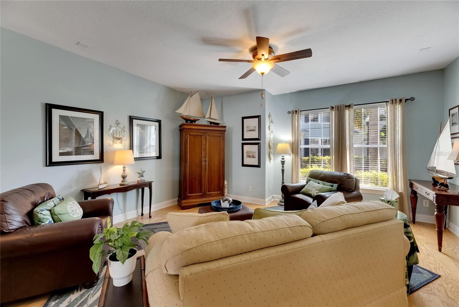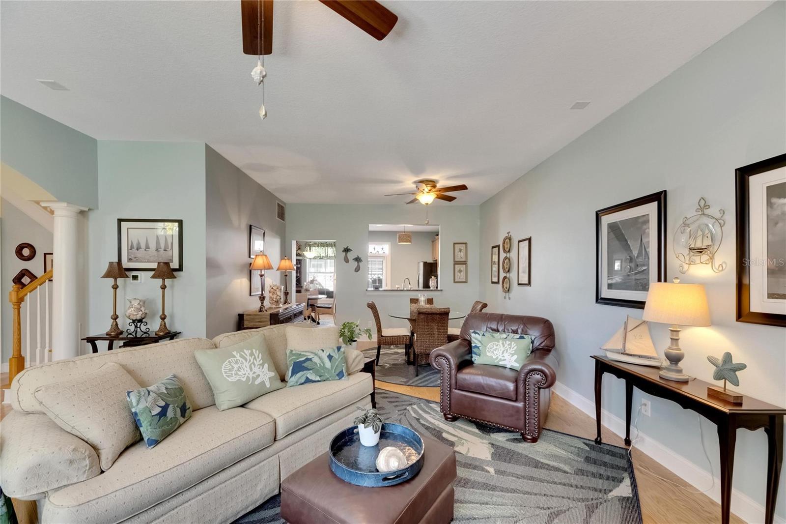 Welcome Home to MiraBay and this well-maintained Coastal style townhome! This Key West inspired three-bedroom, 2.5 bathroom plus Den/Office (or 4th bedroom w/a walk-in closet) home is move-in ready. No carpet in this home; tile in the wet areas and hardwood throughout the remainder of the home. Spacious secondary bedrooms and a huge Owner's Suite with sitting area and very large walk-in closet. Furniture is available under a separate Contract (fully furnished option). This well-built Bayfair townhome did not suffer any damage from Hurricane Helene or Hurricane Milton and is a short three-minute walk to the Community pool and fitness center and features a metal roof, rear entry garage, brick-pavered front porch and fenced rear patio. Terrific Southern Hillsborough County, Florida location with easy access to I-75, U.S. 41 & U.S. 301. This Home now includes a new NEW HVAC (April 2025).
