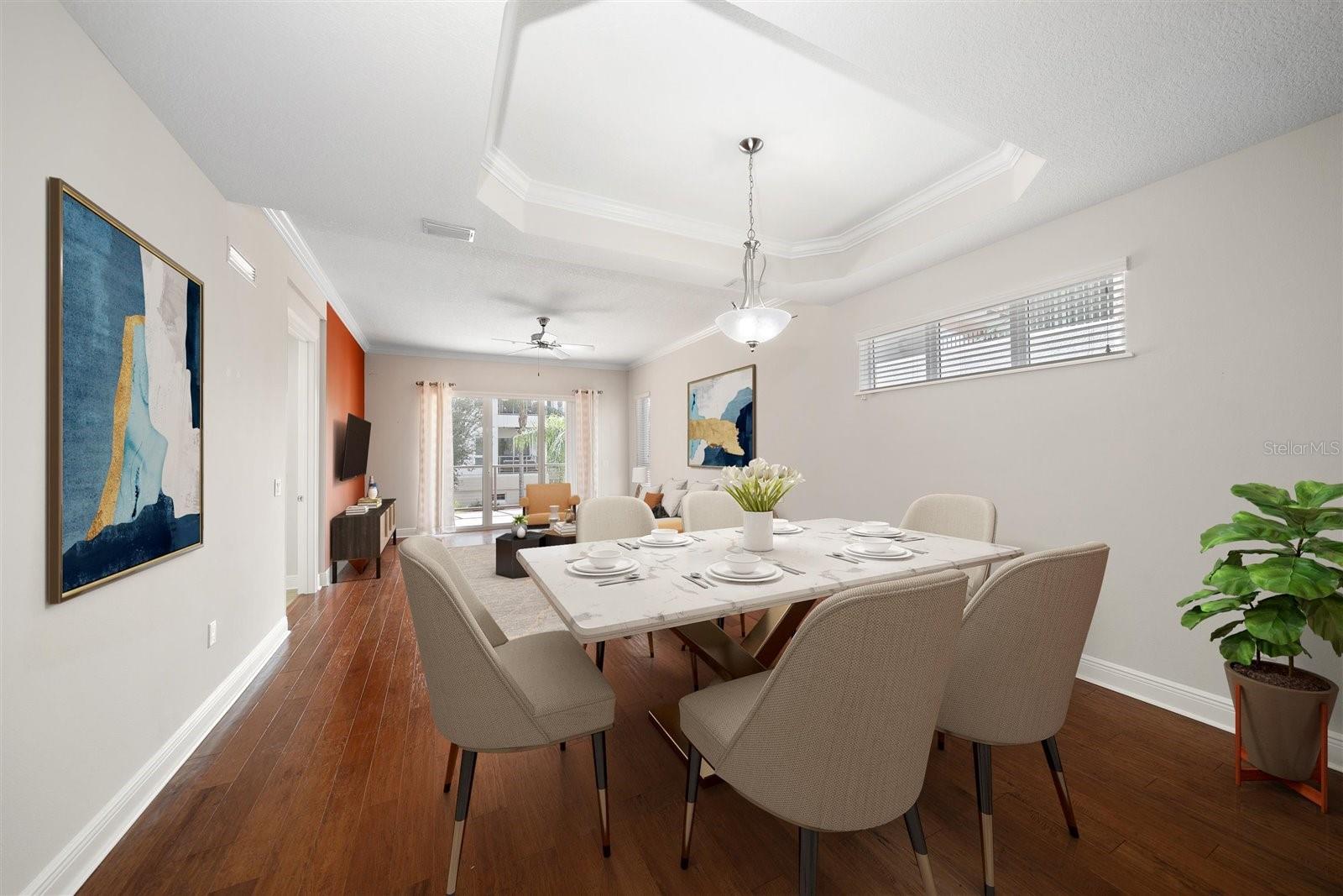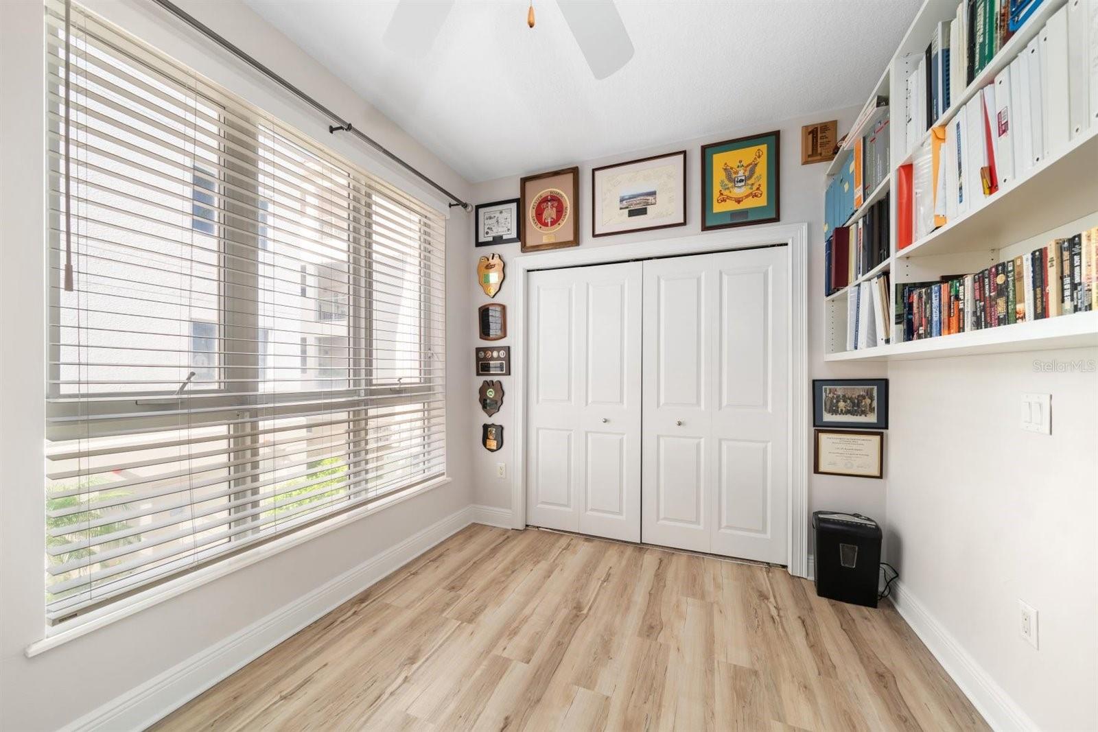 One or more photo(s) has been virtually staged. Bellasol is a Luxury Waterfront community! NEW PRICE ADJUSTMENT! Located in Apollo Beach a fast growing South Tampa! This corner condo is on the second floor. The home features Four Bedrooms, Three Full Baths, an Oversized Two Car Garage (580 sq. ft.) and a DEEDED DOCK #14. The private Front Porch is covered and convenient to the elevator or stairs. As you enter through the solid wood door you will be amazed by the inviting floor plan of spacious open living. Lovely hardwood floors are in the entertainment areas. The dining room with tray ceiling and crown moulding sets the stage for serving formal or informal dinners. The great room has many windows and sliding doors for easy access to the rear porch/balcony. The kitchen has wood cabinets, back splash, double sinks, granite counters and stainless-steel appliances. The large island offers comfortable bar stool seating. Perfect for socializing and entertaining. The primary bedroom is strategically located for ultimate privacy, delights with tray ceiling, crown moulding, wood plank tile floors, 10'x8' walk-in closet and sliding doors to the rear balcony with water views. The en-suite bathroom is a spa-like retreat with a large double vanity of granite, porcelain sinks, a soaking tub and a walk-in shower. The additional bedroom w/en-suite offers a queen-size Murphy bed. The 3rd Bedroom has an additional full bathroom conveniently located across the hallway. Enter through glass paned french doors into an office/study with floor to ceiling custom built-in library shelves. This charming room could be used as another guest room. Ceiling fans are in all bedrooms, Cat5 network was installed in most rooms. The Dock has water and electricity the maximum vessel length is 32'. The Marina has a launch area for kayaks and other water sport vehicles. The elevators are conveniently located in each building this adds to the exclusivity. The over sized 2-car garage provides space for your vehicles and the custom built-in cabinets add storage. The gated community ensures security and privacy with security cameras at the entrance. Perks include convenient access to a 24/7access fully equipped fitness center, clubhouse with bathrooms, rental space for parties, propane grills, a community pool with hot tub, a tiki bar, Wi-Fi and a dockside lifestyle. Condo maintenance free living with flood insurance included as well as water, trash, and high-speed Internet. Walking distance to renowned restaurants like Finns, Apollo Pizza, Cigar Bar as well as the beach, ensures that entertainment and relaxation are always within reach. Easy boating access to Tampa Bay, no fixed bridges. Strategically located between Sarasota and Tampa, this condo offers the best of both worlds. A tranquil haven with quick access to the vibrant cultural scenes and events of these two cities. This waterfront condo in Apollo Beach is not just a residence; it's an invitation to a life of luxury, convenience, and endless activities in the heart of the Tampa Bay area. NO DAMAGE FROM STORMS. Maintenance fee includes FLOOD INSURANCE! Compare this home with other waterfront communities, you will be astonished by the Value. $595.500. Need time to purchase! Available for lease at &3200. month!
