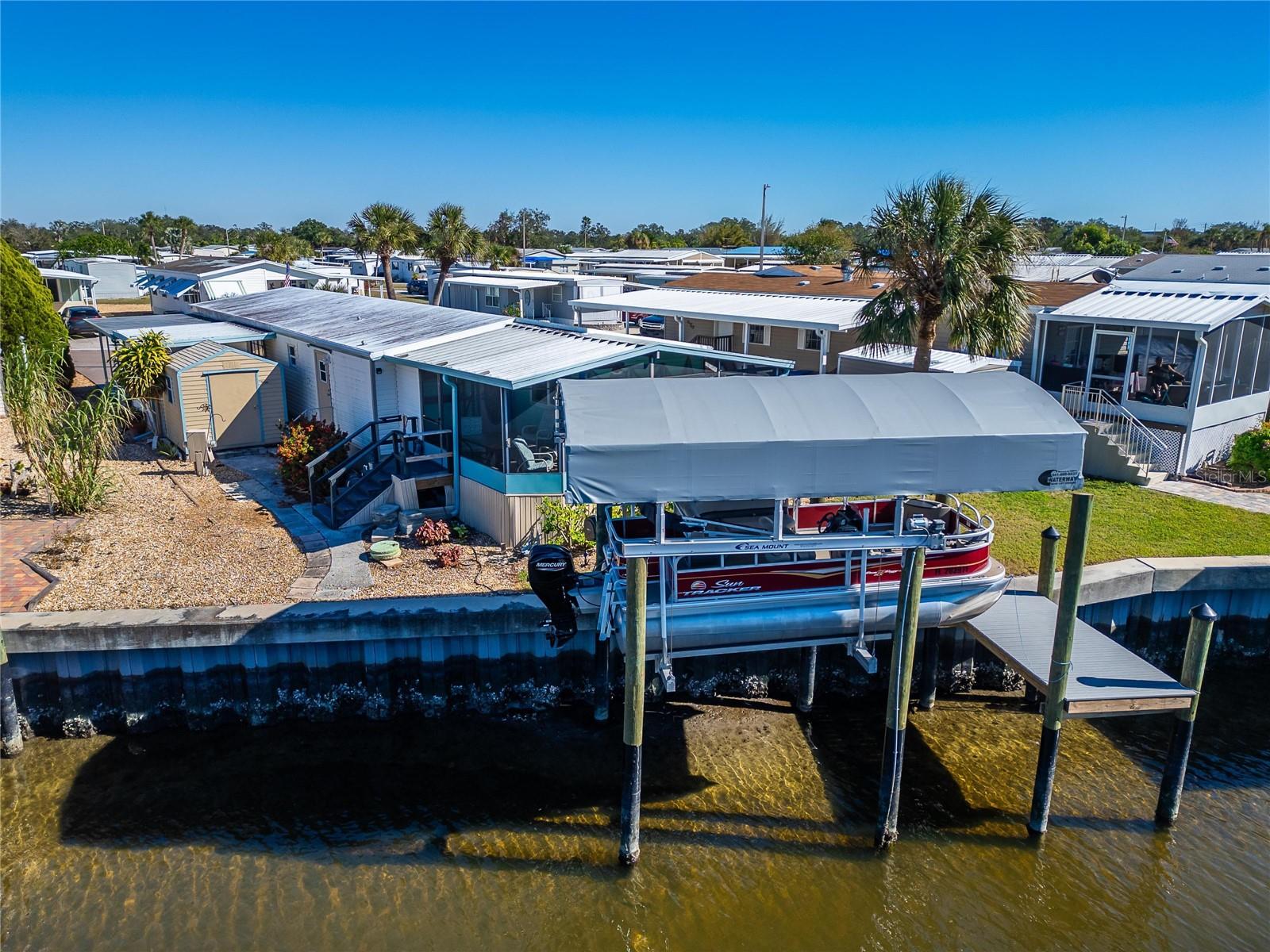 NEW Price, Same Opportunity! Your Waterfront Paradise Awaits! Imagine waking up to the gentle sound of water lapping against the canal, the morning sun casting golden reflections across its surface. You step onto your screened back porch, a warm cup of coffee in hand, as a soft breeze carries the scent of salt air. This isn’t just a dream—it’s your everyday reality in this stunning 2-bedroom, 2-bathroom waterfront retreat, nestled in the heart of Florida’s paradise. Step inside, where natural light pours through the windows, illuminating the spacious floor plan. The living area welcomes you with an effortless flow into a well-appointed kitchen, complete with modern appliances, ample cabinetry, then right off the living room and kitchen you’ll find a bonus room and a dry bar—perfect for entertaining guests with cocktails and laughter. At the end of the day, retreat to one of two expansive bedrooms, each offering a peaceful sanctuary. One bathroom features a walk-in shower, while the other boasts a classic tub-and-shower combo—perfect for unwinding after a day on the water. The laundry room comes equipped with the washer/dryer, a utility sink, and storage. Ample additional storage for your boating supplies is right out the door in the workshop/shed. But the true magic of this home lies just beyond your back door. Your backyard opens to a serene canal, where your NEW COVERED BOAT LIFT awaits, offering direct access to Tampa Bay’s open waters. Whether you're an avid boater, a fishing enthusiast, or simply enjoy the tranquility of waterfront living, this is where your adventure begins. MOVE-IN READY AND WORRY-FREE, this home features a NEW ELECTRICAL PANEL, NEW SUB FLOOR, SLEEK NEW LAMINATE FLOORING, and A ROOF OVER. With NO LOT RENT OR CDD, you can enjoy the perks of ownership in the highly sought-after 55+ Caribbean Isles Residential Cooperative. Here, every day feels like a vacation—with resort-style amenities including a heated pool, clubhouse, shuffleboard, bocce, a boat launch and boat/RV storage, a dog park, and an ever-growing calendar of social events, from themed dinners and dances to craft clubs and game nights. Located in Apollo Beach, this home places you within easy reach of Tampa, Sarasota, and the Gulf Coast’s most breathtaking beaches, world-class dining, and entertainment. And with two international airports nearby, travel is effortless. DON’T LET THIS RARE WATERFRONT GEM SLIP AWAY. Schedule your private showing today and start living the coastal lifestyle you’ve always dreamed of.