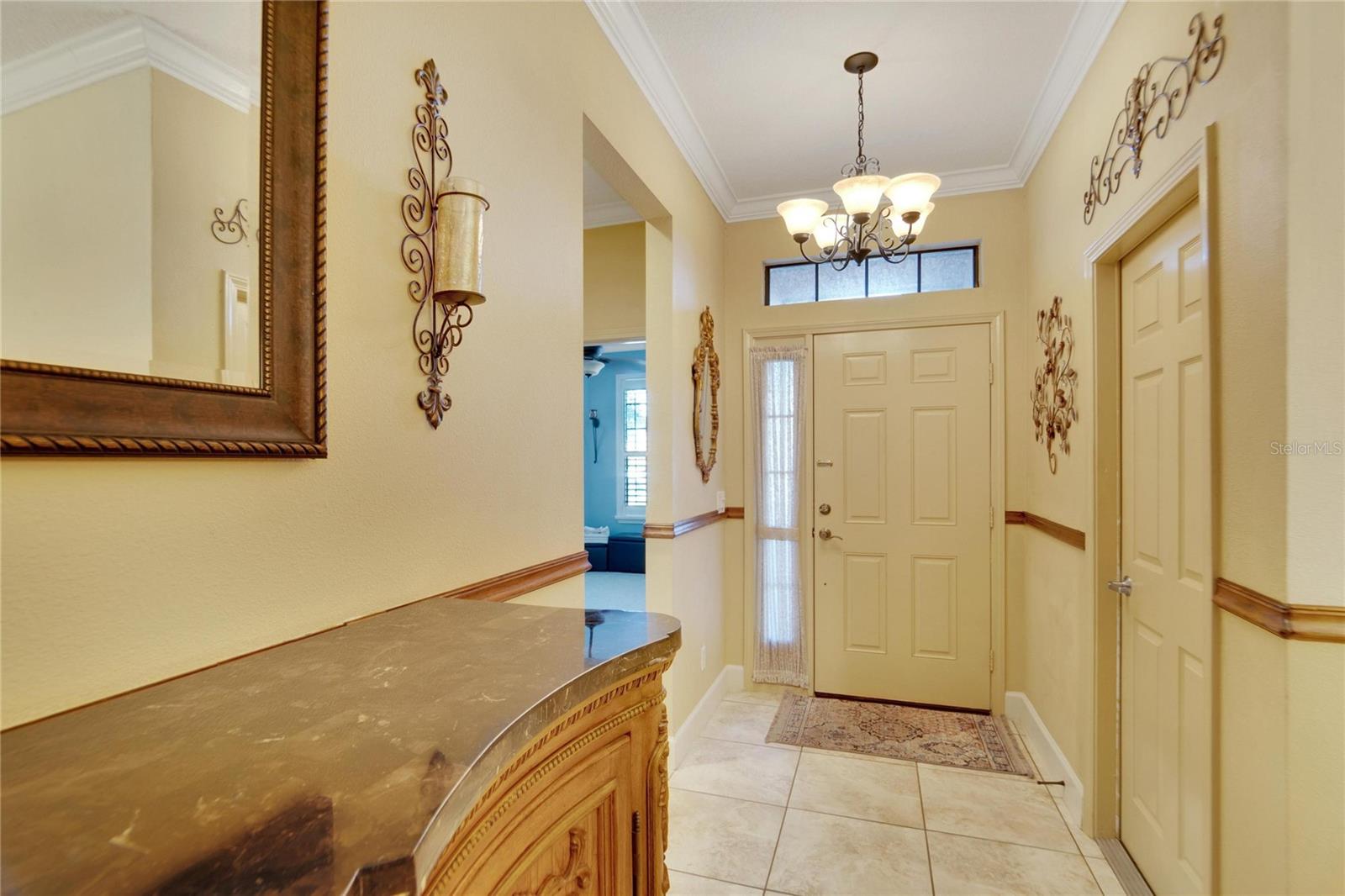Motivated seller! WELCOME HOME! You’ve found the one! Nestled in the serene, active 55+ community of Del Webb SouthShore Falls you’ll fall in love with this MOVE IN READY sought after BEACHCOMBER model with a BEAUTIFUL WATERVIEW! This sun filled 1631 sq ft villa home features 2-BEDROOMS, 2-BATHROOMS, a DEN AND FORMAL DINING ROOM WITH ELECTRIC FIREPLACE, and is located at the end of a cul de sac. As you enter through the screened in entrance way you will automatically feel right at home. You will notice the INVITING WARM NEUTRAL COLORS, CROWN MOLDING and that ALL the windows boast PLANTATION SHUTTERS, including the glass slider. This model enjoys a two bedroom split plan allowing for privacy for you and your guests. On the right is the guest bedroom with bay alcove, guest bath and laundry room. On the left is the formal dining room with electric fireplace. Opposite is the den/office with glass enclosed doors. Moving forward you will notice the 42 INCH WOOD CABINETS WITH DENTAL CROWN MOLDING, GRANITE COUNTER TOPS, STAINLESS STEEL APPLIANCES and a BREAKFAST BAR for casual dining overlooking the large great room. The owner’s suite is located off the great room and includes a generous walk in closet, a dual sink vanity with granite counters, and tiled walk-in shower. Moving through the great room and glass slider you will enter the PRIVATE, EXTENDED LANAI with a water view. Southshore Falls has a 24/7 gated and guarded entrance, a 14,000 sq ft Clubhouse featuring a Ballroom, State-of-the-art Fitness Center, Billiard room, Craft room, Library/Card room and Internet Café. Outdoor amenities include 2 Swimming pools, a Resistance pool, Hot tub, Shuffleboard, Bocce Ball, Pickle Ball and Tennis Courts, Putting Green and Nature Trail. There are several clubs and activities including Mahjongg, Trivia, Bingo, Photography Club, Painting, Jewelry Making, Scrabble, Golf club, Softball club, Out and About Club, Bike Club, Theater Group, Food Truck night and many evenings of dancing to live band just to mention a few of the offerings here at Southshore Falls and many more!!