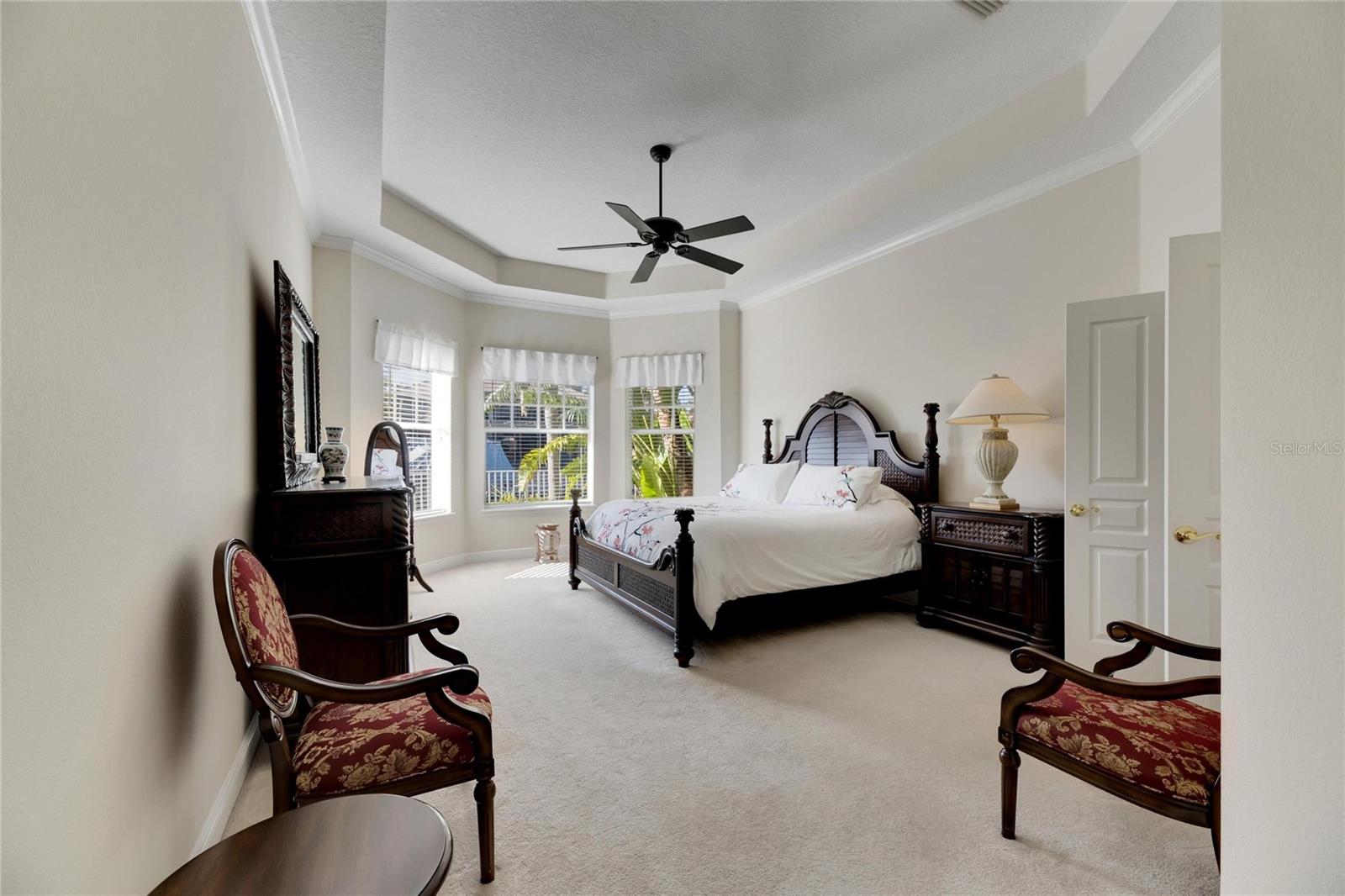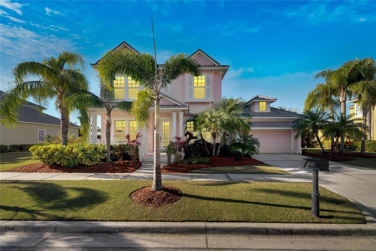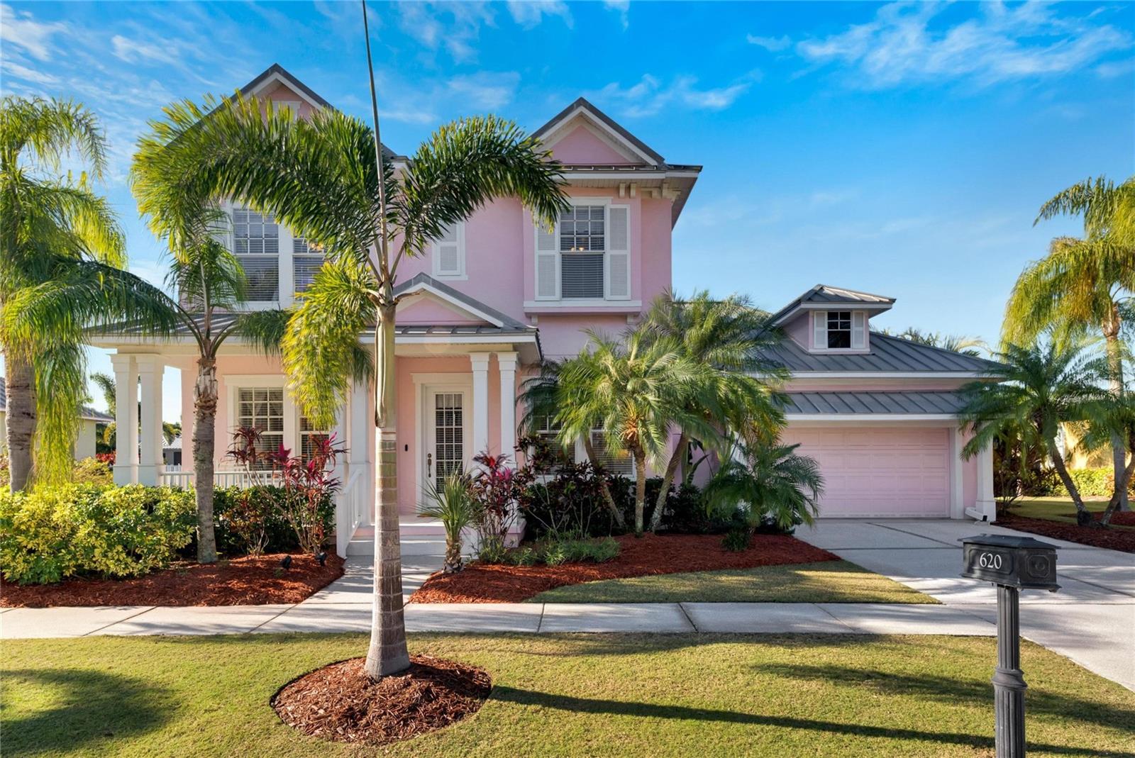 Luxury Waterfront Living at 620 Mirabay Blvd | Discover refined coastal elegance in this custom-built Seagrape model by David Weekley Homes. Situated on an oversized 100-foot lot, this four-bedroom, 3.5-bath residence offers soaring 24-foot ceilings, expansive windows, and a bright, open layout designed for elevated living. The chef’s kitchen is a showstopper with granite countertops, premium stainless steel appliances, 47-inch cabinetry, and a cozy breakfast nook. The main-floor primary suite boasts bay windows with serene water views, a spa-like ensuite with dual vanities, a walk-in shower, and a generous walk-in closet. Upstairs, three spacious bedrooms, two full baths, and a versatile loft with built-in workspace provide ample space for family or guests. The grand staircase and crown molding throughout accentuate the home’s upscale character. Outdoors, enjoy direct access to Tampa Bay from your private dock—complete with water, electric, and a 16,000 lb boat lift that accommodates up to a 50-ft vessel. The screened lanai and inviting front porch are perfect for entertaining or relaxing in style. Additional highlights include a metal roof, recently replaced seawall, two-car garage, large laundry room with utility sink, and two flexible main-floor spaces ideal for a home office or formal dining. Located in the coveted waterfront community of MiraBay, offering resort-style amenities: heated pools, a 24-hour fitness center, tennis courts, walking trails, parks, and a private boat launch—all for just $172/year HOA. Experience the best of Florida luxury living—schedule your private tour today.