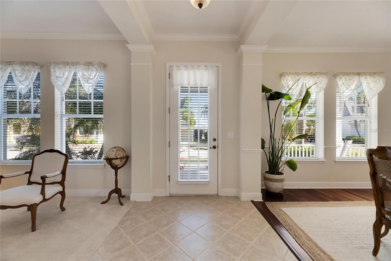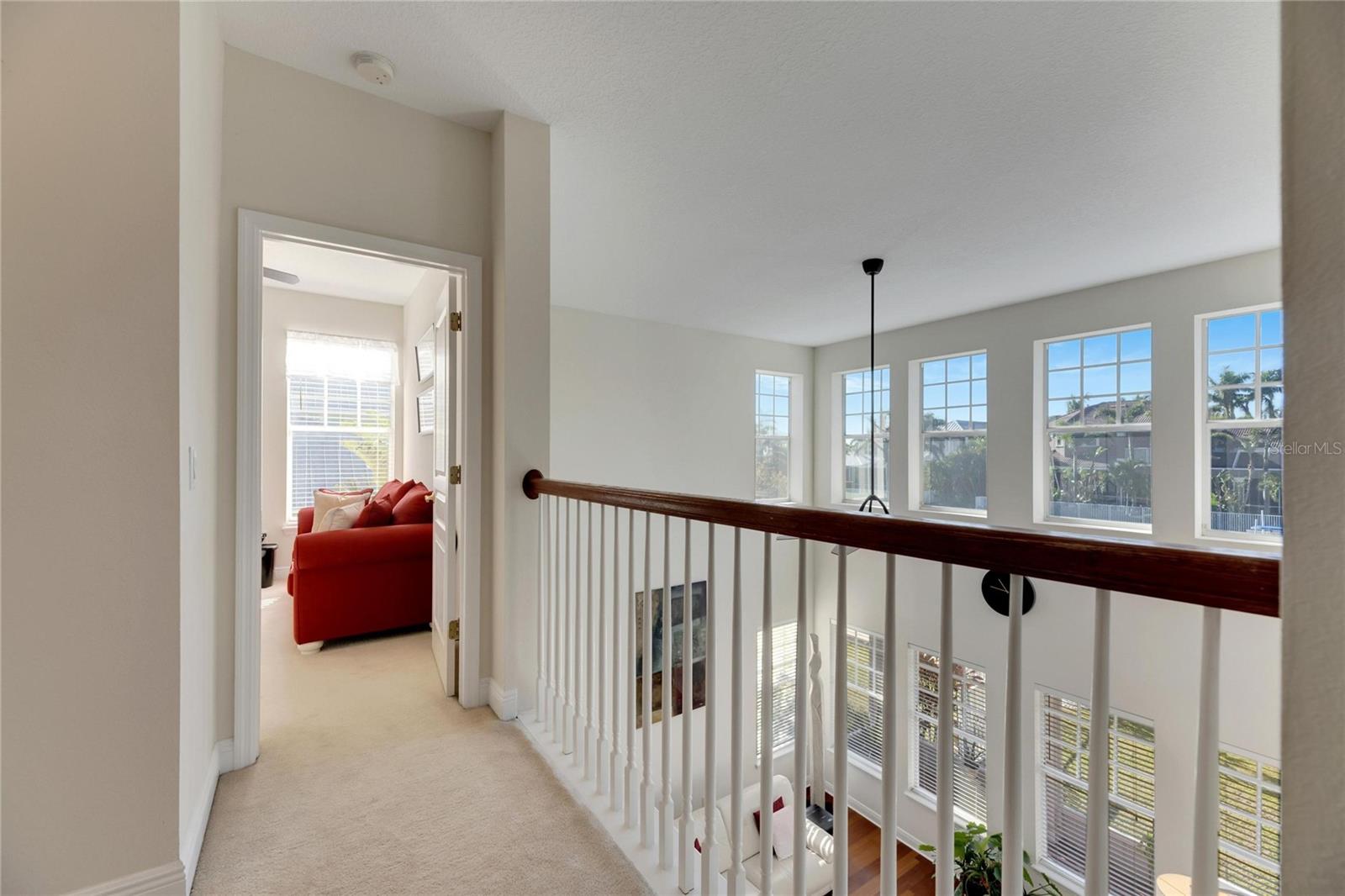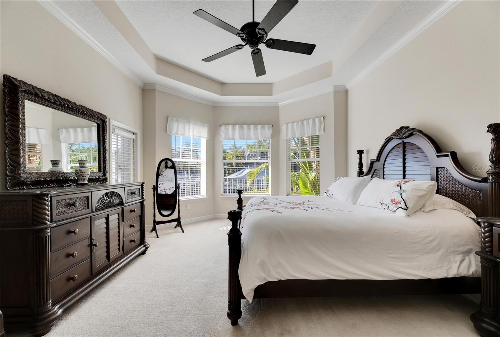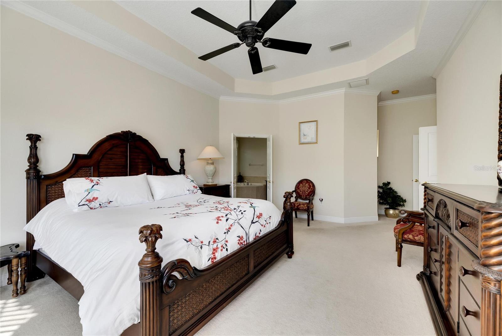 Luxury Waterfront Living at 620 Mirabay Blvd | Discover refined coastal elegance in this custom-built Seagrape model by David Weekley Homes. Situated on an oversized 100-foot lot, this four-bedroom, 3.5-bath residence offers soaring 24-foot ceilings, expansive windows, and a bright, open layout designed for elevated living. The chef’s kitchen is a showstopper with granite countertops, premium stainless steel appliances, 47-inch cabinetry, and a cozy breakfast nook. The main-floor primary suite boasts bay windows with serene water views, a spa-like ensuite with dual vanities, a walk-in shower, and a generous walk-in closet. Upstairs, three spacious bedrooms, two full baths, and a versatile loft with built-in workspace provide ample space for family or guests. The grand staircase and crown molding throughout accentuate the home’s upscale character. Outdoors, enjoy direct access to Tampa Bay from your private dock—complete with water, electric, and a 16,000 lb boat lift that accommodates up to a 50-ft vessel. The screened lanai and inviting front porch are perfect for entertaining or relaxing in style. Additional highlights include a metal roof, recently replaced seawall, two-car garage, large laundry room with utility sink, and two flexible main-floor spaces ideal for a home office or formal dining. Located in the coveted waterfront community of MiraBay, offering resort-style amenities: heated pools, a 24-hour fitness center, tennis courts, walking trails, parks, and a private boat launch—all for just $172/year HOA. Experience the best of Florida luxury living—schedule your private tour today.