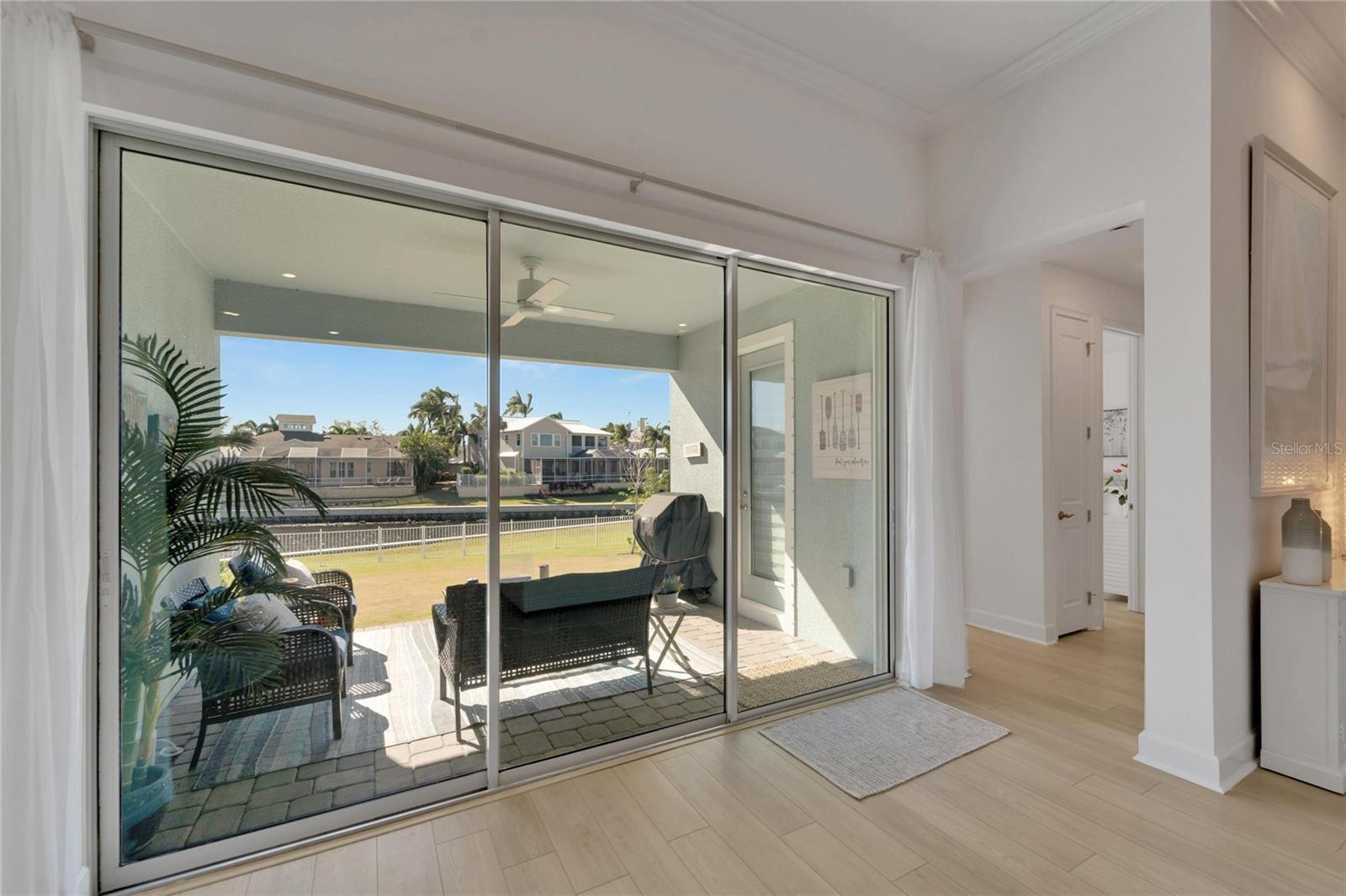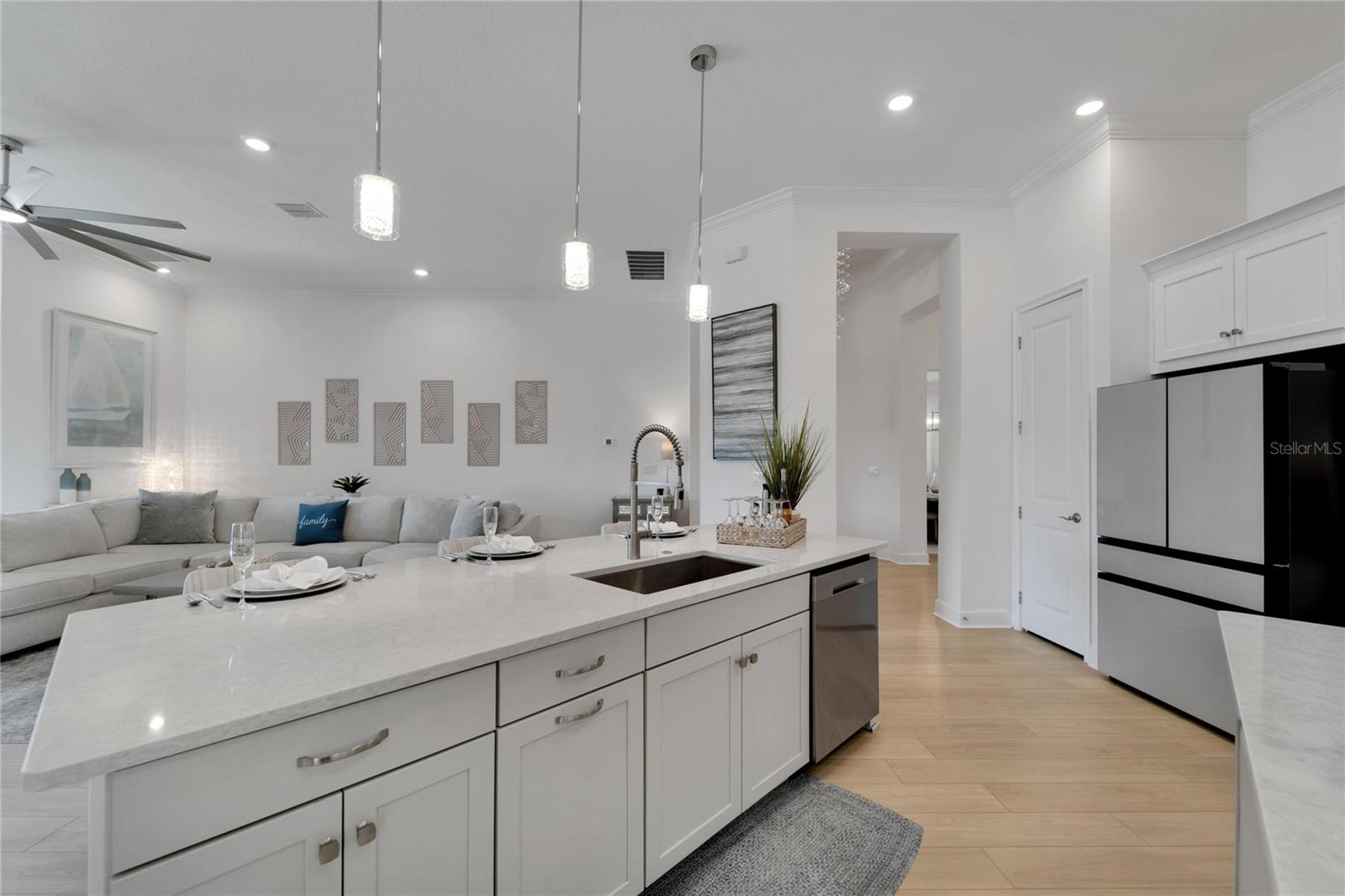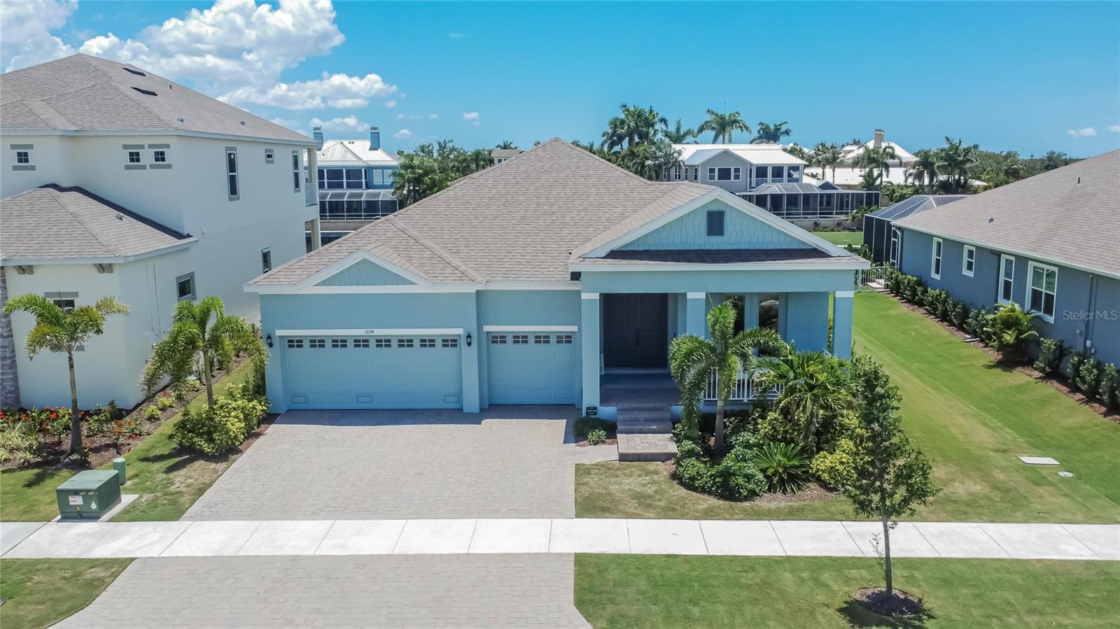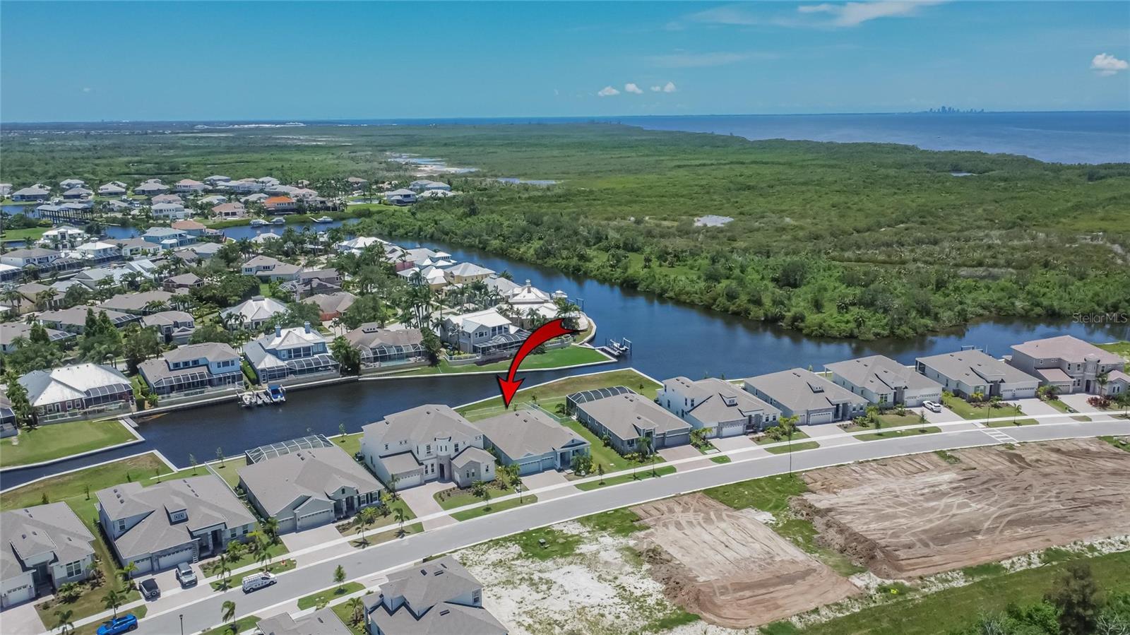 Welcome to 1074 Signet Drive, Apollo Beach, FL. Hurry and take advantage of this better-than-new, less than two year old coastal chic modern craftsman design in the sought-after Marisol Pointe of MiraBay. Say NO to 20 year old homes with 20 year old roofs, HVAC, décor and appliances. Say NO to needing to pass through a community boat lift to head out on the water. Say NO to a 20 year old pool with someone else’s tastes. At 1074 Signet, you can live the ultimate waterfront lifestyle located closer to Tampa Bay than almost any home in Mirabay. Priced to move, this stunning coastal home offers direct canal access with open water less than 5 minutes away and pre-approval for an unrestricted dock and lift. Plan and build your dream pool - not someone else's - with gas and 220V power ready to go. Better yet, pool construction can be conveniently rolled into your mortgage. Built with all of the latest technology including a 12’+ elevated lot, sturdy stem wall design, and spanning 2,636 sq. ft. on a single-level floor plan, this spacious home features 4 bedrooms, 3 bathrooms, 3 garages, a gourmet kitchen, formal dining room, and a private office with French doors—perfect for working from home or managing your next big project. Built in late 2023 with over $80,000 in high-end upgrades, this home is truly move-in ready. Enjoy a dream kitchen complete with two islands, two sinks, twin ovens, and a 36” gas cooktop—perfect for entertaining or simply enjoying everyday life. Luxury vinyl plank flooring flows throughout, paired with upgraded cabinetry, countertops, fixtures, and window treatments. The fully fenced backyard and prepaid dock easement are just added bonuses. Step onto your covered lanai and soak in breathtaking sunset views over the mangroves—your peaceful escape after a day on the water. As part of the vibrant MiraBay community, you’ll also enjoy resort-style amenities including a clubhouse, café, fitness center, sauna, two heated pools (one with lap lanes and a slide), tennis, basketball, pickleball courts, and more—all in a golf cart-friendly neighborhood near top-rated schools, shops, and restaurants. This is more than a home—it’s a lifestyle. Don’t miss your chance to own this rare waterfront gem and watch your equity grow and grow. Schedule your private tour today!