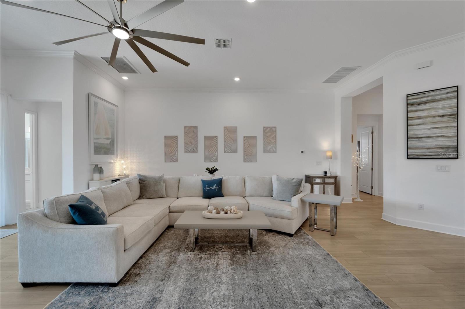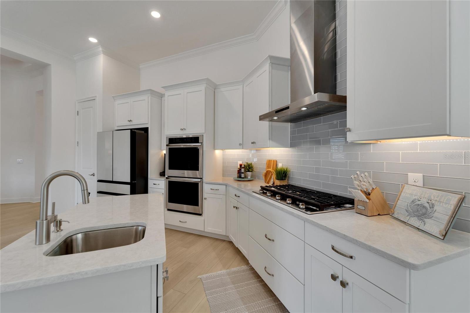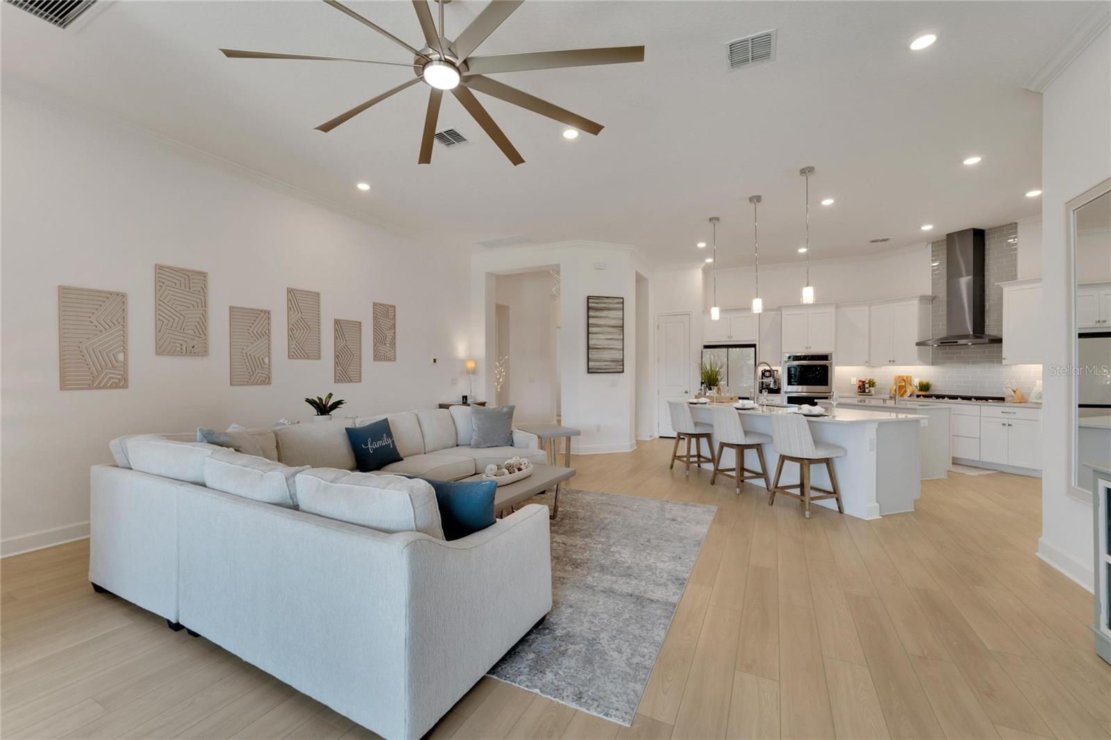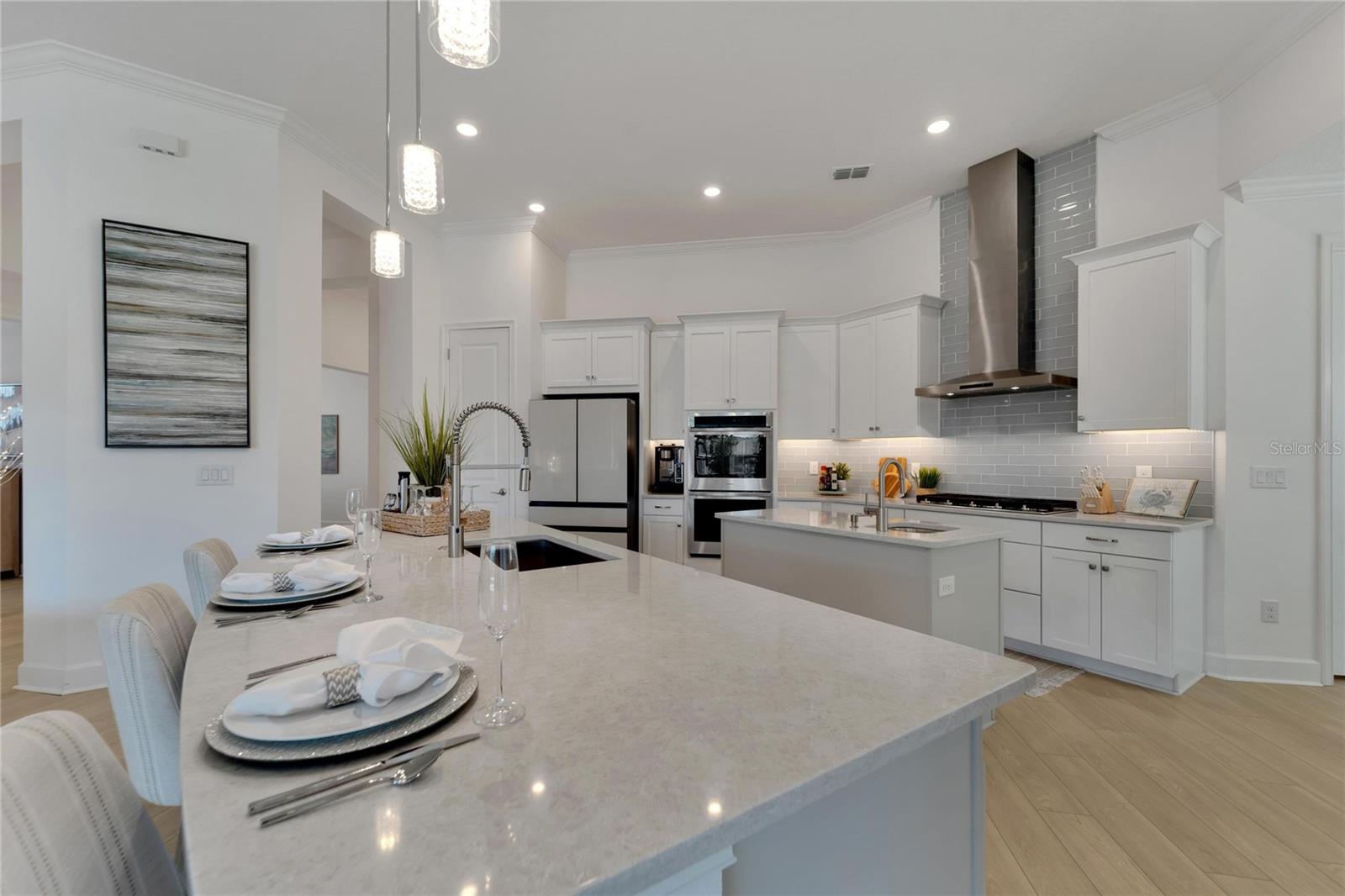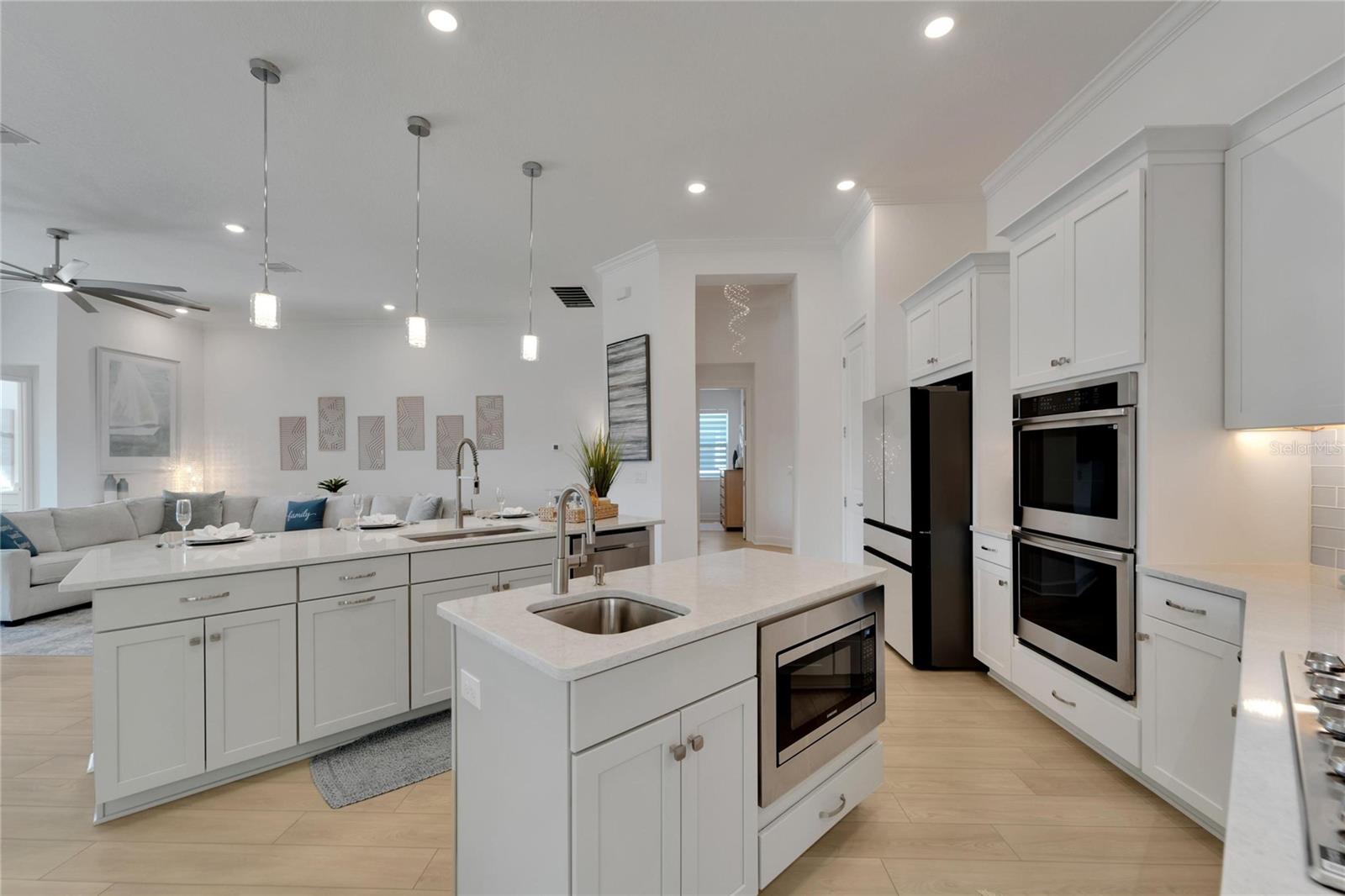 Welcome to 1074 Signet Drive, Apollo Beach, FL. Hurry and take advantage of this better-than-new, less than two year old coastal chic modern craftsman design in the sought-after Marisol Pointe of MiraBay. Say NO to 20 year old homes with 20 year old roofs, HVAC, décor and appliances. Say NO to needing to pass through a community boat lift to head out on the water. Say NO to a 20 year old pool with someone else’s tastes. At 1074 Signet, you can live the ultimate waterfront lifestyle located closer to Tampa Bay than almost any home in Mirabay. Priced to move, this stunning coastal home offers direct canal access with open water less than 5 minutes away and pre-approval for an unrestricted dock and lift. Plan and build your dream pool - not someone else's - with gas and 220V power ready to go. Better yet, pool construction can be conveniently rolled into your mortgage. Built with all of the latest technology including a 12’+ elevated lot, sturdy stem wall design, and spanning 2,636 sq. ft. on a single-level floor plan, this spacious home features 4 bedrooms, 3 bathrooms, 3 garages, a gourmet kitchen, formal dining room, and a private office with French doors—perfect for working from home or managing your next big project. Built in late 2023 with over $80,000 in high-end upgrades, this home is truly move-in ready. Enjoy a dream kitchen complete with two islands, two sinks, twin ovens, and a 36” gas cooktop—perfect for entertaining or simply enjoying everyday life. Luxury vinyl plank flooring flows throughout, paired with upgraded cabinetry, countertops, fixtures, and window treatments. The fully fenced backyard and prepaid dock easement are just added bonuses. Step onto your covered lanai and soak in breathtaking sunset views over the mangroves—your peaceful escape after a day on the water. As part of the vibrant MiraBay community, you’ll also enjoy resort-style amenities including a clubhouse, café, fitness center, sauna, two heated pools (one with lap lanes and a slide), tennis, basketball, pickleball courts, and more—all in a golf cart-friendly neighborhood near top-rated schools, shops, and restaurants. This is more than a home—it’s a lifestyle. Don’t miss your chance to own this rare waterfront gem and watch your equity grow and grow. Schedule your private tour today!