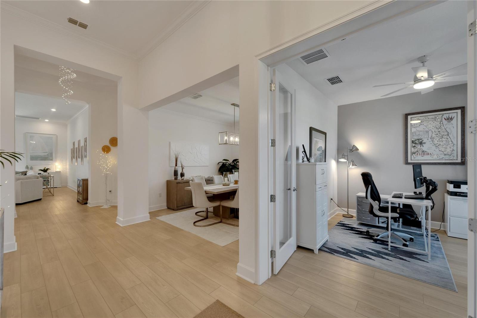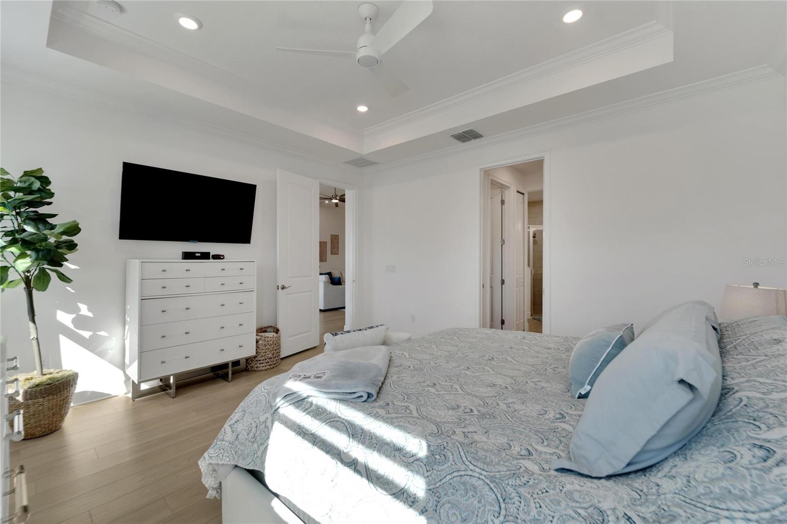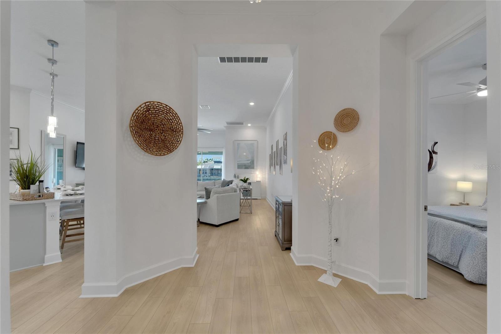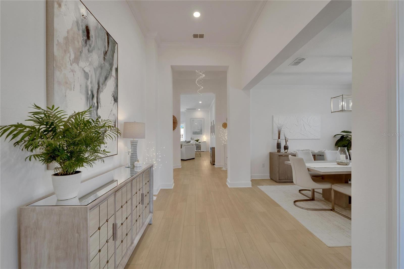 Welcome to 1074 Signet Drive, Apollo Beach, FL. Hurry and take advantage of this better-than-new, less than two year old coastal chic modern craftsman design in the sought-after Marisol Pointe of MiraBay. Say NO to 20 year old homes with 20 year old roofs, HVAC, décor and appliances. Say NO to needing to pass through a community boat lift to head out on the water. Say NO to a 20 year old pool with someone else’s tastes. At 1074 Signet, you can live the ultimate waterfront lifestyle located closer to Tampa Bay than almost any home in Mirabay. Priced to move, this stunning coastal home offers direct canal access with open water less than 5 minutes away and pre-approval for an unrestricted dock and lift. Plan and build your dream pool - not someone else's - with gas and 220V power ready to go. Better yet, pool construction can be conveniently rolled into your mortgage. Built with all of the latest technology including a 12’+ elevated lot, sturdy stem wall design, and spanning 2,636 sq. ft. on a single-level floor plan, this spacious home features 4 bedrooms, 3 bathrooms, 3 garages, a gourmet kitchen, formal dining room, and a private office with French doors—perfect for working from home or managing your next big project. Built in late 2023 with over $80,000 in high-end upgrades, this home is truly move-in ready. Enjoy a dream kitchen complete with two islands, two sinks, twin ovens, and a 36” gas cooktop—perfect for entertaining or simply enjoying everyday life. Luxury vinyl plank flooring flows throughout, paired with upgraded cabinetry, countertops, fixtures, and window treatments. The fully fenced backyard and prepaid dock easement are just added bonuses. Step onto your covered lanai and soak in breathtaking sunset views over the mangroves—your peaceful escape after a day on the water. As part of the vibrant MiraBay community, you’ll also enjoy resort-style amenities including a clubhouse, café, fitness center, sauna, two heated pools (one with lap lanes and a slide), tennis, basketball, pickleball courts, and more—all in a golf cart-friendly neighborhood near top-rated schools, shops, and restaurants. This is more than a home—it’s a lifestyle. Don’t miss your chance to own this rare waterfront gem and watch your equity grow and grow. Schedule your private tour today!