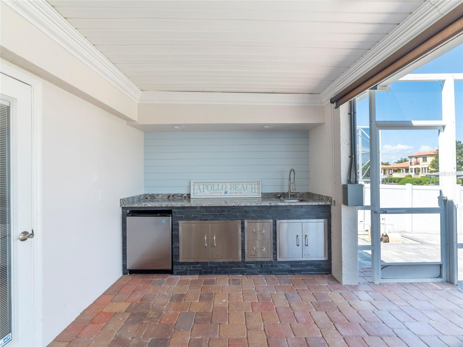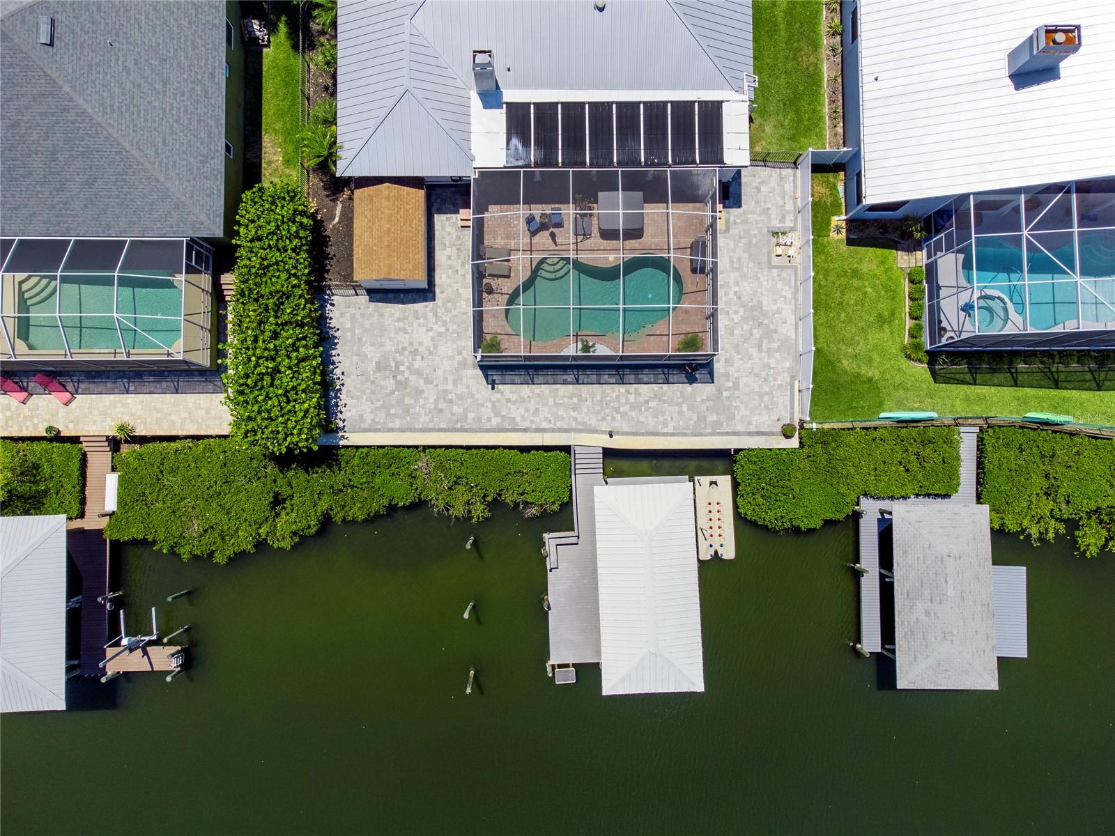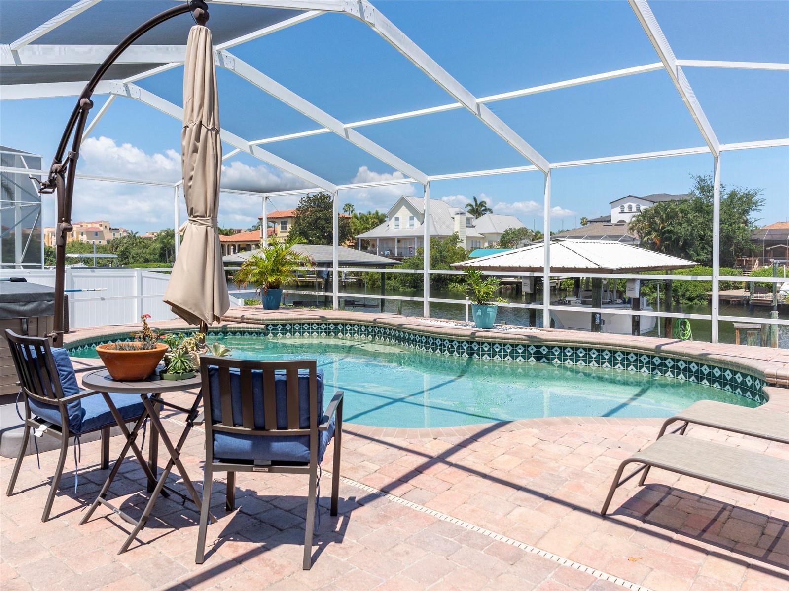 Spectacular custom built waterfront, pool home situated on an 80' lot of water frontage, impressive water views & only minutes away to the open waters! You will be impressed by the many architectural details & craftsmanship of this home. This unique retreat features a great floor plan with two bedrooms and two bathrooms on one side of the home and the master bedroom with en-suite bathroom on the other side. Stroll up the brick paver driveway to the leaded glass front door that is hurricane rated into the open foyer. The magnificent chef's kitchen has top of the line appliances, reverse osmosis connected to refrigerator, pot filler about range, range hood, GE Cafe built in convection ovens, in cabinet microwave, Bosch dishwasher, propane gas cooktop, White cabinetry to ceiling, cabinet plate holder, Brazilian granite countertop on island, quartz countertops, walk in pantry, pots and pans drawers. The larger gathering room in the center of the home is perfect for family gatherings. The master suite features sliding glass doors out to lanai, two walk in closets. The ensuite bathroom has a large garden tub with jets, separate walk in shower with rain shower head and an additional shower head with heat light both decorated with glass tile accents, linen and water closets, White cabinetry with drawers and quartz countertops, white framed mirrors, transom window over tub, Bedroom two has its own private bathroom with access to lanai. The bathroom remodel was just finished May 2024 with white vanity, glass walk in shower, and decorative mirror. Bedroom three at the front of the home is very spacious. The third bathroom has a dark wood vanity with granite and a tub/shower combo. The brick pavered lanai is its own oasis, with 8 person hot tub, solar heated pool with Pebble-Tec coating, outdoor kitchen, air conditioned storage room. Additional features: all tile flooring, plantation shutters and hurricane impact windows and sliders, 10,000lb covered boatlift with Jetski floating dock, generator hookup in electric panel, metal roof, brick paver deck out to new seawall. Out to the open bay within minutes with no bridges to navigate. Located a short walk from the 63 acre Apollo Beach Nature Preserve. Apollo Beach is conveniently located close to I-75, and has a recreational center that offers lots of activities (Pickleball, Tennis, Basketball, Baseball, Running track, Dog Park, Skateboard Park, Splash Pad and much more), Manatee viewing center, Nature preserve, and waterfront dining, with Tampa International Airport, Downtown Tampa with Riverwalk, Fabulous Restaurants, museums, several colleges, professional sports teams, and beaches all within close proximity. NO HOA or CDD fees. Apollo Beach elementary is A rated and a K-8 public school. *VA Assumable Loan Interest Rate 5.75%* **No Helene or Milton Flooding**
