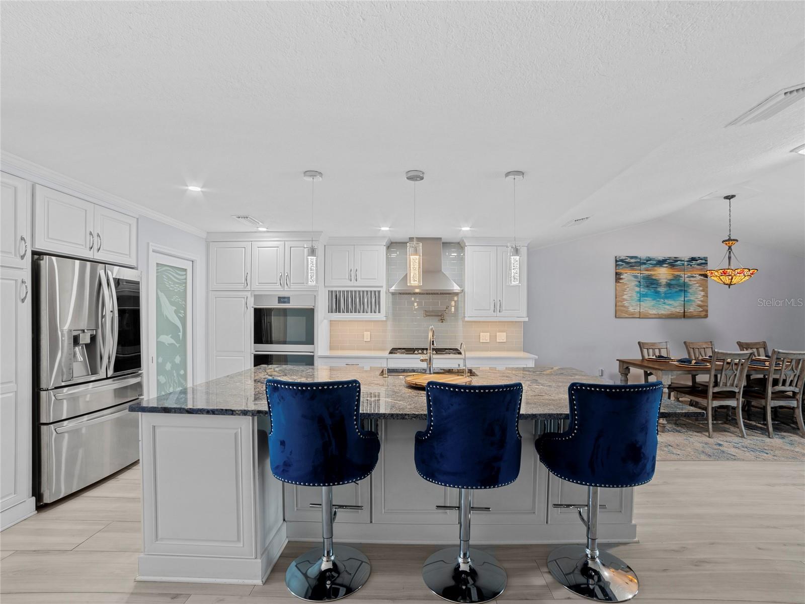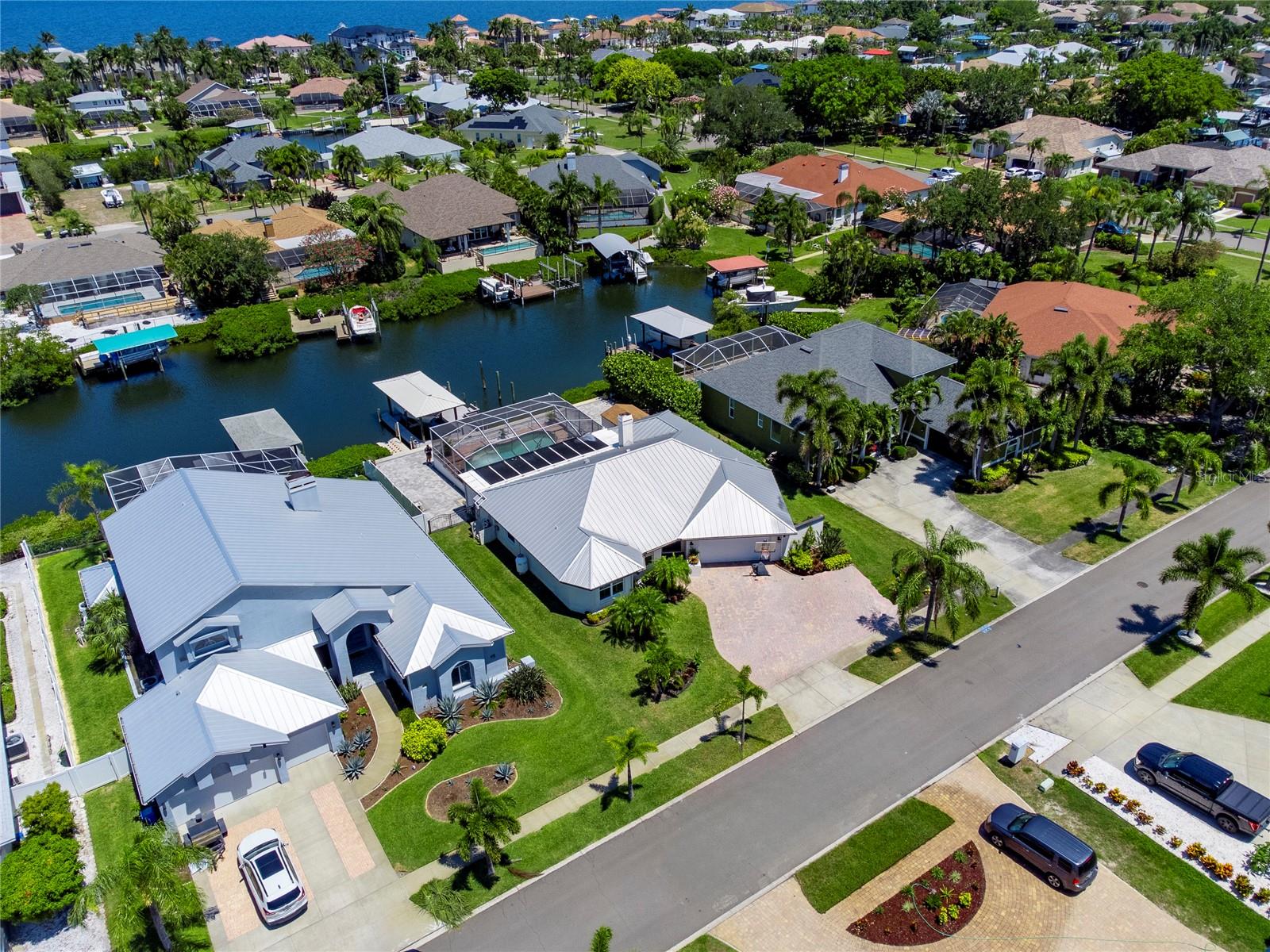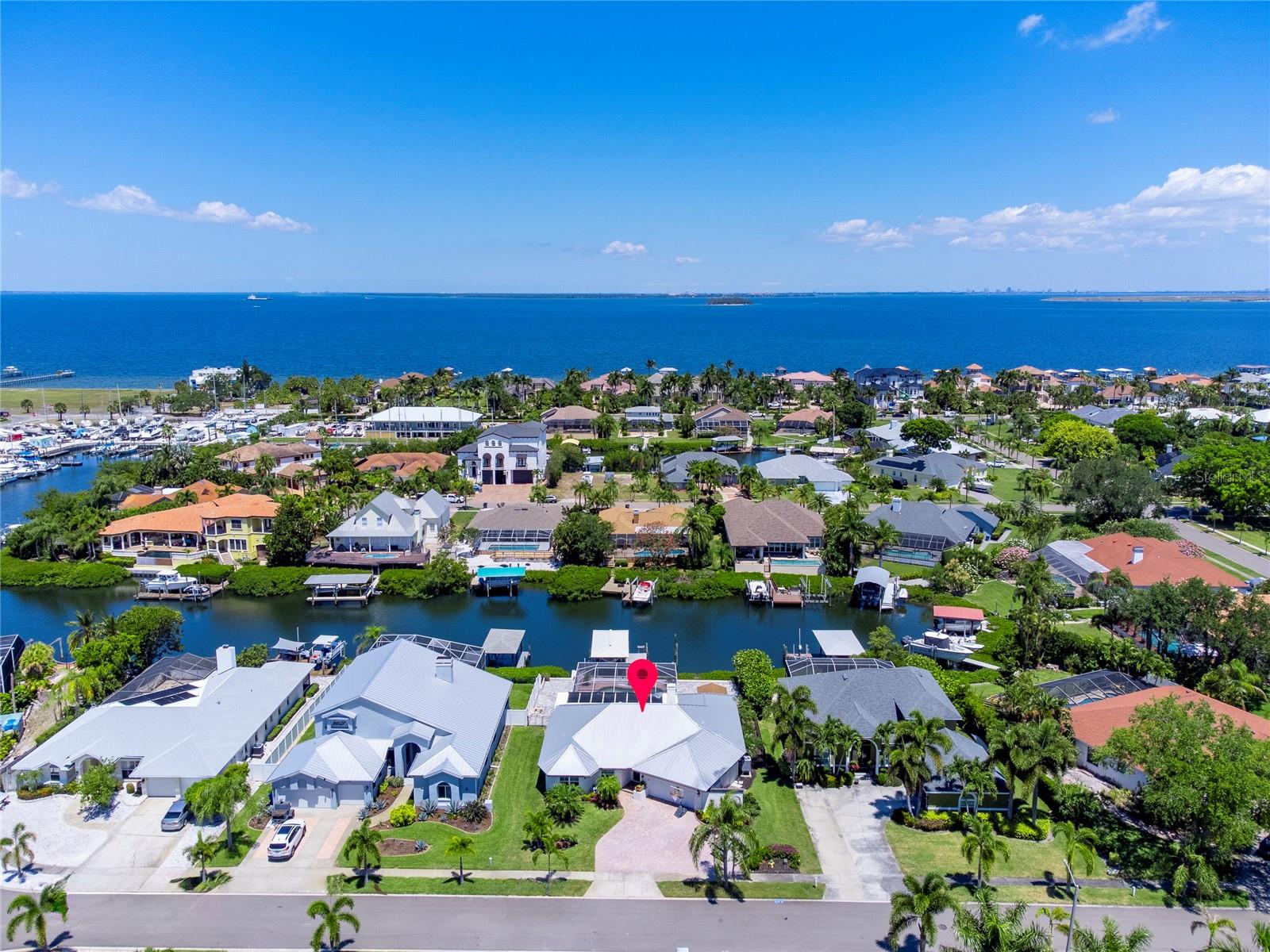 Spectacular custom built waterfront, pool home situated on an 80' lot of water frontage, impressive water views & only minutes away to the open waters! You will be impressed by the many architectural details & craftsmanship of this home. This unique retreat features a great floor plan with two bedrooms and two bathrooms on one side of the home and the master bedroom with en-suite bathroom on the other side. Stroll up the brick paver driveway to the leaded glass front door that is hurricane rated into the open foyer. The magnificent chef's kitchen has top of the line appliances, reverse osmosis connected to refrigerator, pot filler about range, range hood, GE Cafe built in convection ovens, in cabinet microwave, Bosch dishwasher, propane gas cooktop, White cabinetry to ceiling, cabinet plate holder, Brazilian granite countertop on island, quartz countertops, walk in pantry, pots and pans drawers. The larger gathering room in the center of the home is perfect for family gatherings. The master suite features sliding glass doors out to lanai, two walk in closets. The ensuite bathroom has a large garden tub with jets, separate walk in shower with rain shower head and an additional shower head with heat light both decorated with glass tile accents, linen and water closets, White cabinetry with drawers and quartz countertops, white framed mirrors, transom window over tub, Bedroom two has its own private bathroom with access to lanai. The bathroom remodel was just finished May 2024 with white vanity, glass walk in shower, and decorative mirror. Bedroom three at the front of the home is very spacious. The third bathroom has a dark wood vanity with granite and a tub/shower combo. The brick pavered lanai is its own oasis, with 8 person hot tub, solar heated pool with Pebble-Tec coating, outdoor kitchen, air conditioned storage room. Additional features: all tile flooring, plantation shutters and hurricane impact windows and sliders, 10,000lb covered boatlift with Jetski floating dock, generator hookup in electric panel, metal roof, brick paver deck out to new seawall. Out to the open bay within minutes with no bridges to navigate. Located a short walk from the 63 acre Apollo Beach Nature Preserve. Apollo Beach is conveniently located close to I-75, and has a recreational center that offers lots of activities (Pickleball, Tennis, Basketball, Baseball, Running track, Dog Park, Skateboard Park, Splash Pad and much more), Manatee viewing center, Nature preserve, and waterfront dining, with Tampa International Airport, Downtown Tampa with Riverwalk, Fabulous Restaurants, museums, several colleges, professional sports teams, and beaches all within close proximity. NO HOA or CDD fees. Apollo Beach elementary is A rated and a K-8 public school. *VA Assumable Loan Interest Rate 5.75%* **No Helene or Milton Flooding**