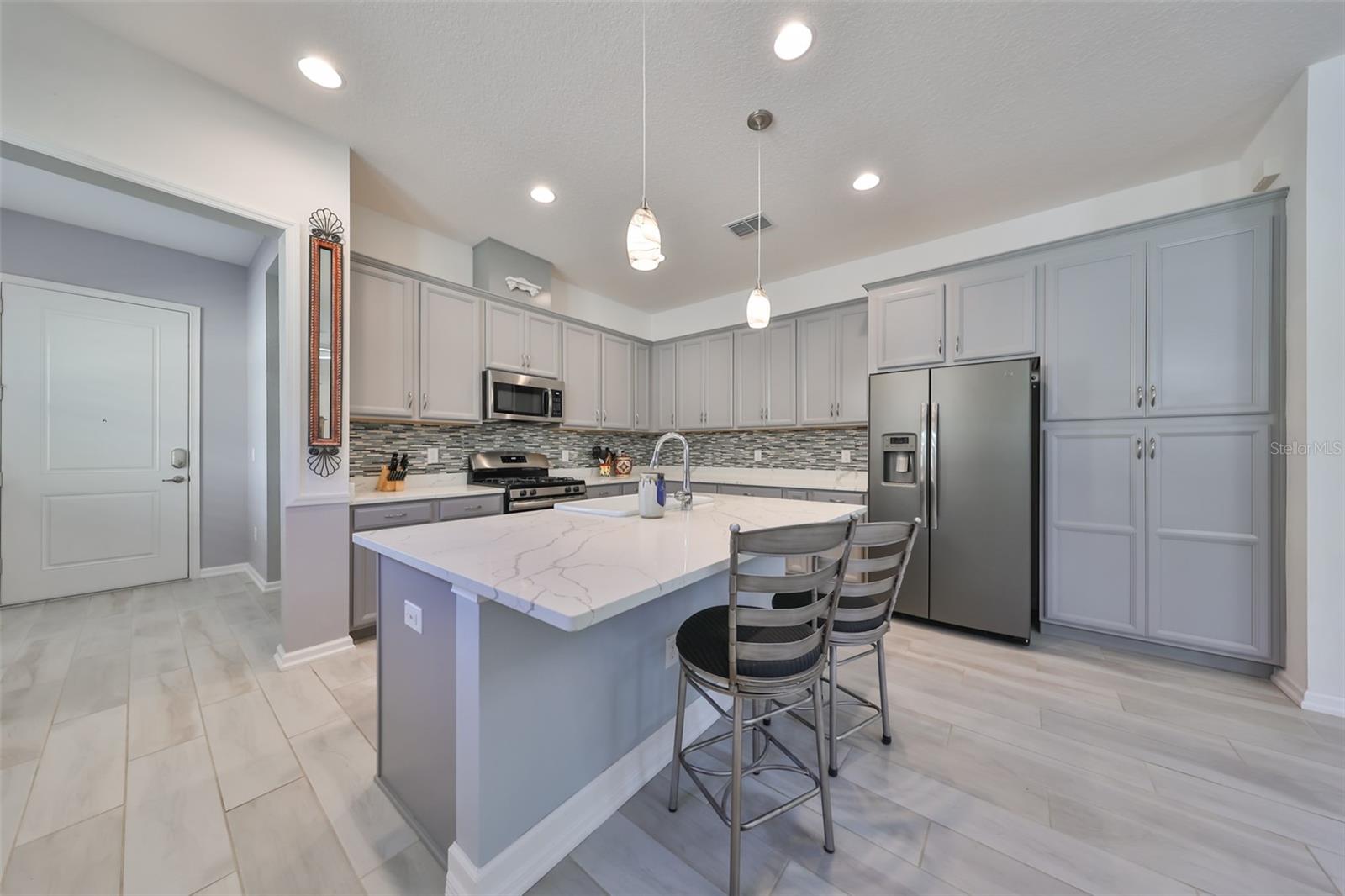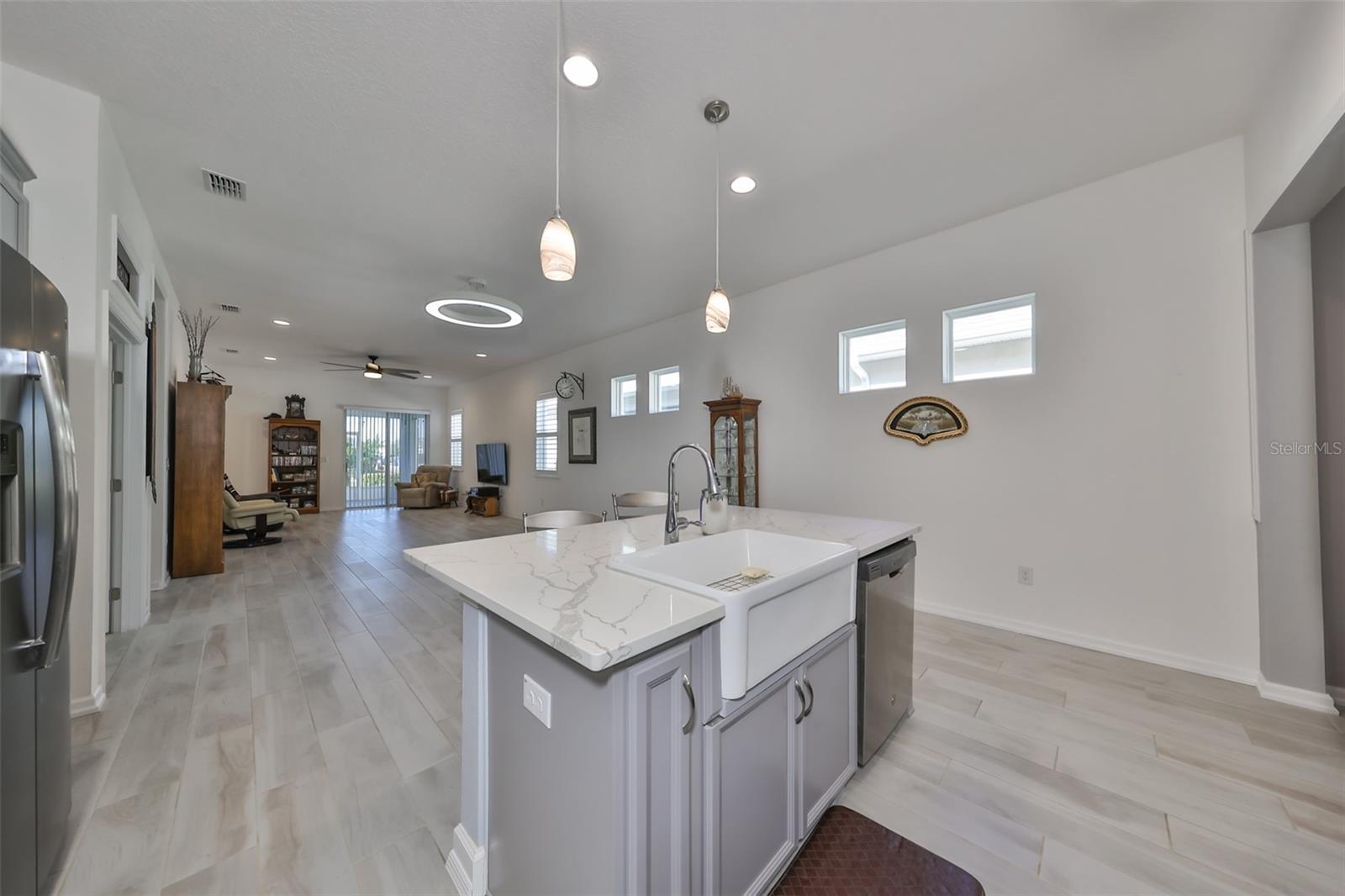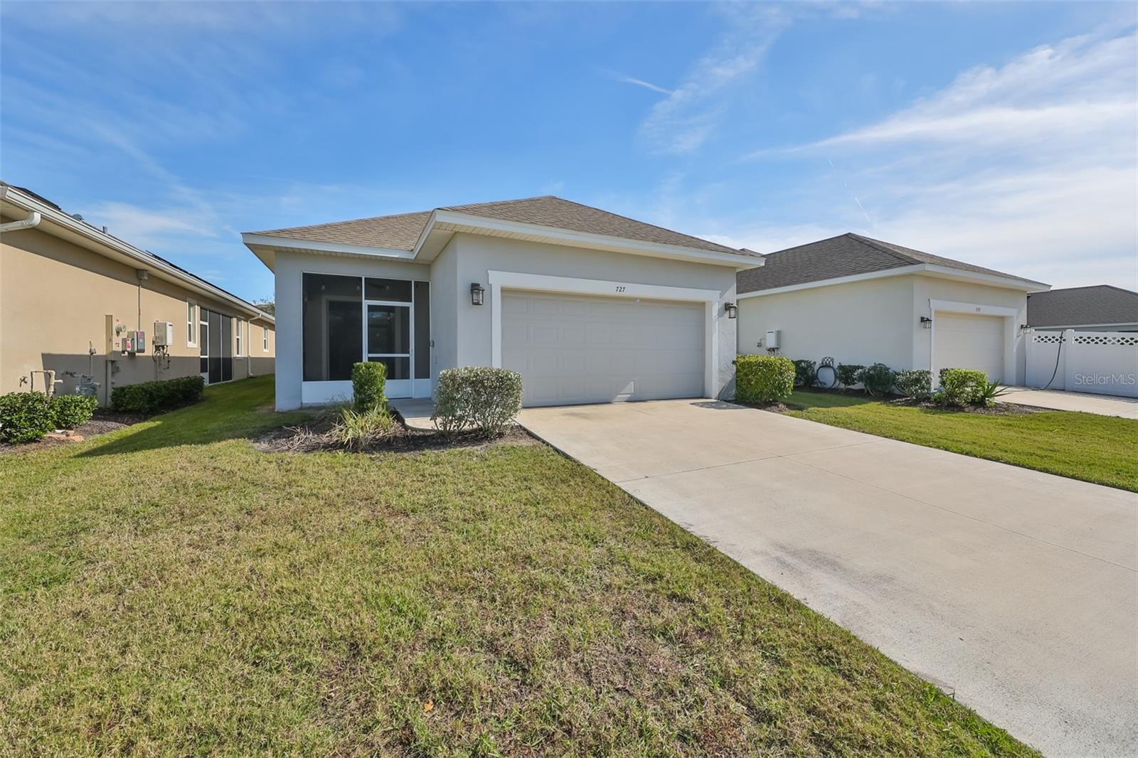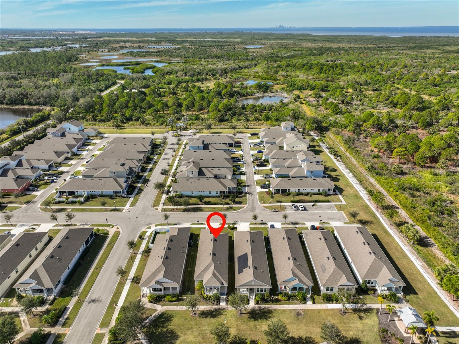 This stunning home is located in a highly sought-after coastal gated neighborhood. Built-in 2020, the home offers 3 spacious bedrooms, 2 modern bathrooms, and a 2-car garage; all spread across 1,800 square feet of thoughtfully designed living space. Step inside to find a light-filled, open-concept living area featuring high ceilings and a coastal vibe throughout. The kitchen is a chef's dream with granite countertops, solid wood cabinets, and a large island complete with a farmhouse sink, perfect for meal prep or casual dining. The generous, well-appointed bedrooms offer plenty of room for relaxation and rest. While the plank style ceramic tile flooring enhances the home's elegant yet practical feel. The peaceful screened-in lanai is ideal for entertaining or simply enjoying the outdoors in comfort. A cozy front porch provides views of a tranquil nature space, offering a perfect spot for unwinding at the end of the day. Additional features include hurricane shutters and upgraded insulation in the garage and lanai. This home combines modern amenities with a laid-back coastal lifestyle, making it the perfect retreat. The amenities are top notch, including an Olympic size heated swimming pool, 10,000 sq ft clubhouse, state-of-the-art gym, cafe, sauna, basketball, tennis, and pickleball courts. Access to the water.....with free use of canoes, kayaks and sunfish. Plenty of parks to enjoy. Resort style living at its very finest!