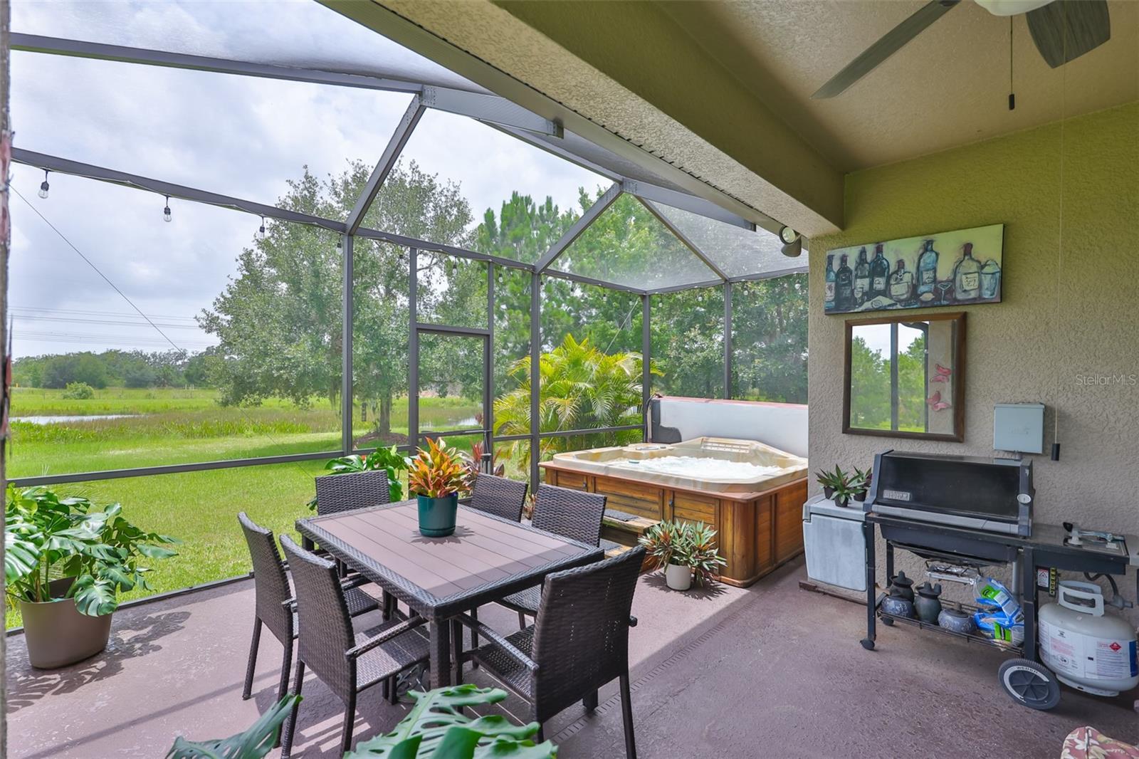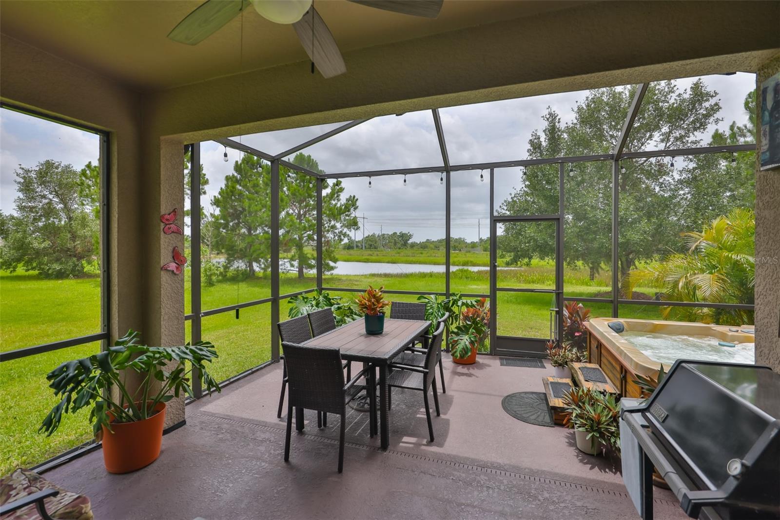**PRICE REDUCTION**WATER FRONTAGE....This lovely 3 Bed with 2.5 baths, 2 car garage home spanning over 1842 sq. ft....is located in the Master Planned community of Waterset in Apollo Beach. The home features Water Frontage, a cozy Front Porch, Hardwood Look Tile Floors throughout the common areas, whole house Gutters, extended screened-in Lanai around the Jacuzzi area. Very spacious open concept kitchen with Pantry, dinette and a designated dining area/Flex space. This home has only had one owner and is located on a beautiful conservation/waterfront lot that affords spectacular views of sunsets and wildlife. Enjoy the relaxing Florida Lifestyle from your private outdoor living fully enclosed Jacuzzi area. The Waterset Community is a 1,300-acre, master-planned community located in Apollo Beach, FL. with multiple amenities to enjoy...4 Swimming Pools, 2 Fitness Centers, 2 Clubhouses, Pickleball, Tennis Courts, Basketball and Sand Volleyball courts...Situated just 17 miles south of Downtown Tampa, the location offers easy access to all areas of beautiful Tampa Bay. With a focus on family, friends, and fun, Waterset provides the perfect atmosphere for families of all kinds to come together and live in a true community.