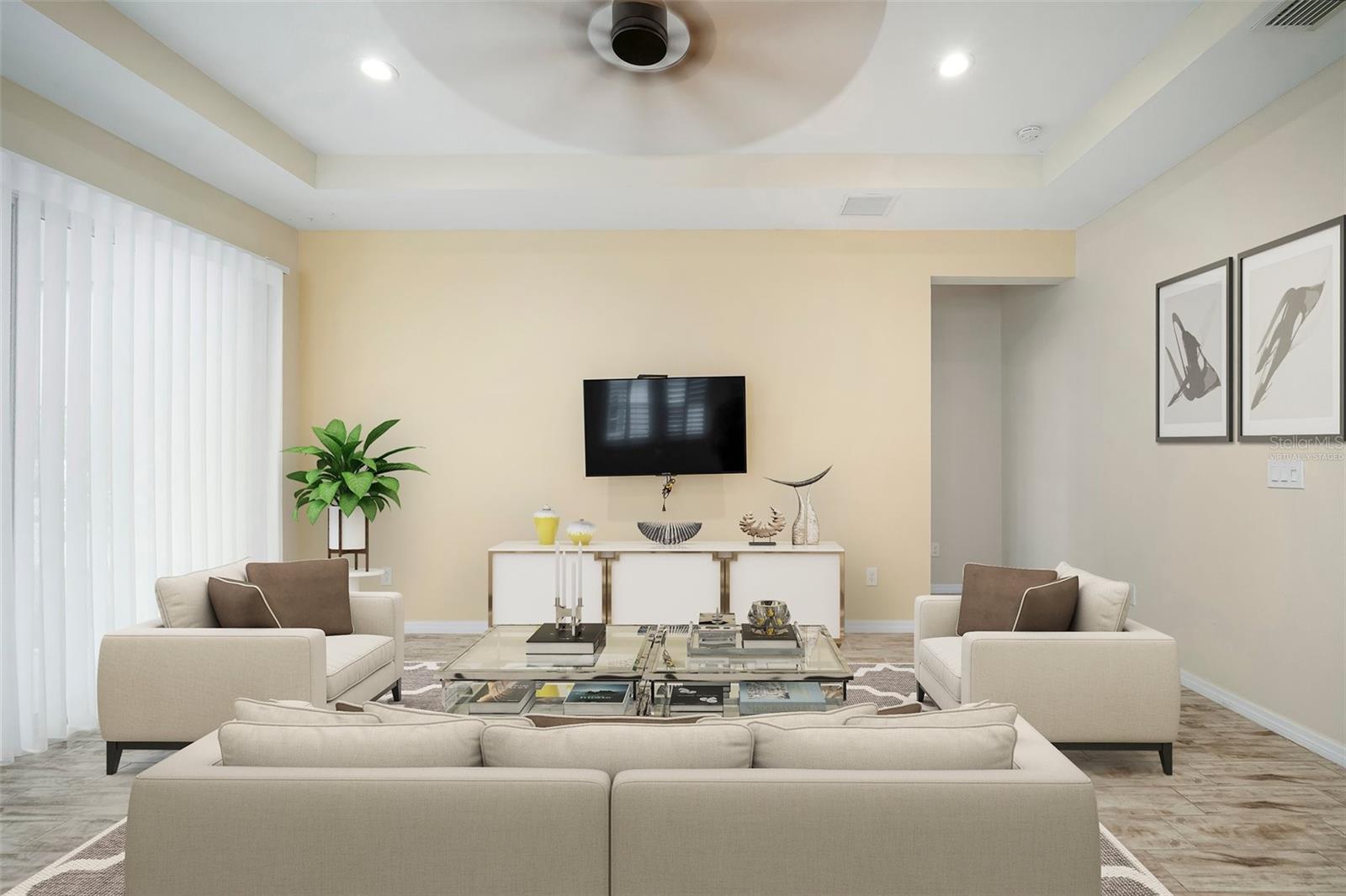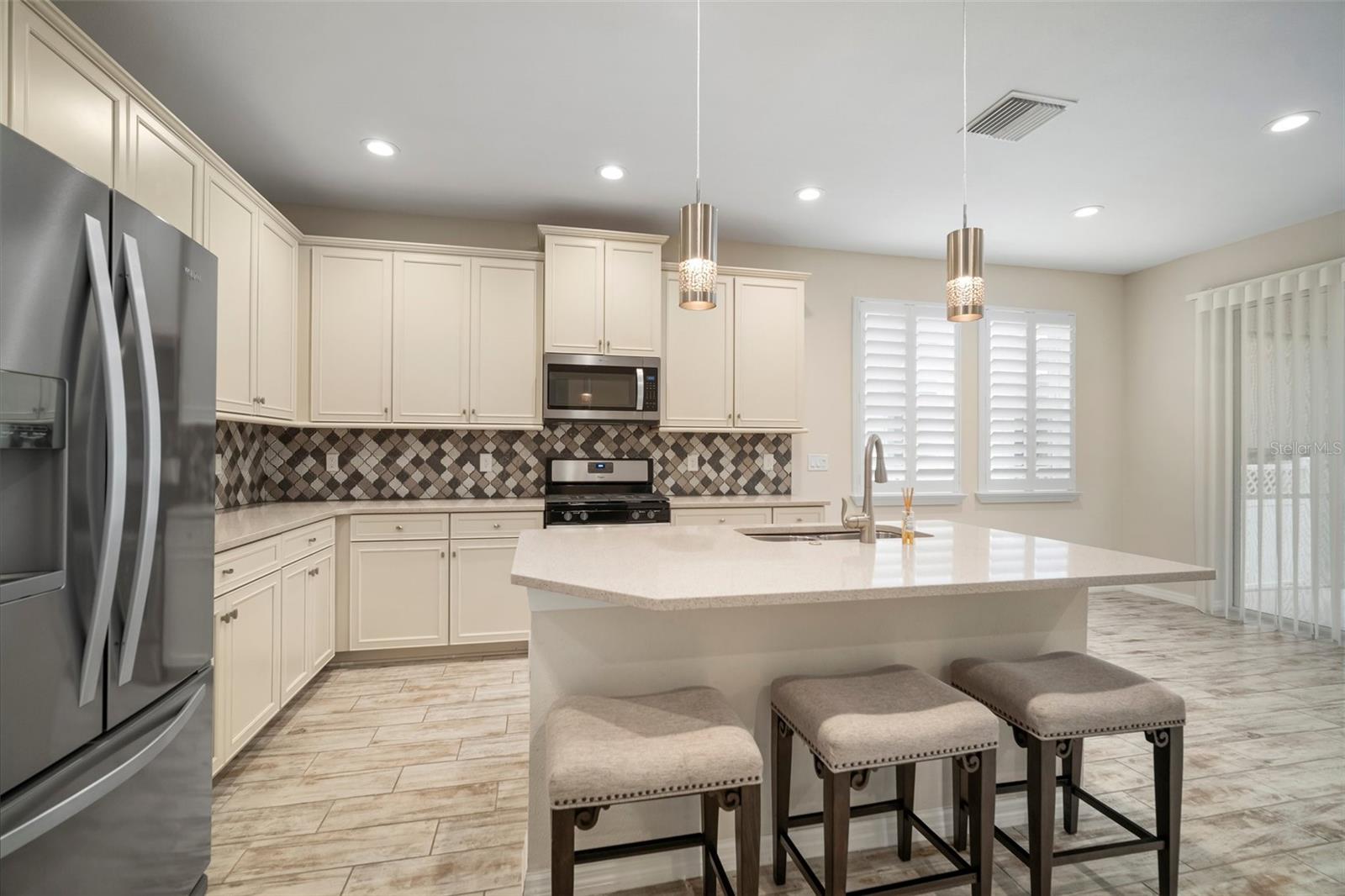 One or more photo(s) has been virtually staged. HUGE PRICE REDUCTION!!! Do not miss out on this beautiful home in a resort style community!!!!Sellers OFFERING Concessions UP TO $5,000. Welcome to this Florida Style home in the Mirabay Gated Community of Admiral Pointe. This home features an open concept floor plan, 4 Luxury Vinyl tile bedrooms, 2 full baths, high ceilings, energy-efficient windows, tile flooring, upgraded fixtures & lighting, screened lanai & 2 car garage. The gourmet kitchen boasts 42" cabinets, upgraded granite countertops, an island with bar top seating, 4 burner natural gas range w/oven, stainless steel appliances. The family room showcases a tray ceiling, 2 sets of sliding glass door with that leads to the screened rear lanai and a fenced, professionally landscaped and partially pavered backyard and comes complete with an irrigation system. The large Owners suite features a walk-in closet, enclosed large walk-in shower with rain head, water closet & double sink granite top vanity. Tha laundry room is equipped with a stackable washer and dryer, folding counter and places to hang your clothes as well, that is right near the garage for ease and convenience. this home includes a tankless gas water heater, deep sink in garage, and overhead storage in garage. This home is move in ready, all you need to do is bring your belongings and unpack. The exclusive Admiral Pointe Portion of MiraBay has its own clubhouse for events and activities and its own heated year-round pool for your enjoyment. This is truly a family-friendly community with lots to do, every day. Admiral Pointe has their own clubhouse and heated pool for ease and convenience as well as the main pool and clubhouse in the main portion of MiraBay. As a resident of this gated resort-style coastal community, you will feel like you are on vacation every day. This home is located in the Beautiful waterfront, resort-style community of MiraBay!!!! This resort-style community has a community clubhouse, heated-resort-style Olympic swimming pool, 136 ft water slide, parks, 3 playgrounds, gym, cafe with a full liquor license, basketball courts, tennis courts, fitness center, 135-acre lagoon where you can rent kayaks and paddle away, and much, much more. You will feel like you’re living in a 5-star resort! This community has it all. This home is centrally located and convenient to Tampa, Orlando, Bradenton, Sarasota, and St. Petersburg where you can experience the best Florida beaches, shopping, and entertainment. The Florida lifestyle you've been dreaming of awaits you. Paradise awaits! Call today for your private showing.